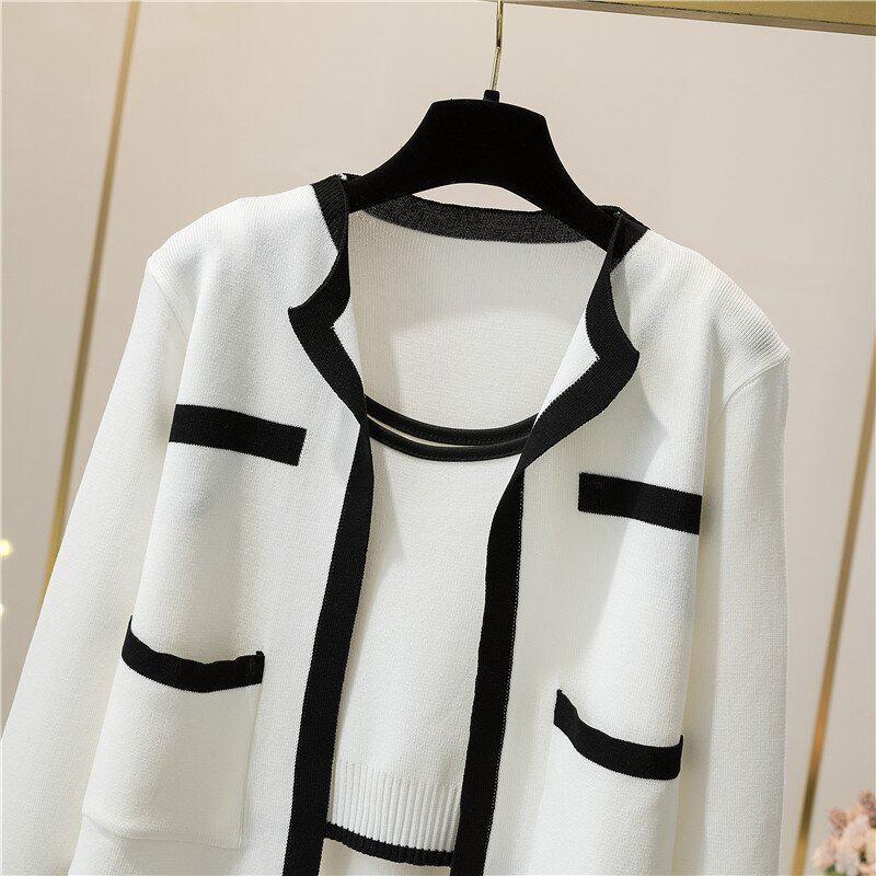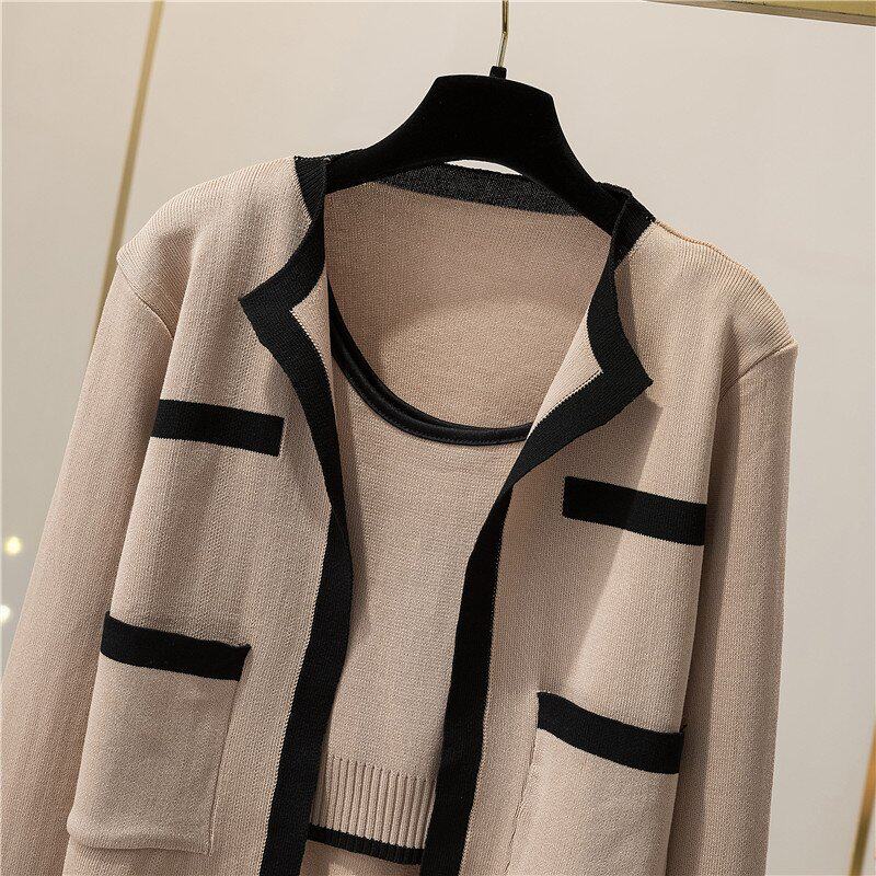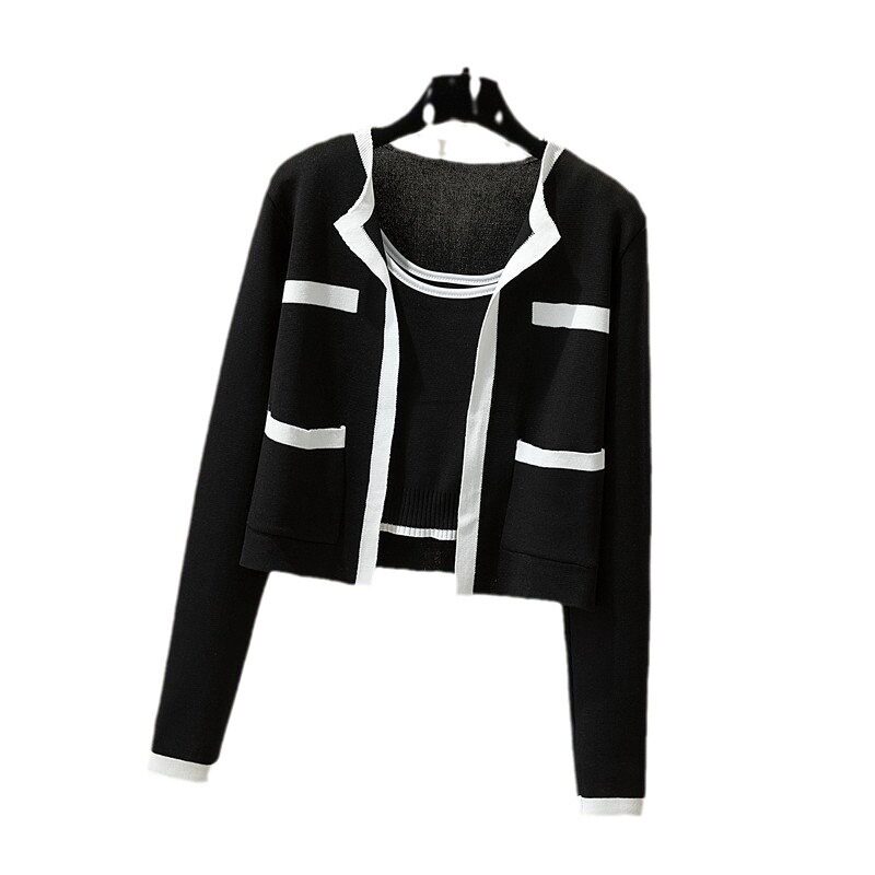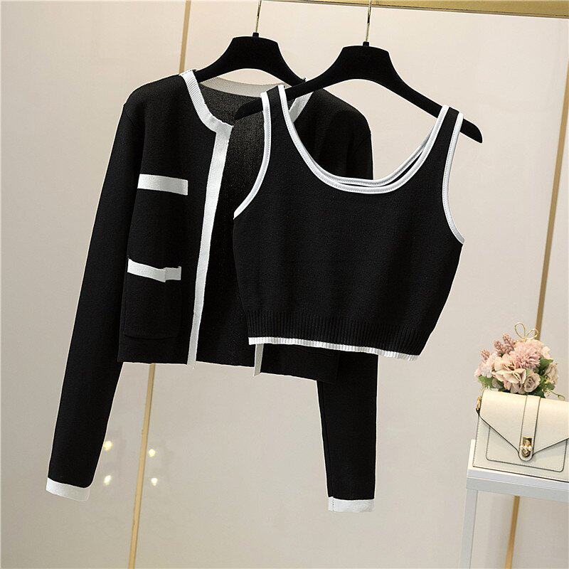 Трикотажный кардиган, осенняя куртка, топ с чашечками, майка топ, комплект, в корейском стиле, популярно в интернете