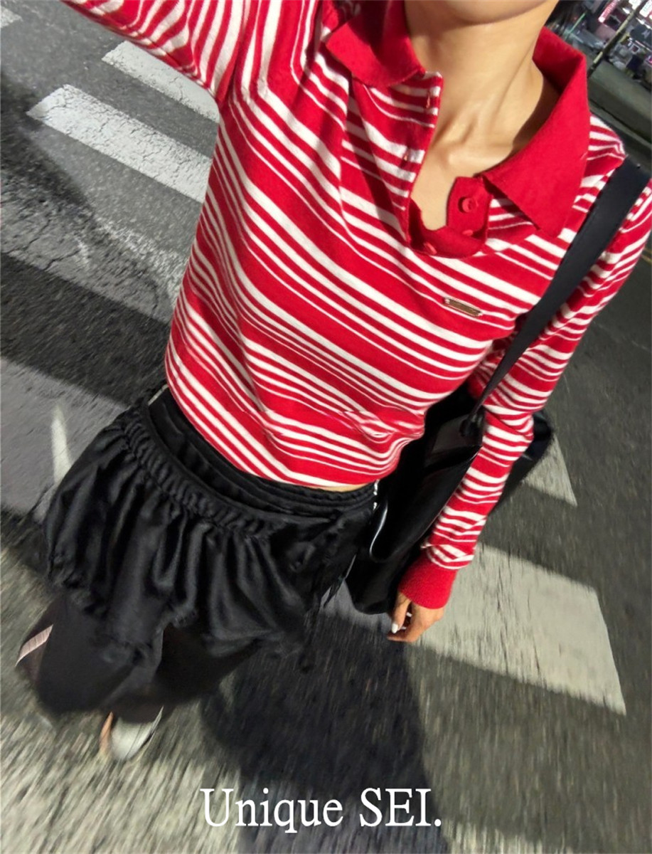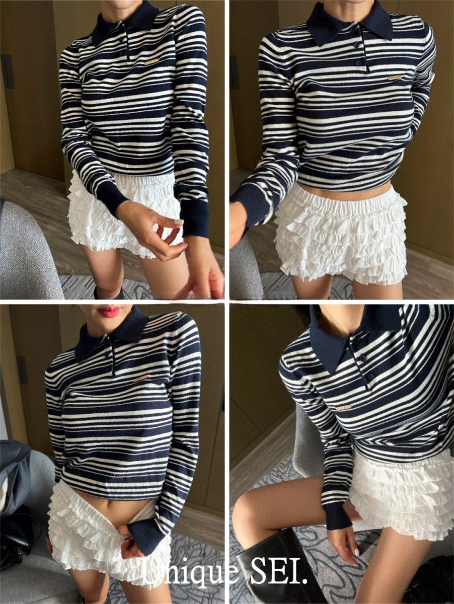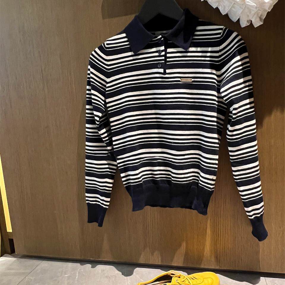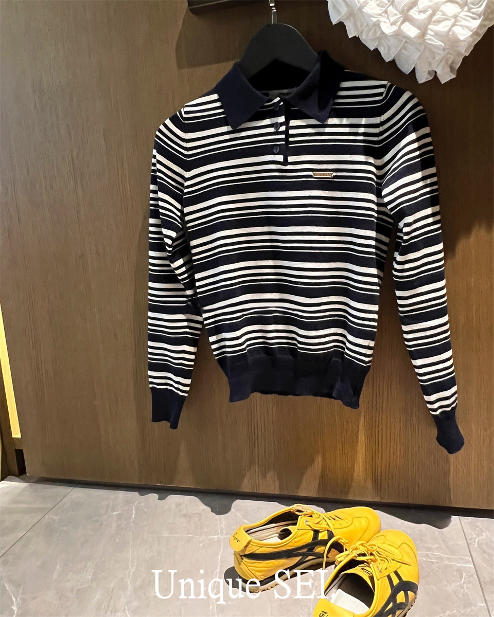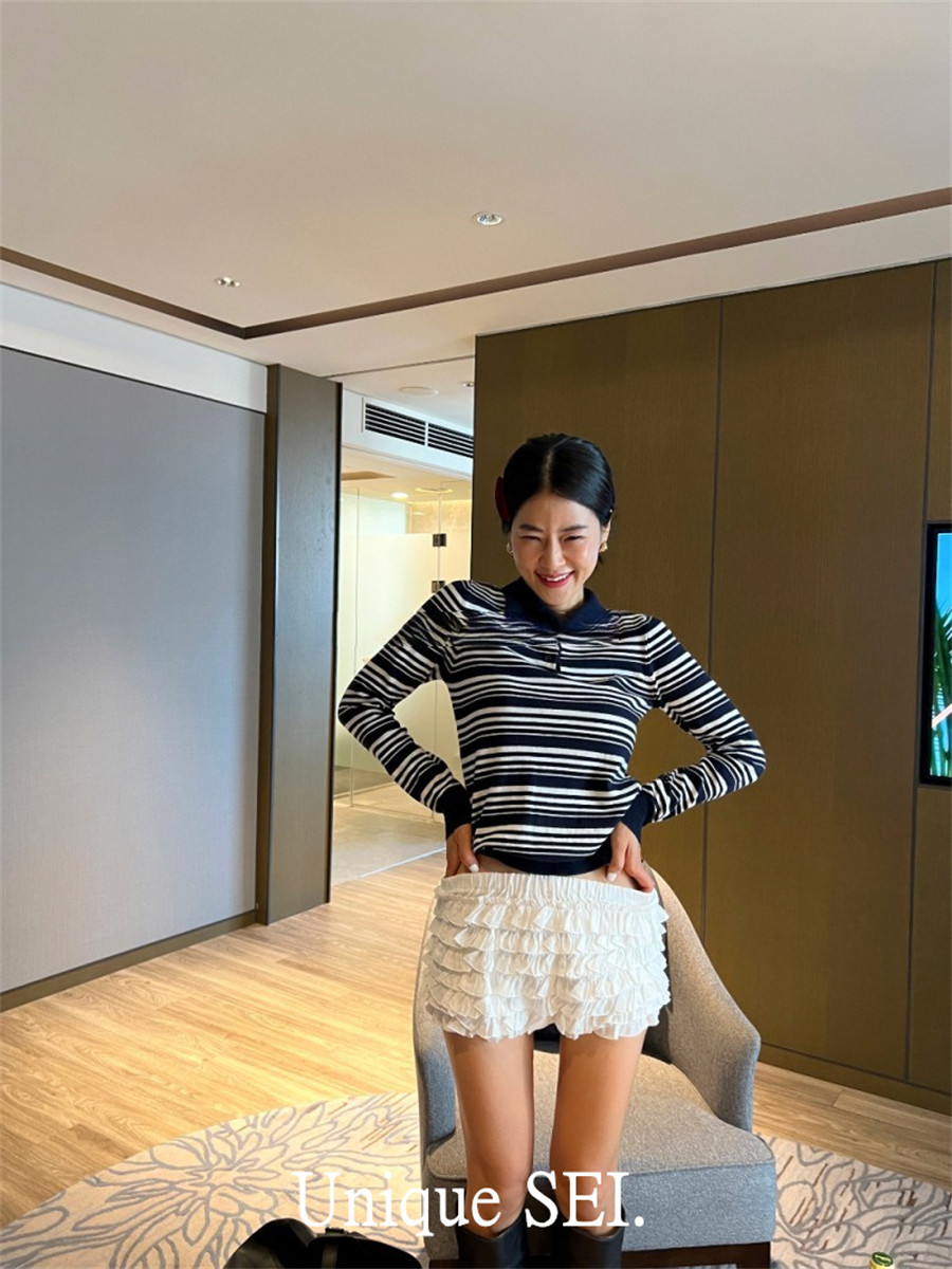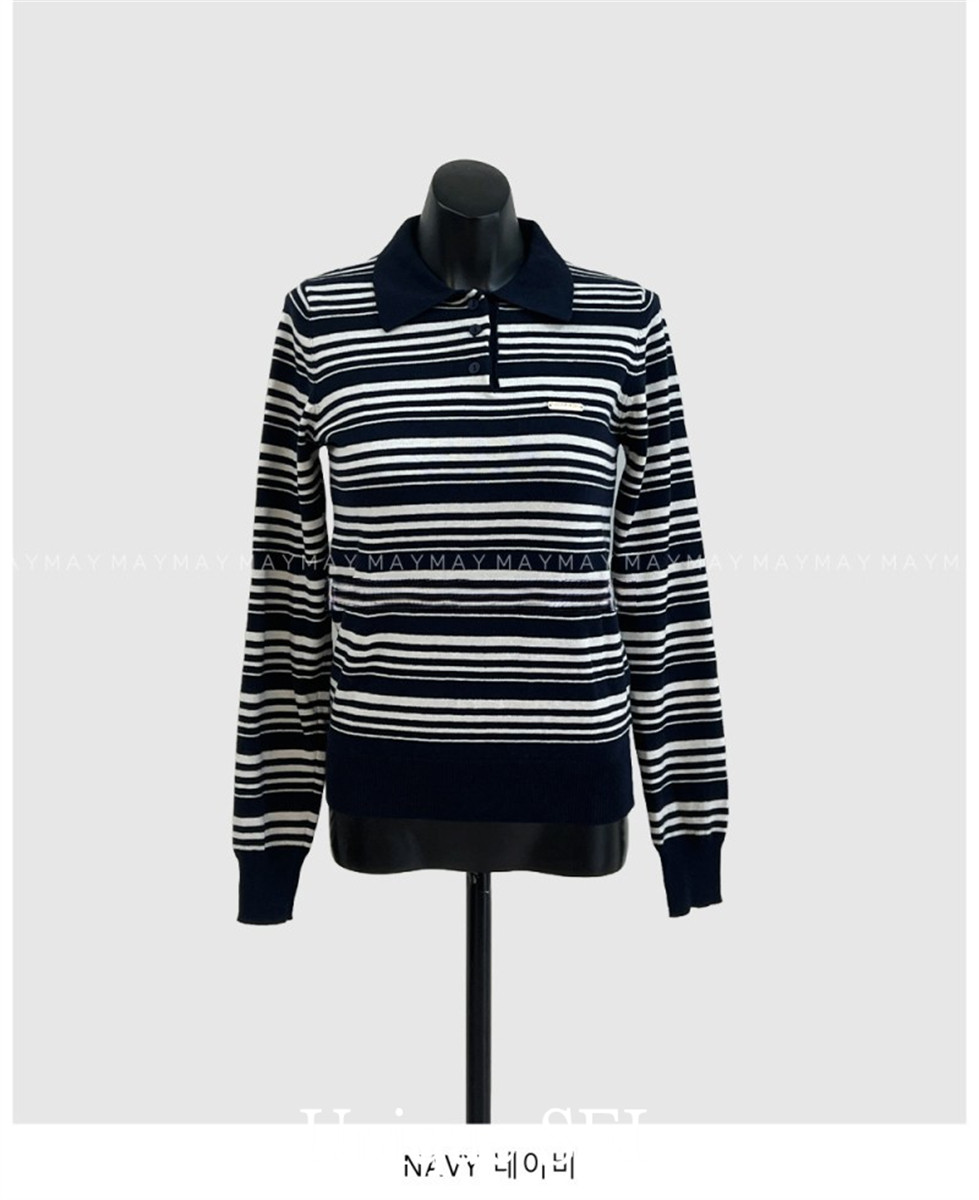Уникальный свитер-поло в полоску с металлической этикеткой от уличного ретро-блогера SEI, топ для похудения