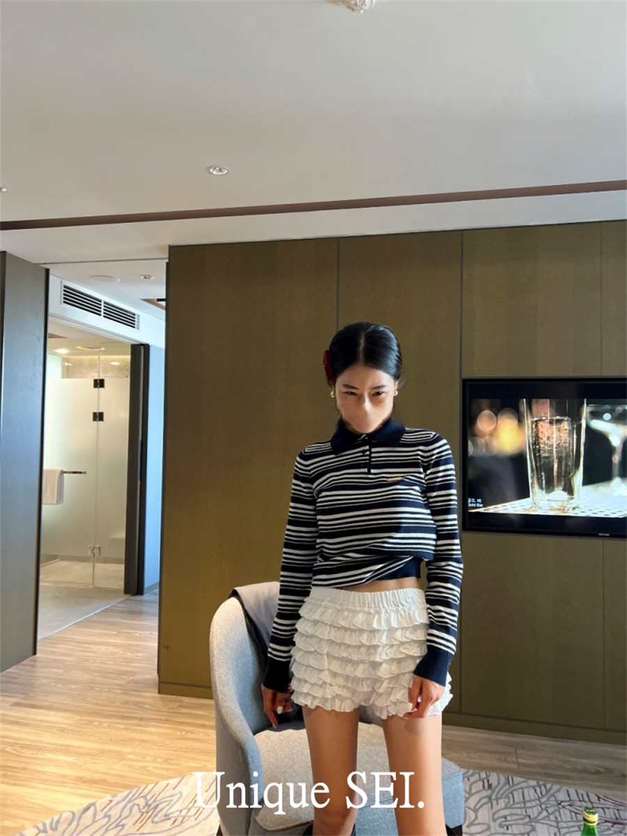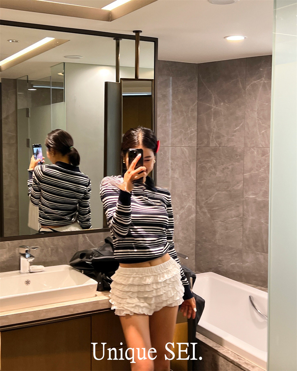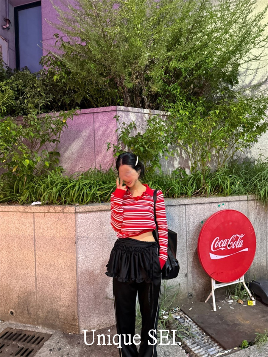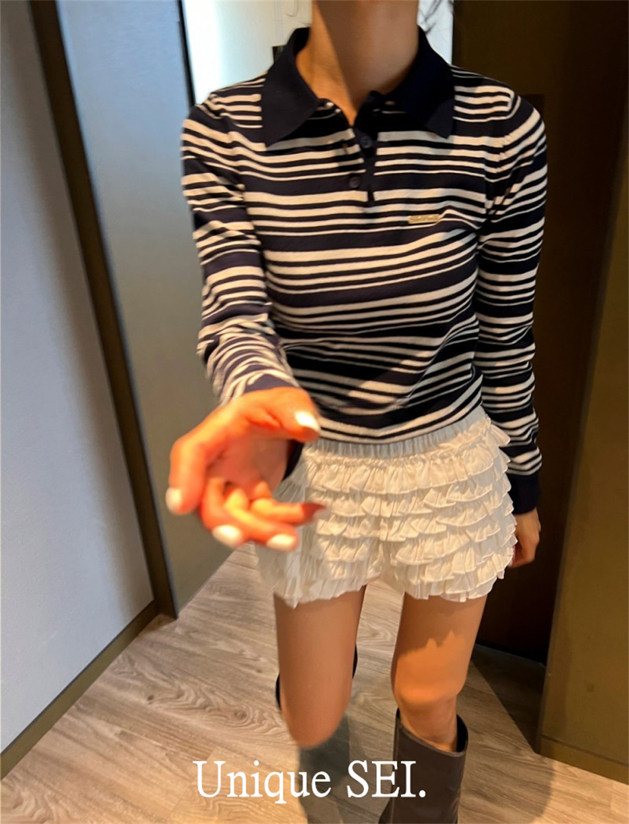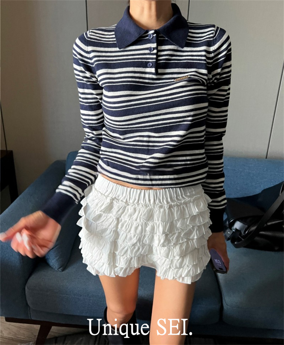 Уникальный свитер-поло в полоску с металлической этикеткой от уличного ретро-блогера SEI, топ для похудения