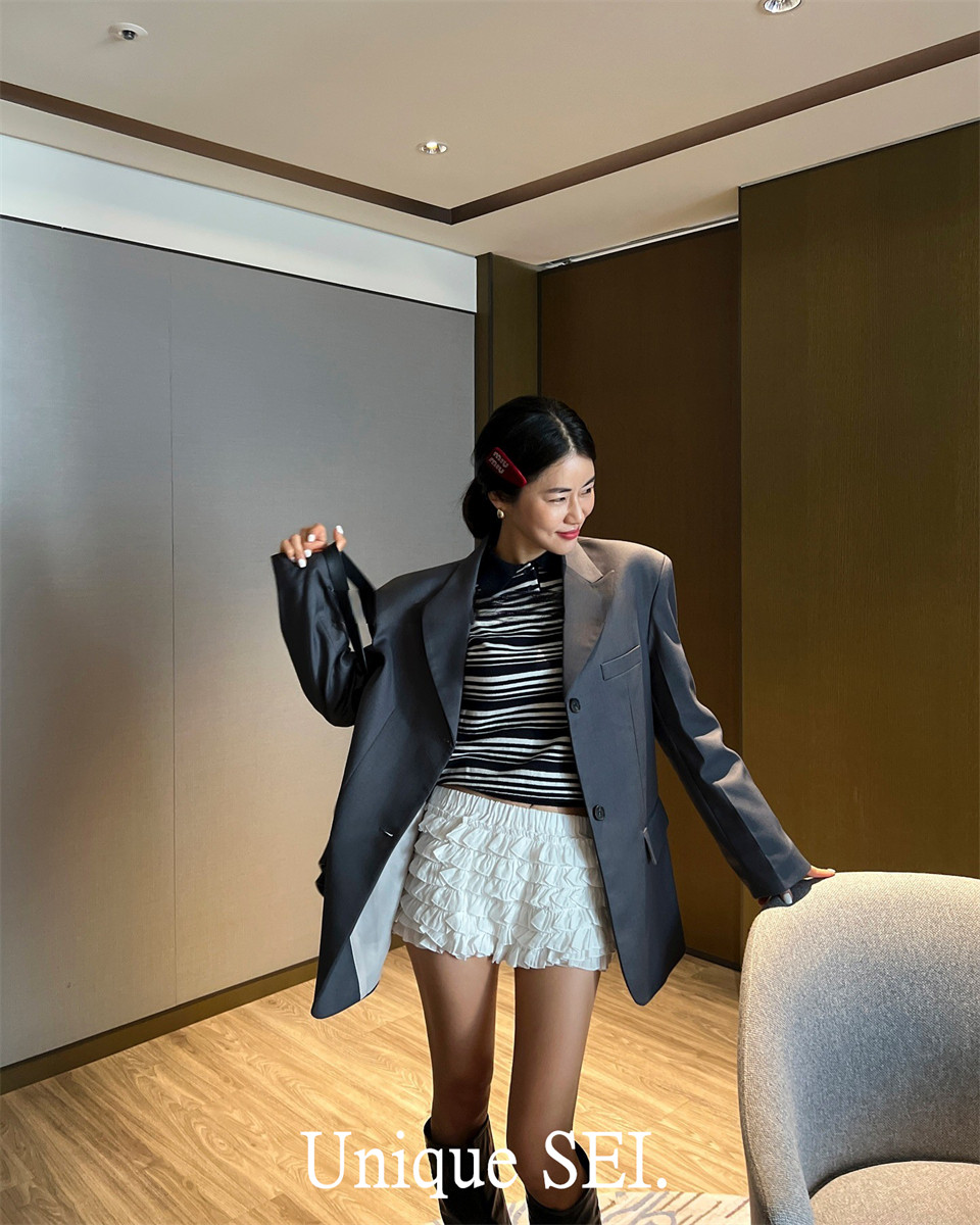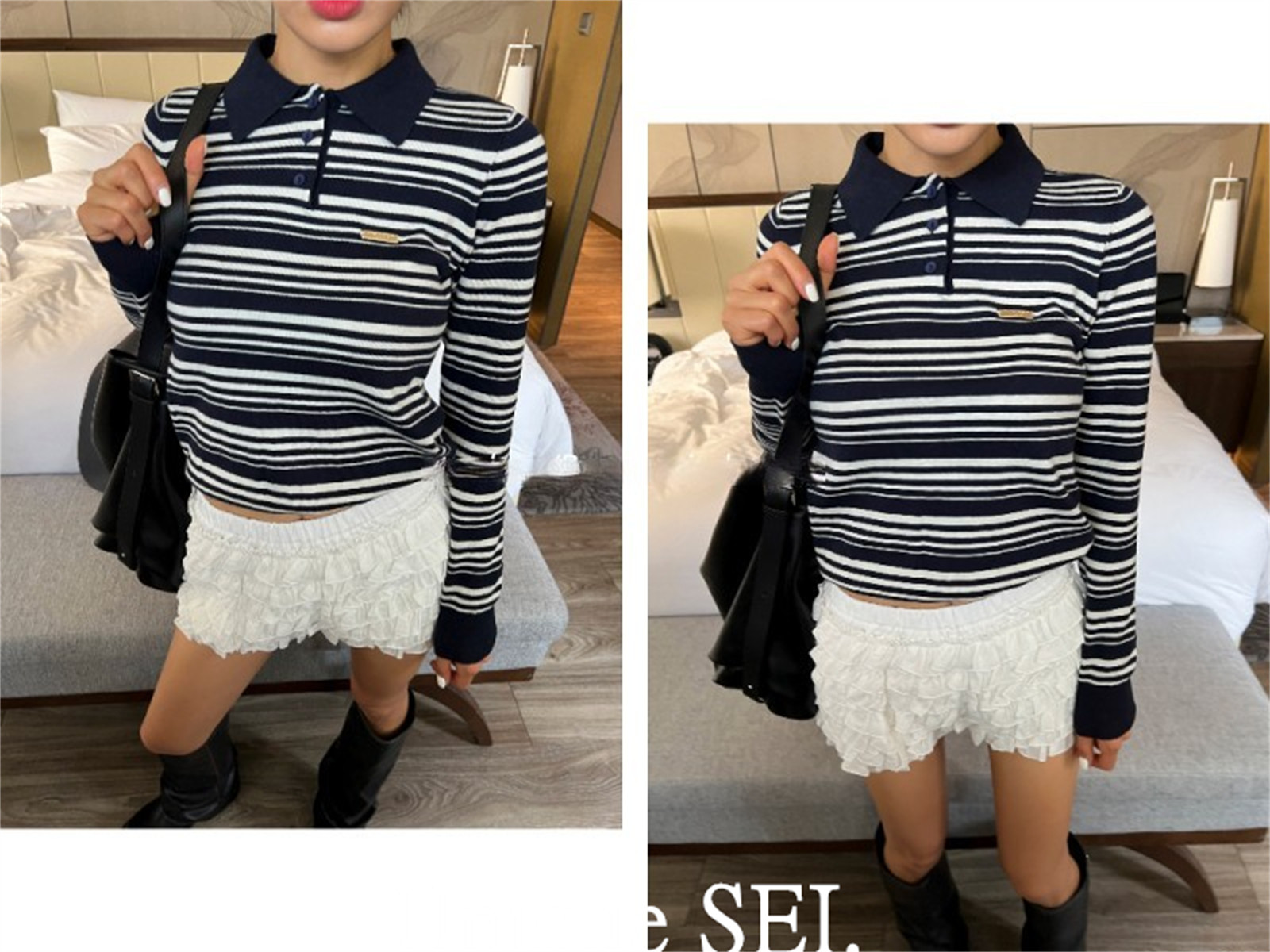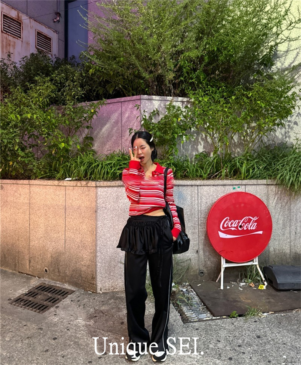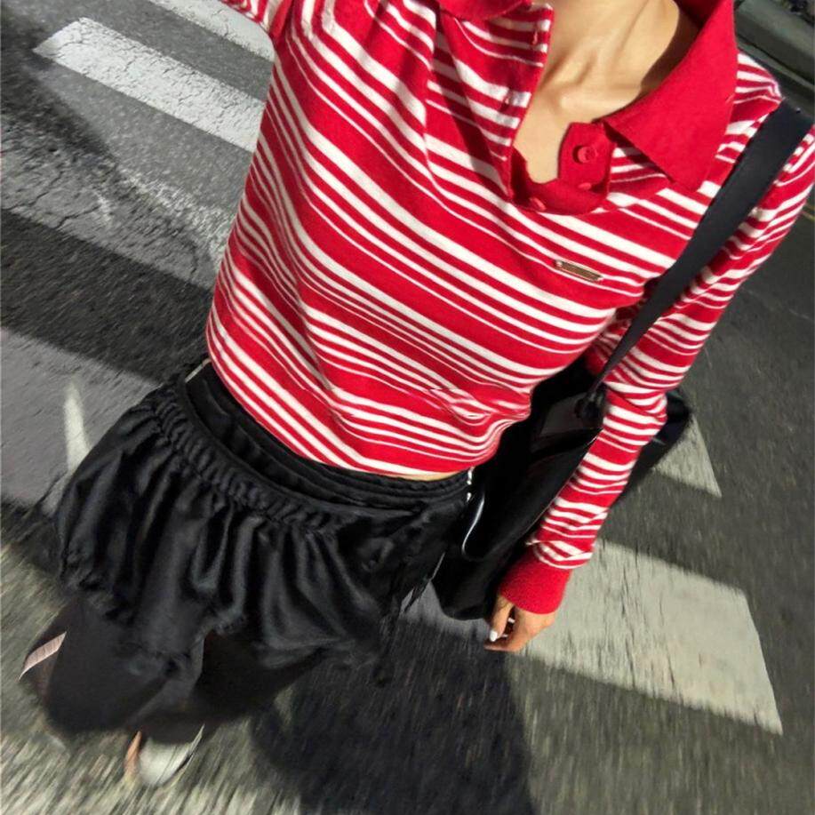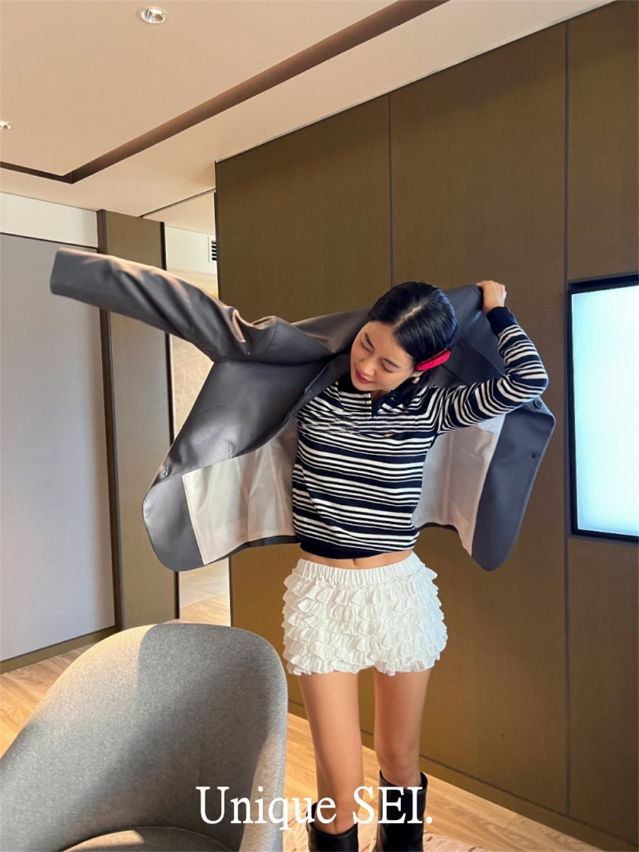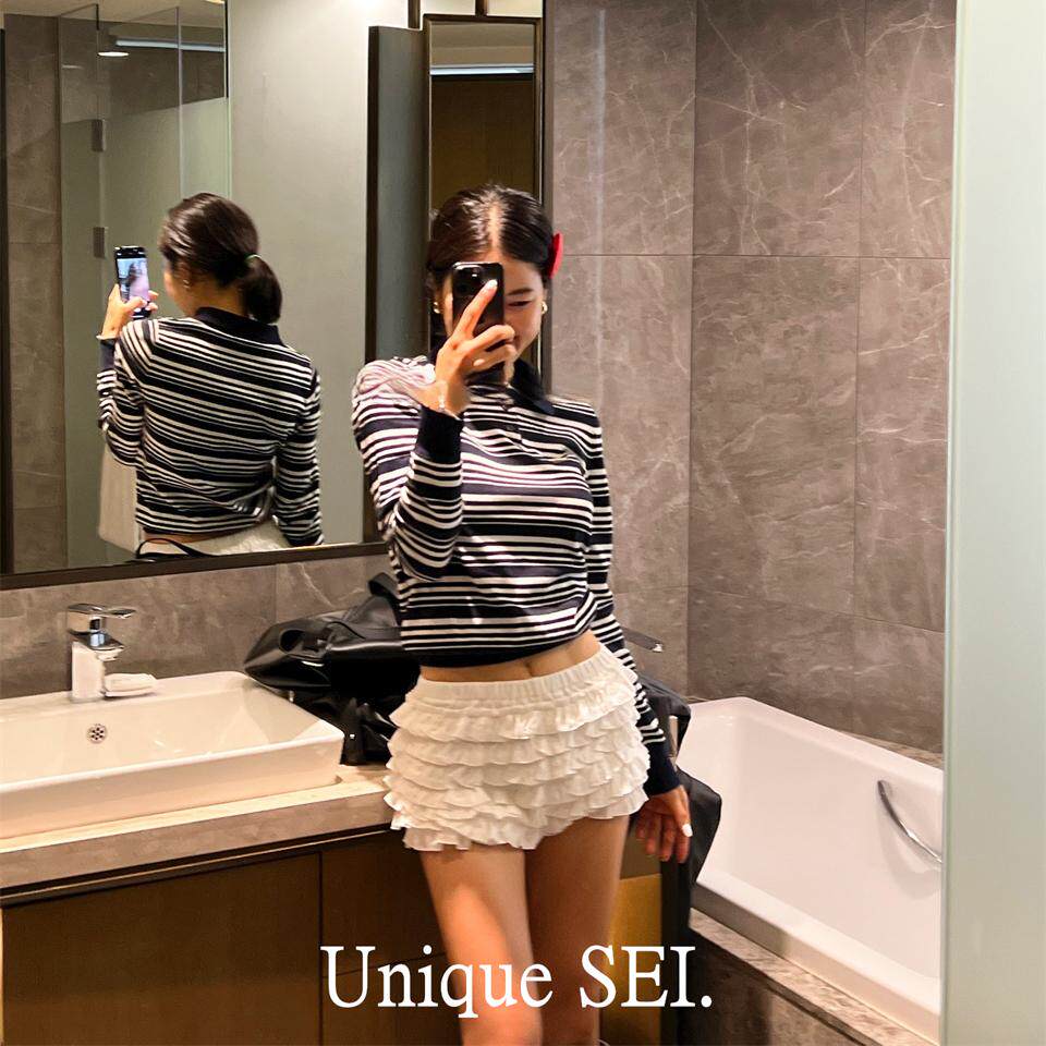 Уникальный свитер-поло в полоску с металлической этикеткой от уличного ретро-блогера SEI, топ для похудения