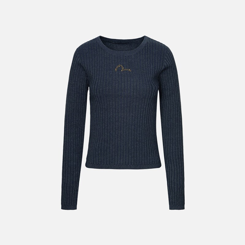 EVISU 2024, новый зимний женский модный свитер с изображением чайки и горячими камнями 2EAHTW4SR4077FFCT