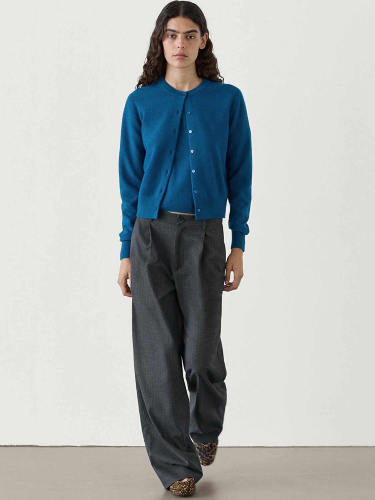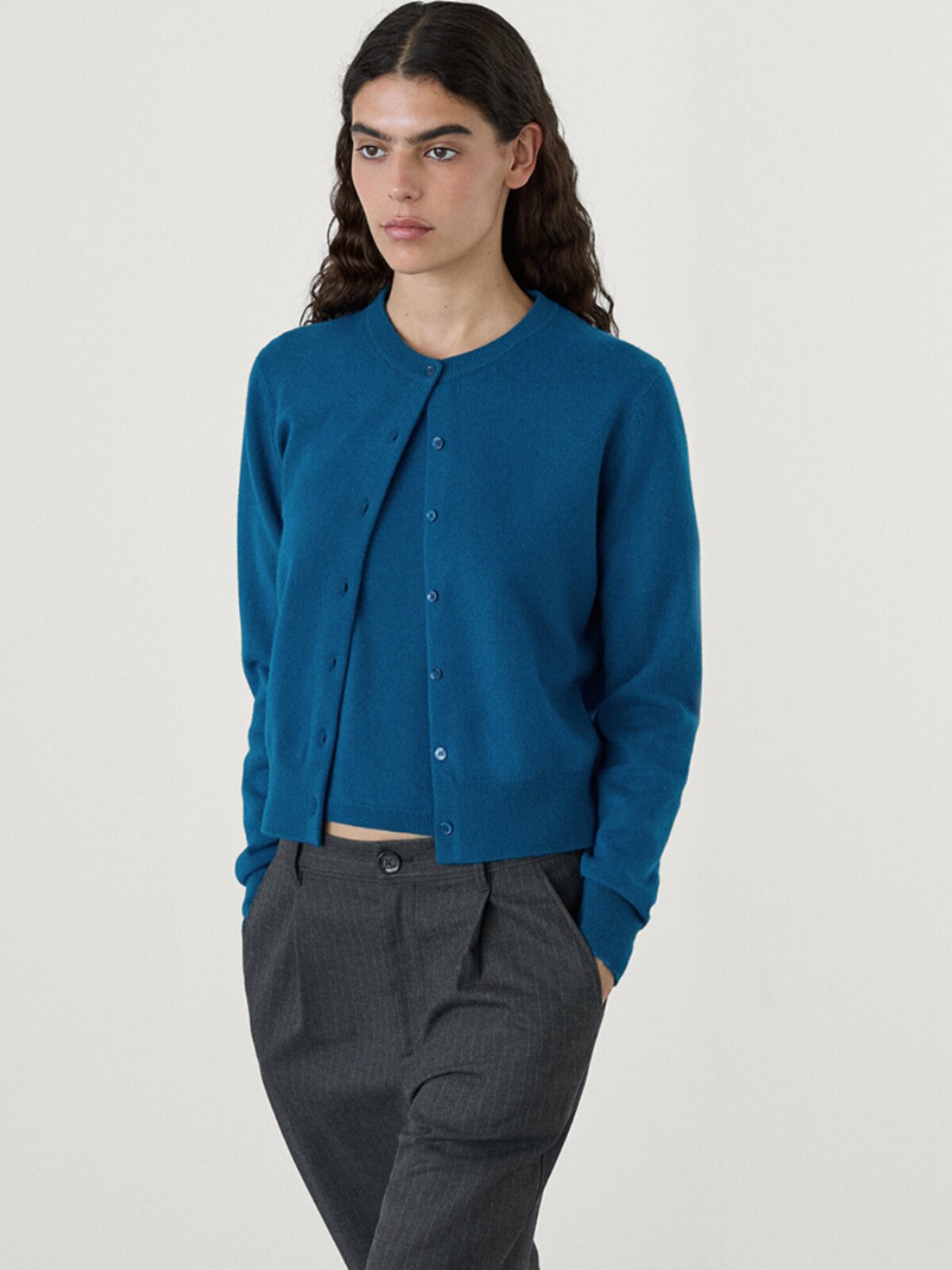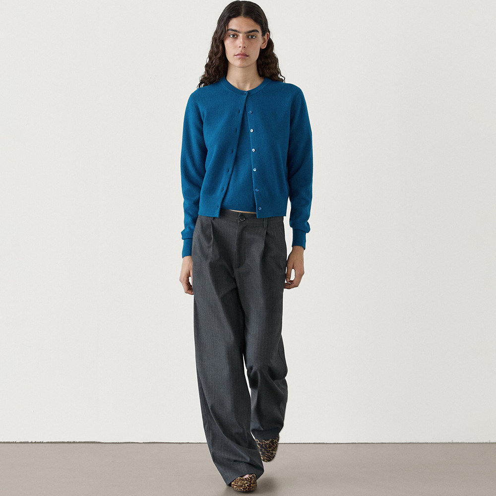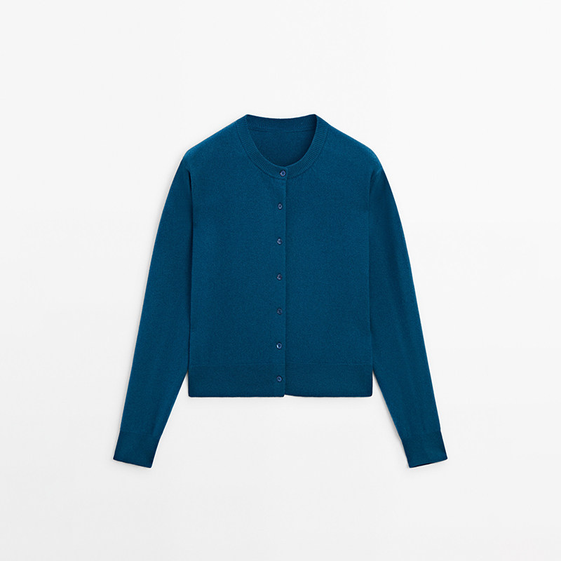 MD женский повседневный минималистичный ленивый стиль из мягкой восковой шерсти вязаный кардиган с круглым вырезом короткая куртка 05701619567