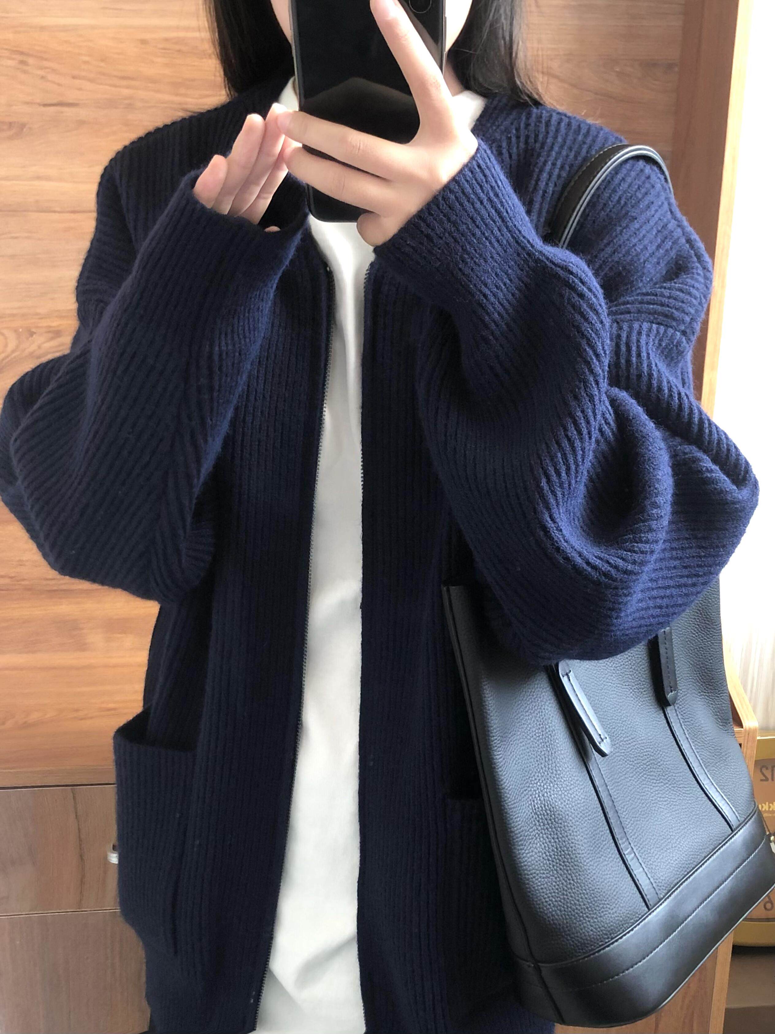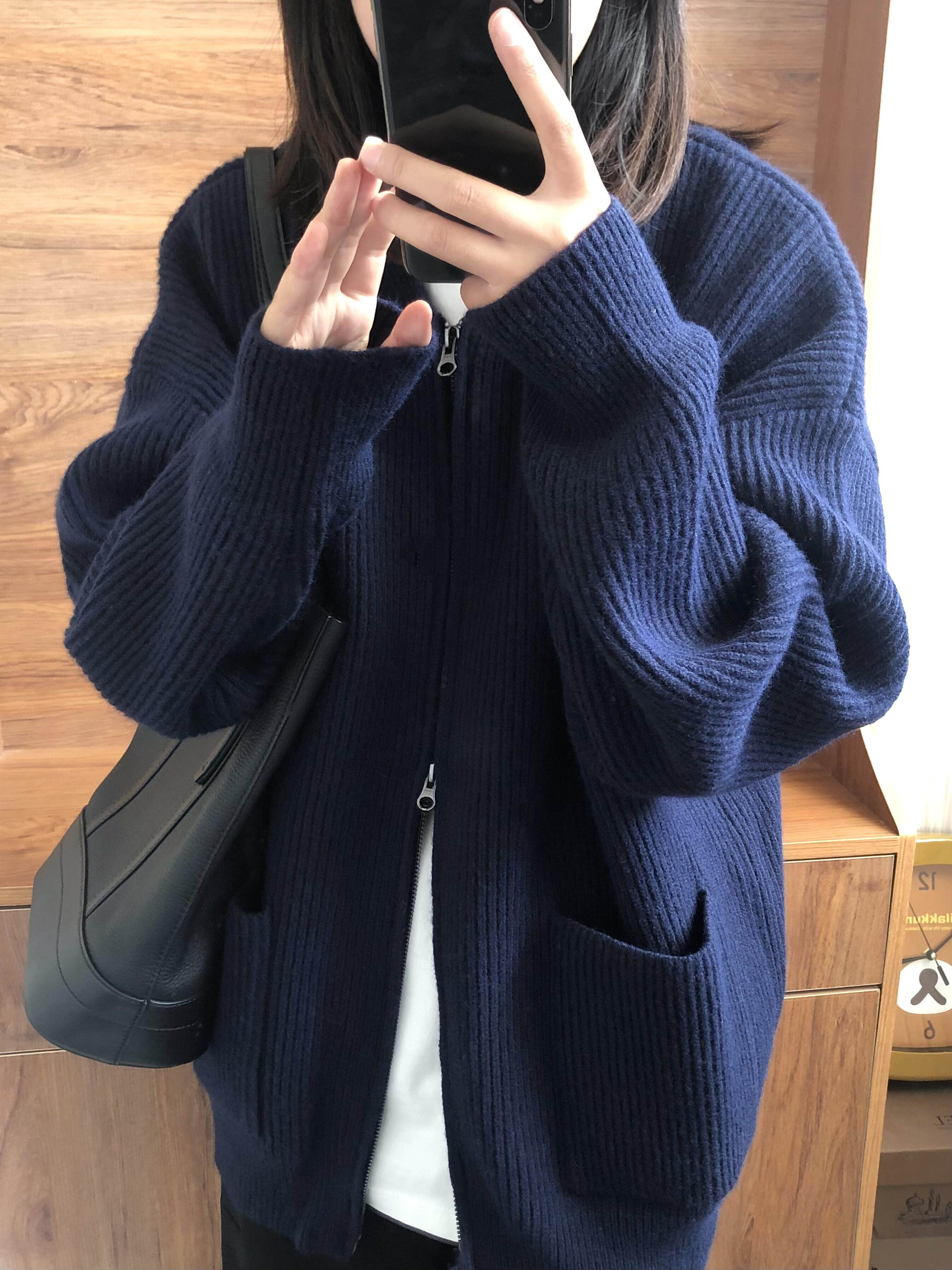 Демисезонная куртка, трикотажный свитер для отдыха, кардиган с молнией, оверсайз