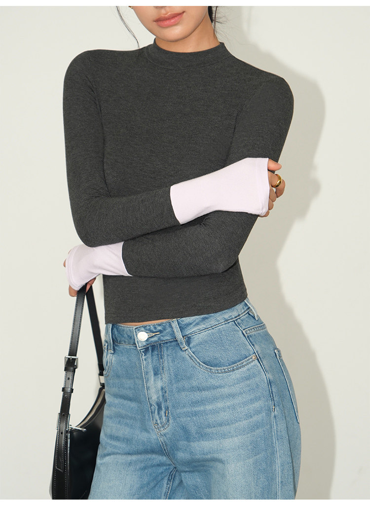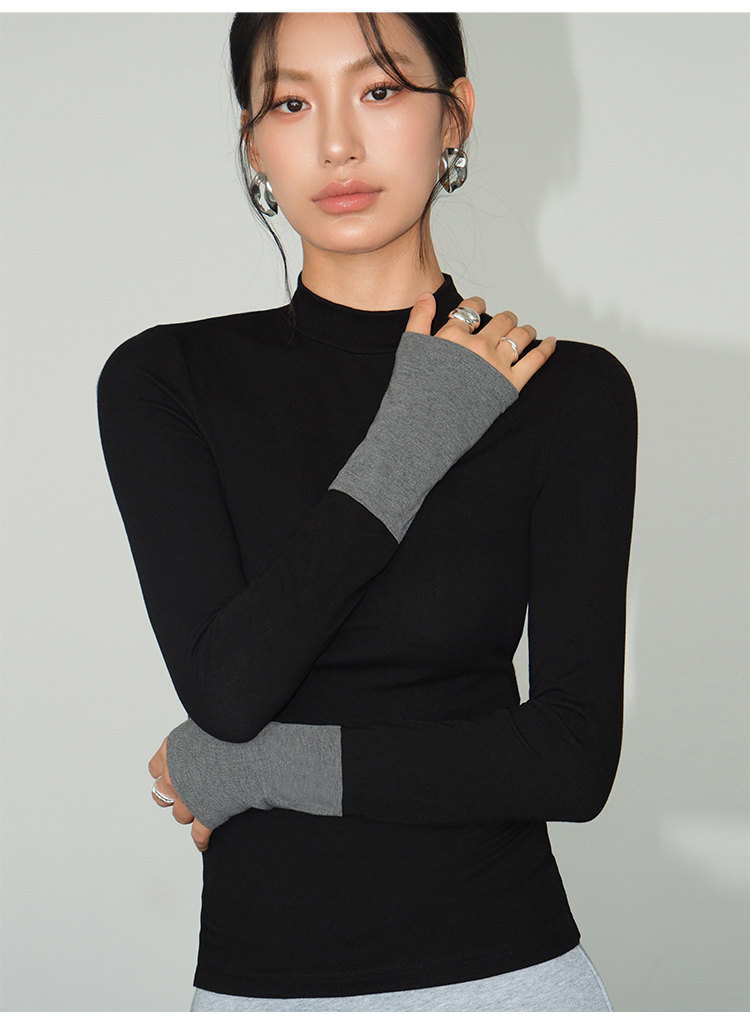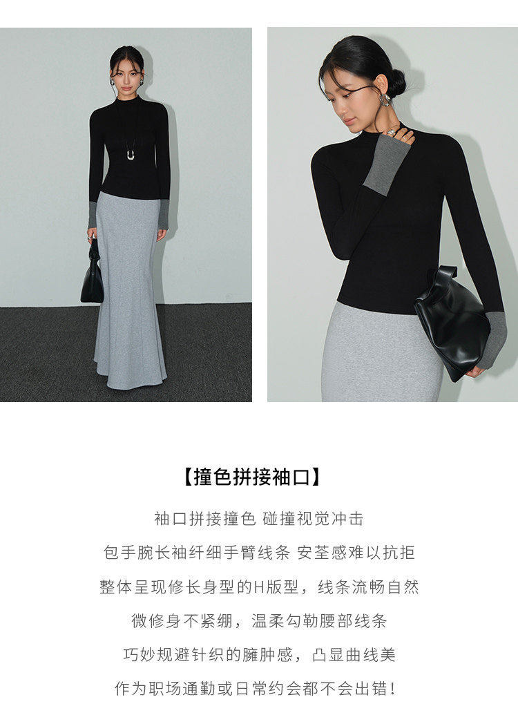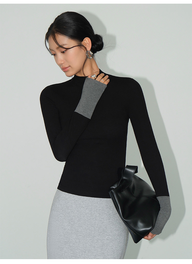 Базовый приятный телу лонгслив, демисезонный трикотажный свитер, высокий воротник, облегающий крой