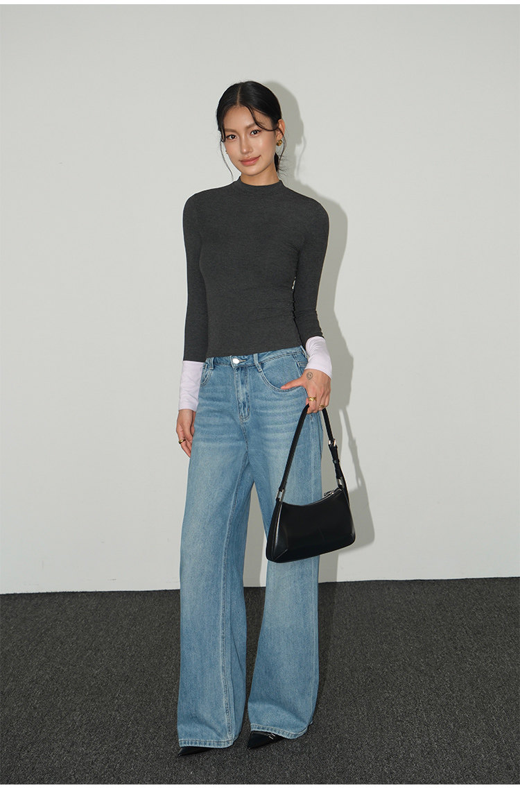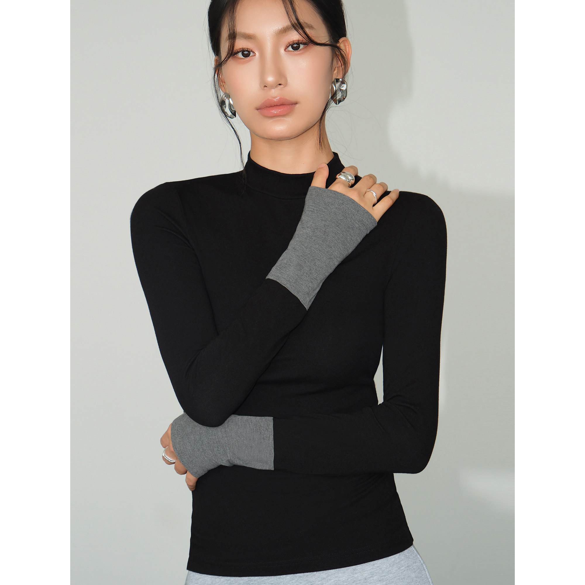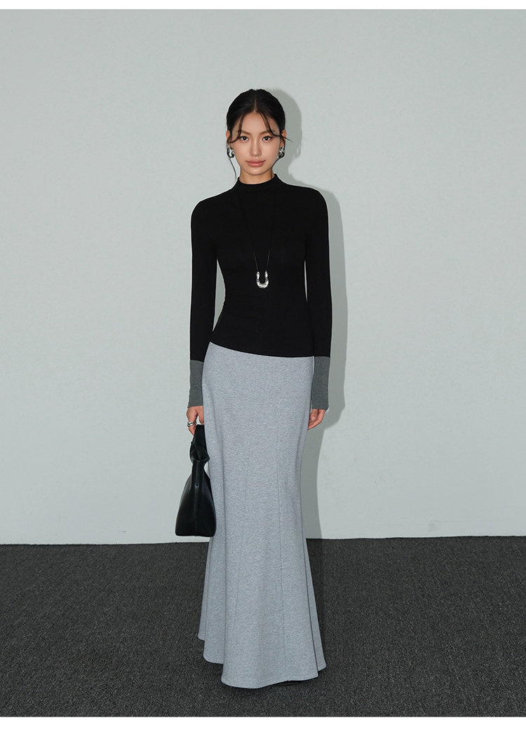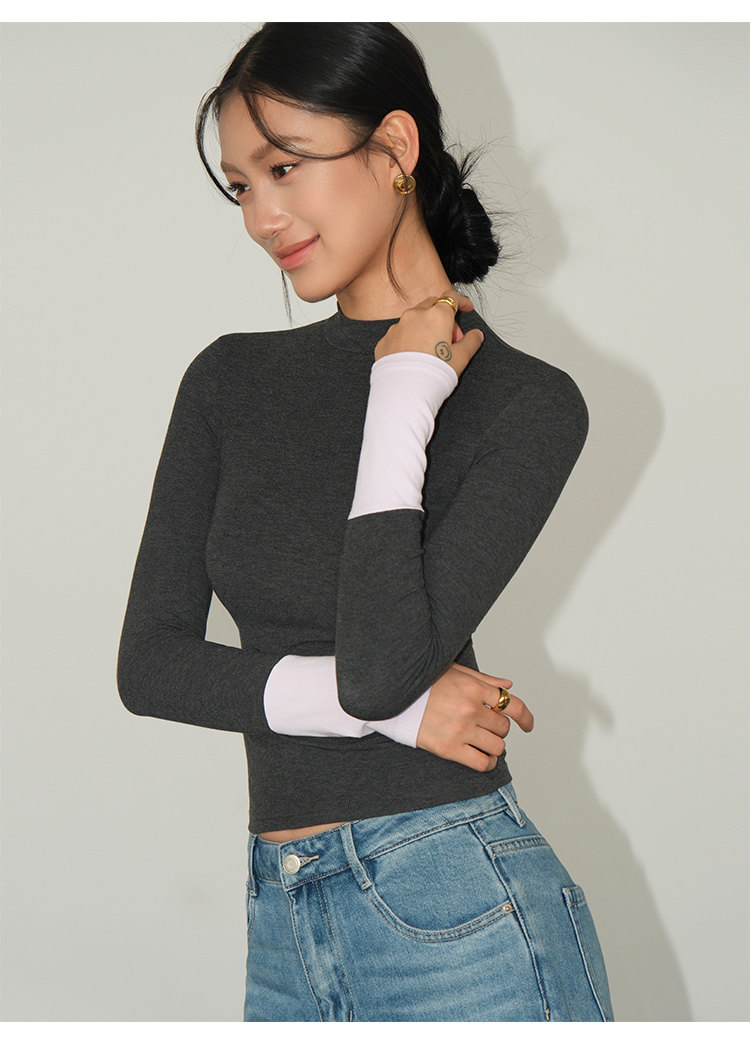 Базовый приятный телу лонгслив, демисезонный трикотажный свитер, высокий воротник, облегающий крой