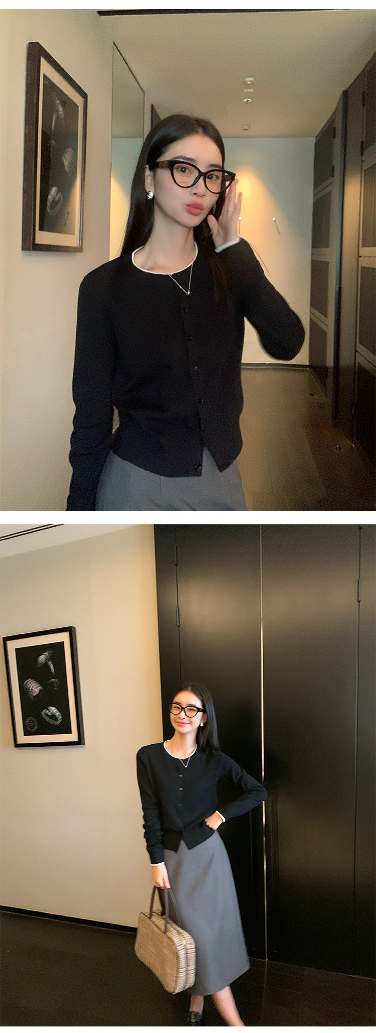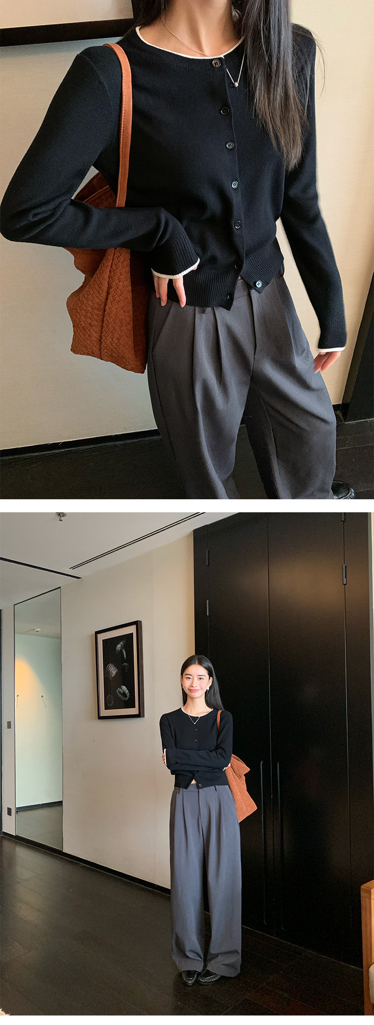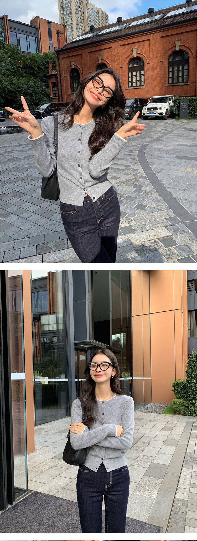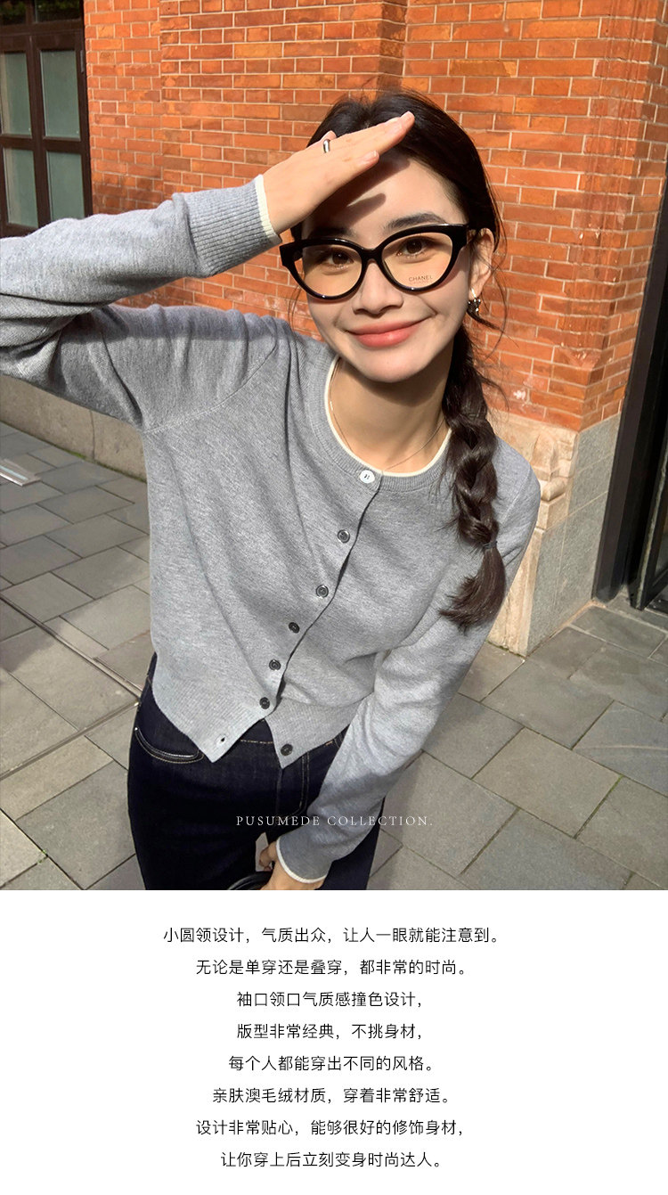 Дизайнерский кардиган с круглым воротником, трикотажный шерстяной лонгслив, тренд сезона