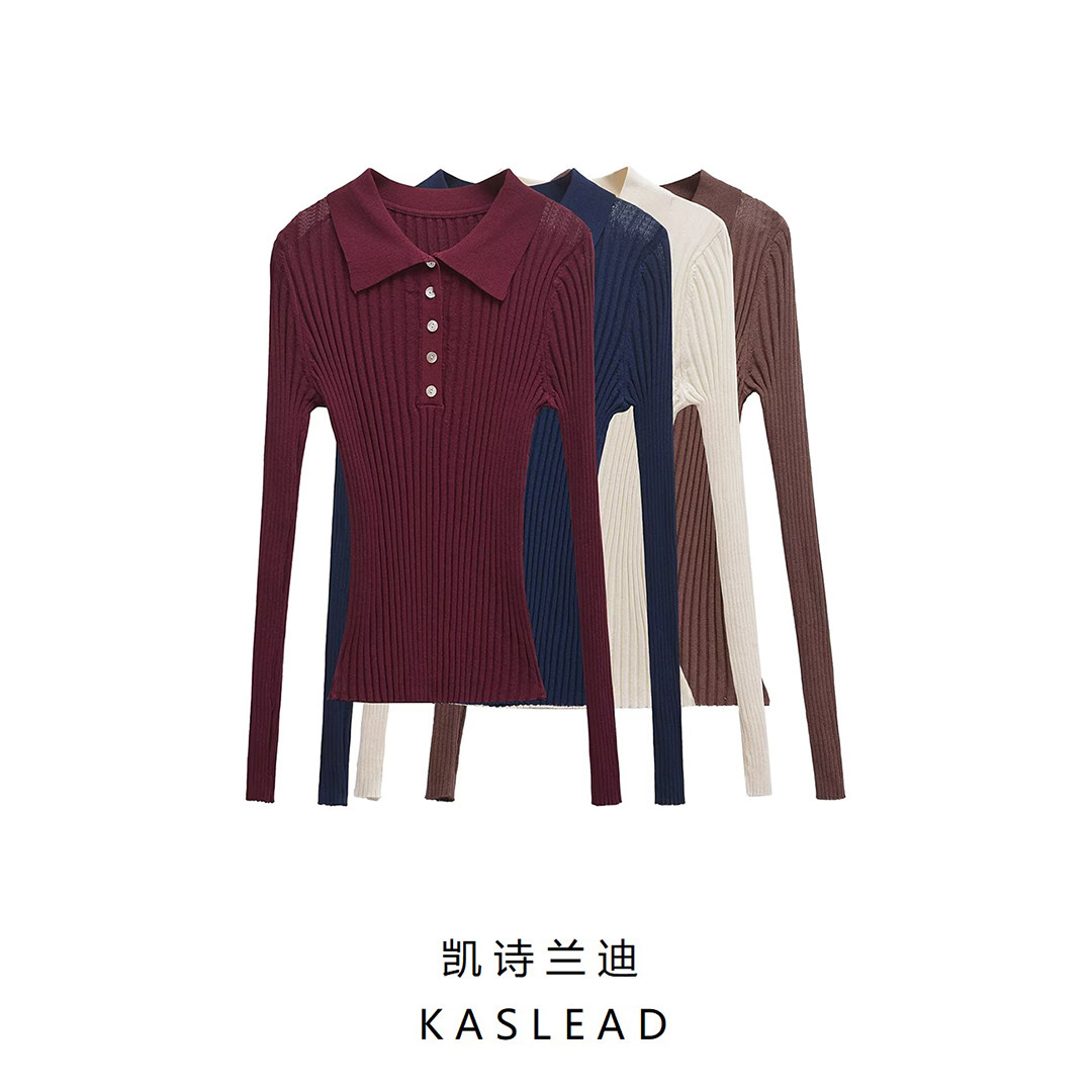 Kaslead Новая женская одежда европейская и американская модная вязаная вязаная тонкая длинная рукава Top 9598124