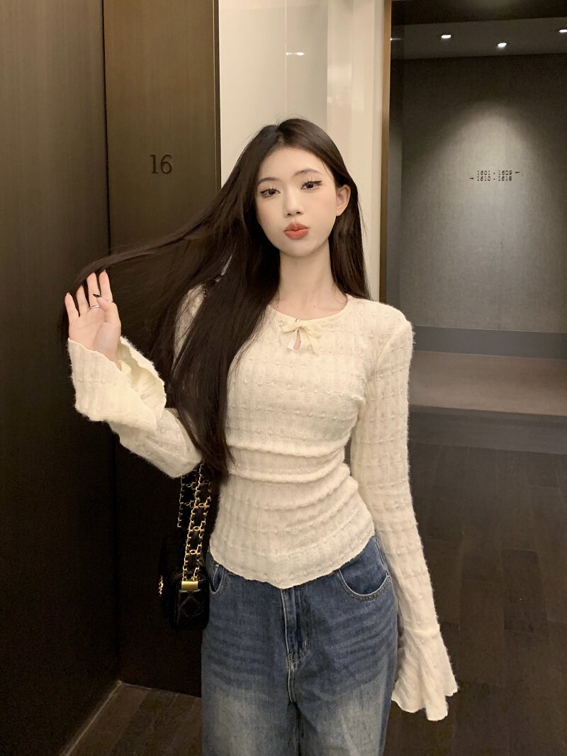 Осенний лонгслив, трикотажный мегафон, весенняя осенняя рубашка, стиль