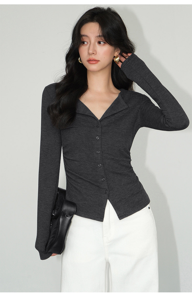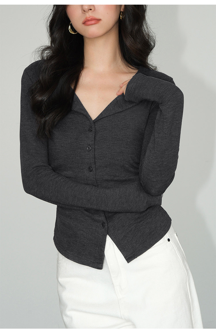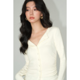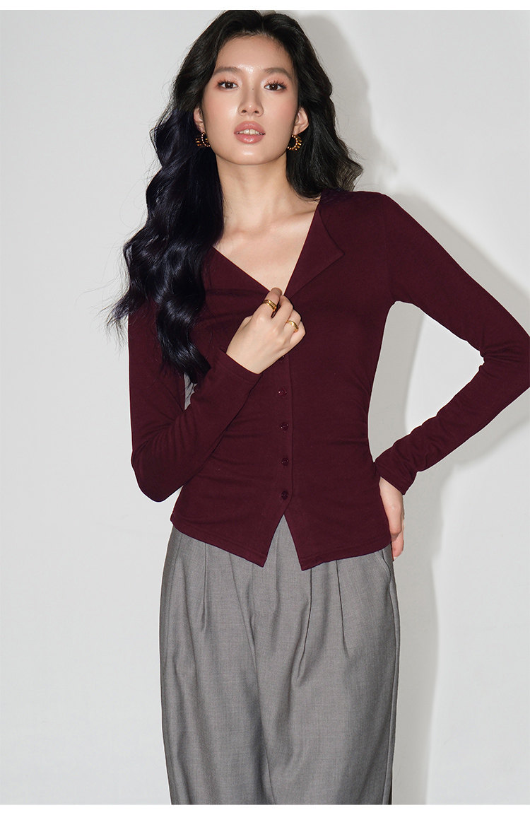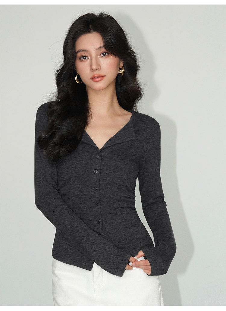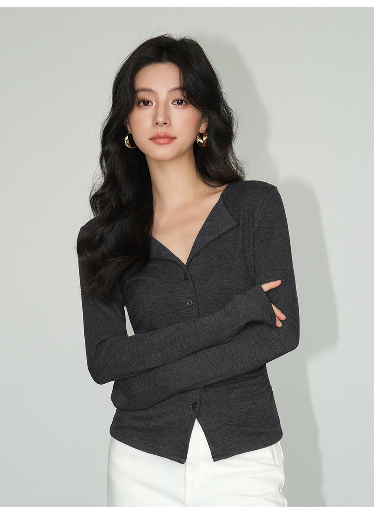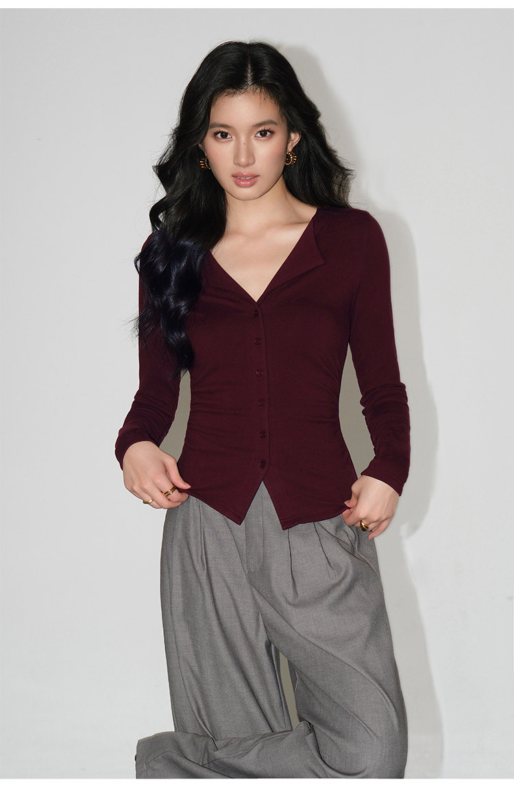 Трикотажный лонгслив, осенний приталенный дизайнерский базовый приятный телу свитер, V-образный вырез, тренд сезона