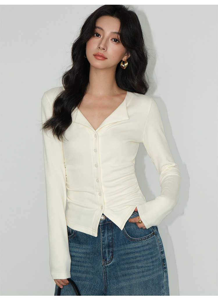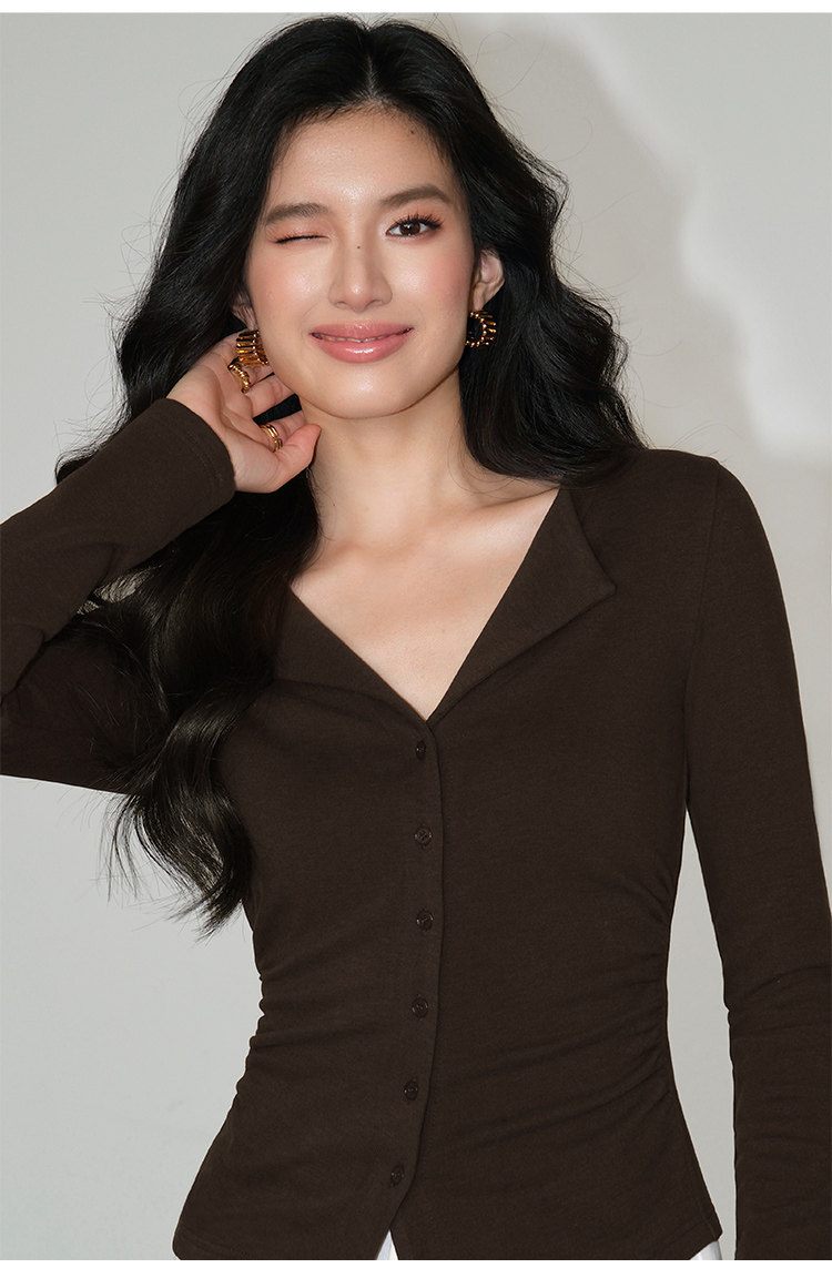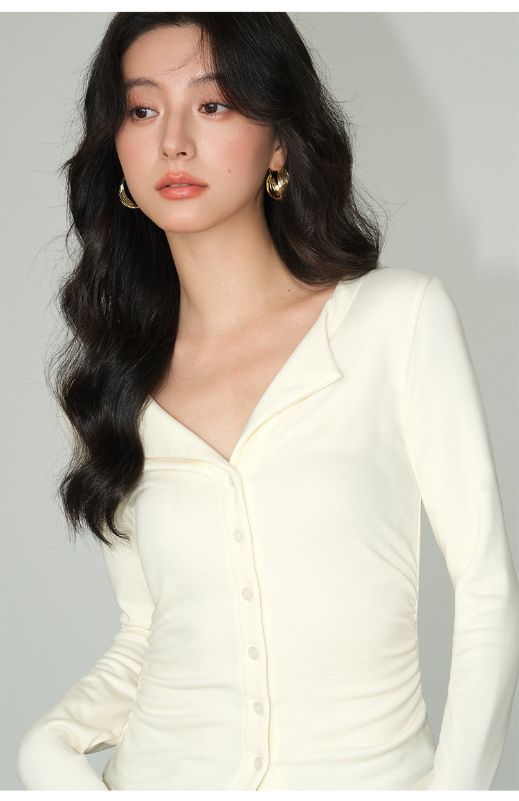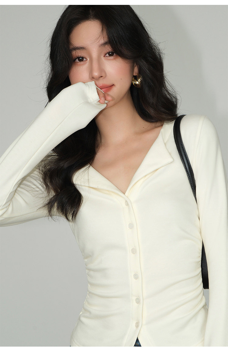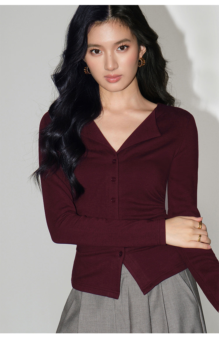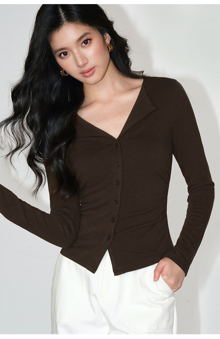 Трикотажный лонгслив, осенний приталенный дизайнерский базовый приятный телу свитер, V-образный вырез, тренд сезона