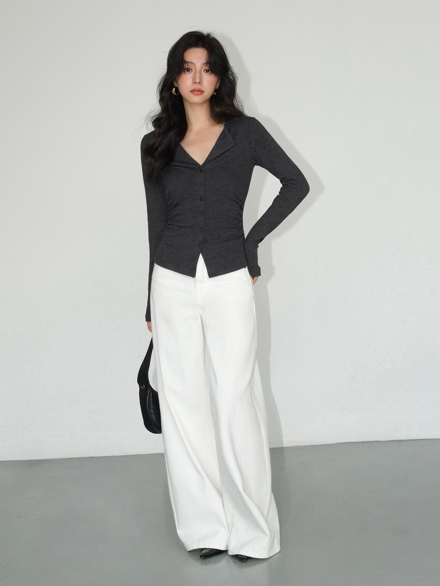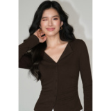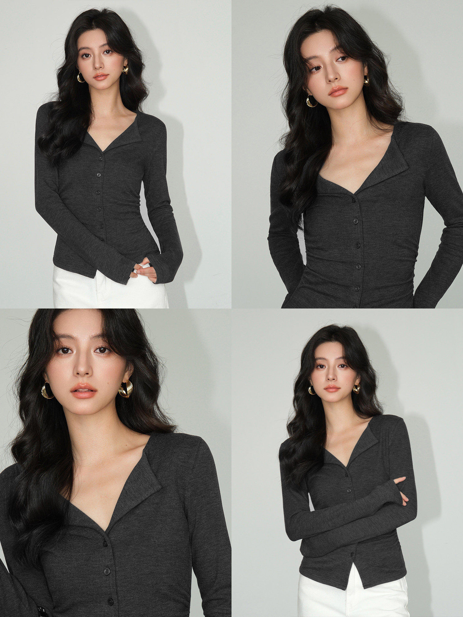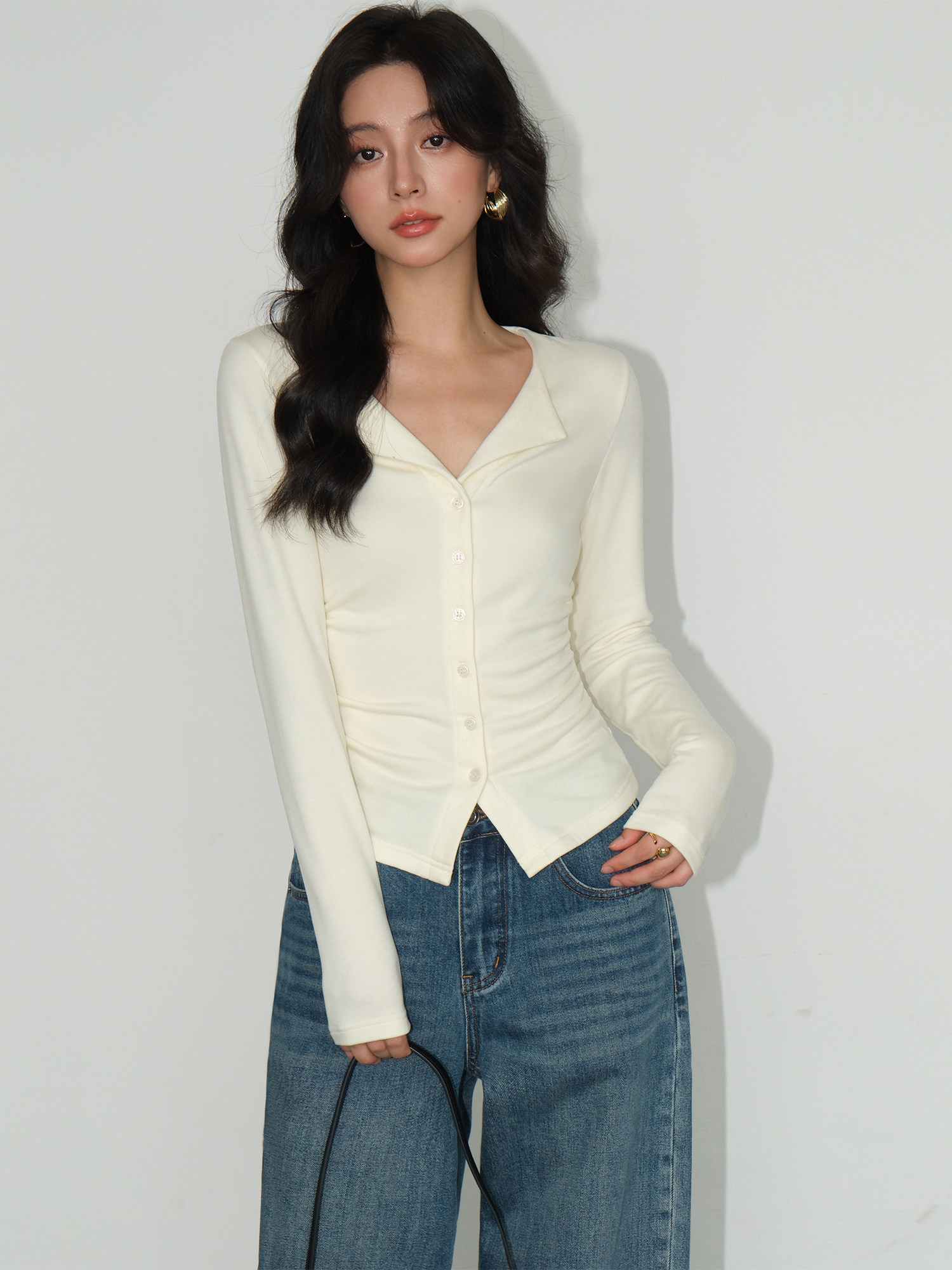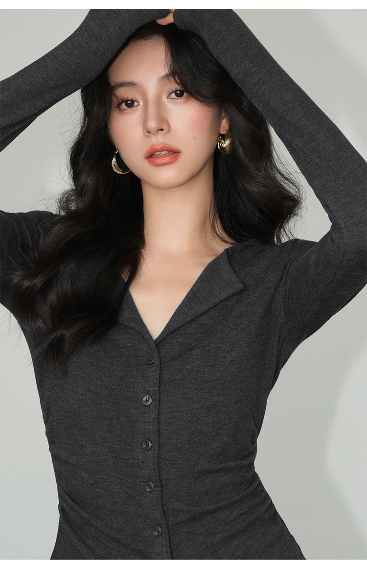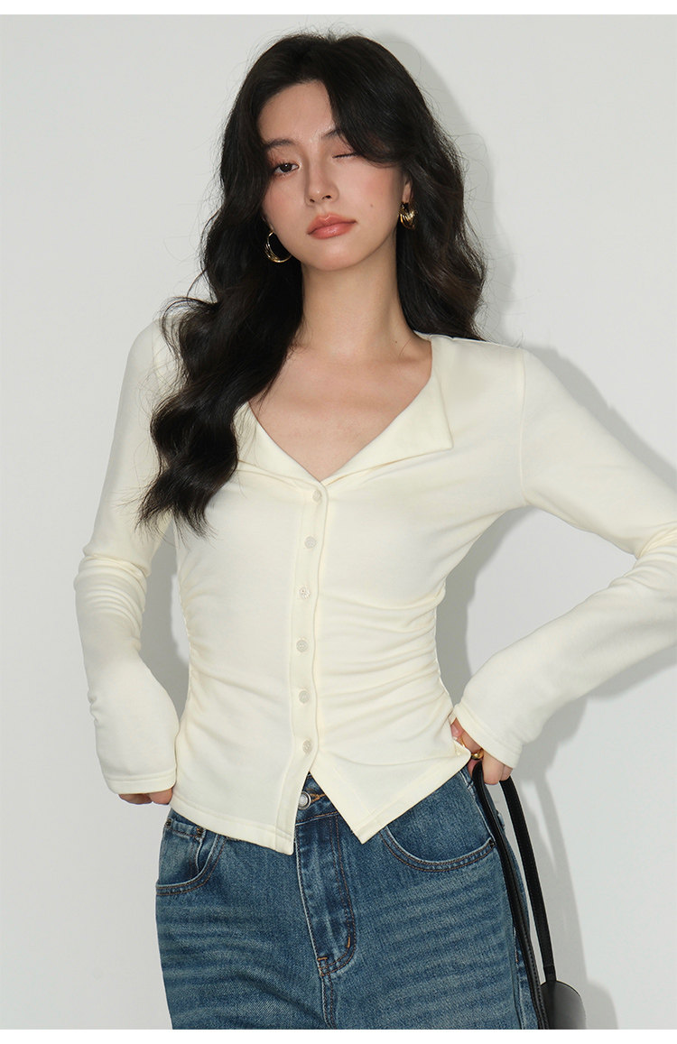 Трикотажный лонгслив, осенний приталенный дизайнерский базовый приятный телу свитер, V-образный вырез, тренд сезона
