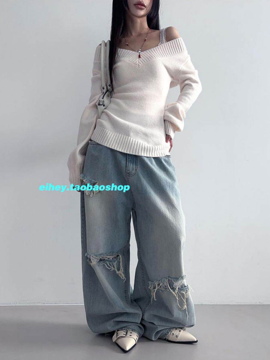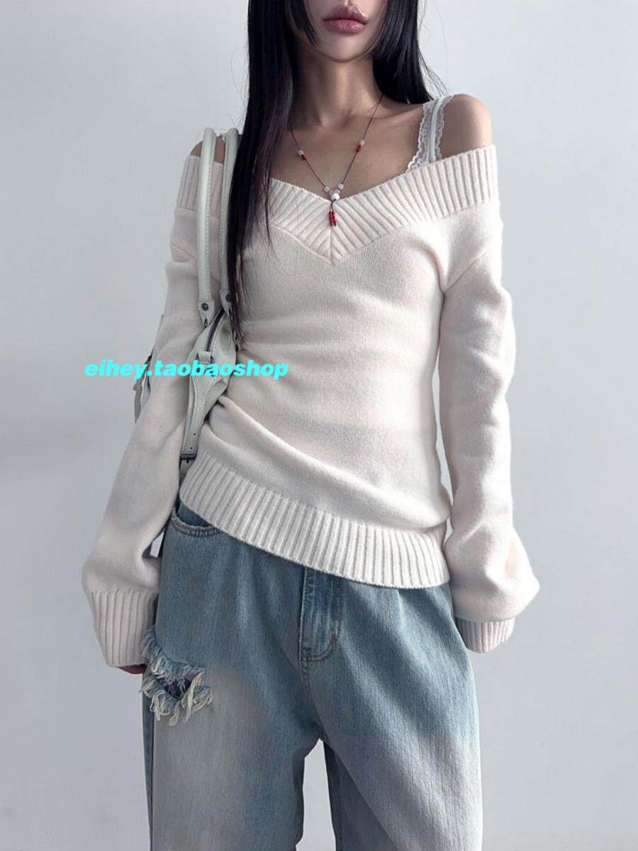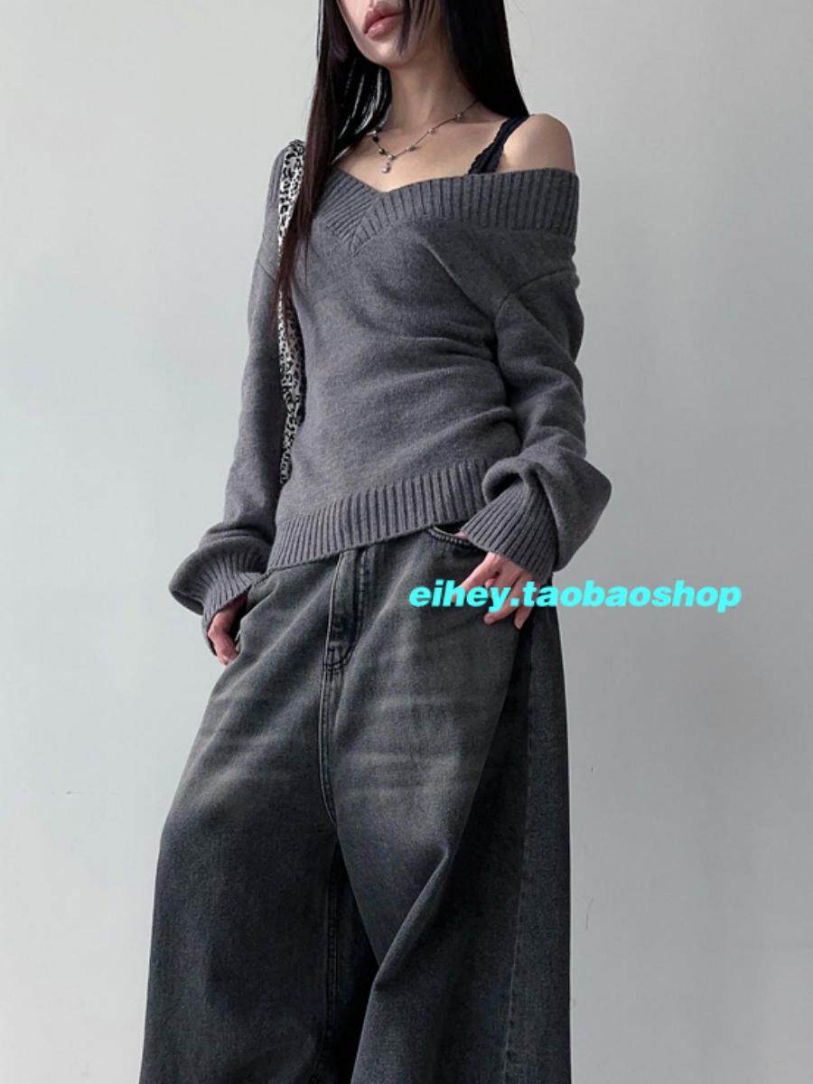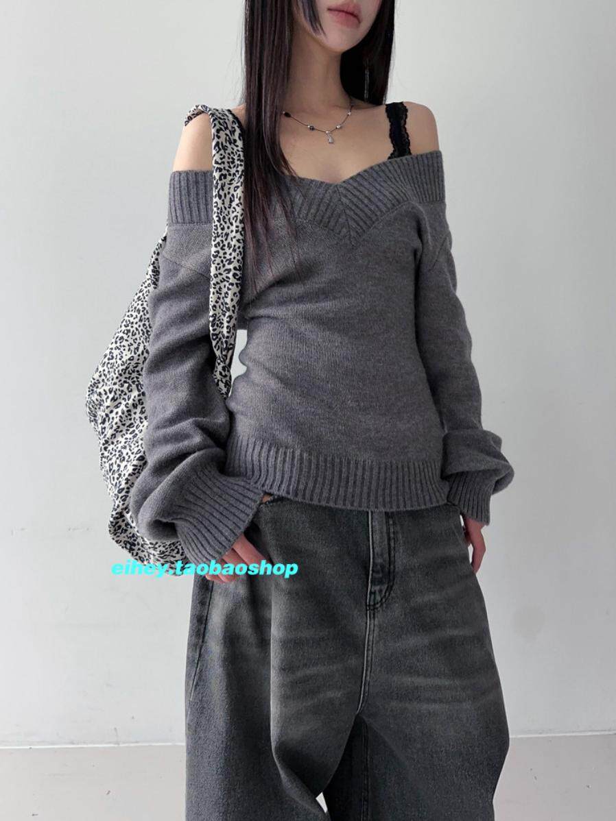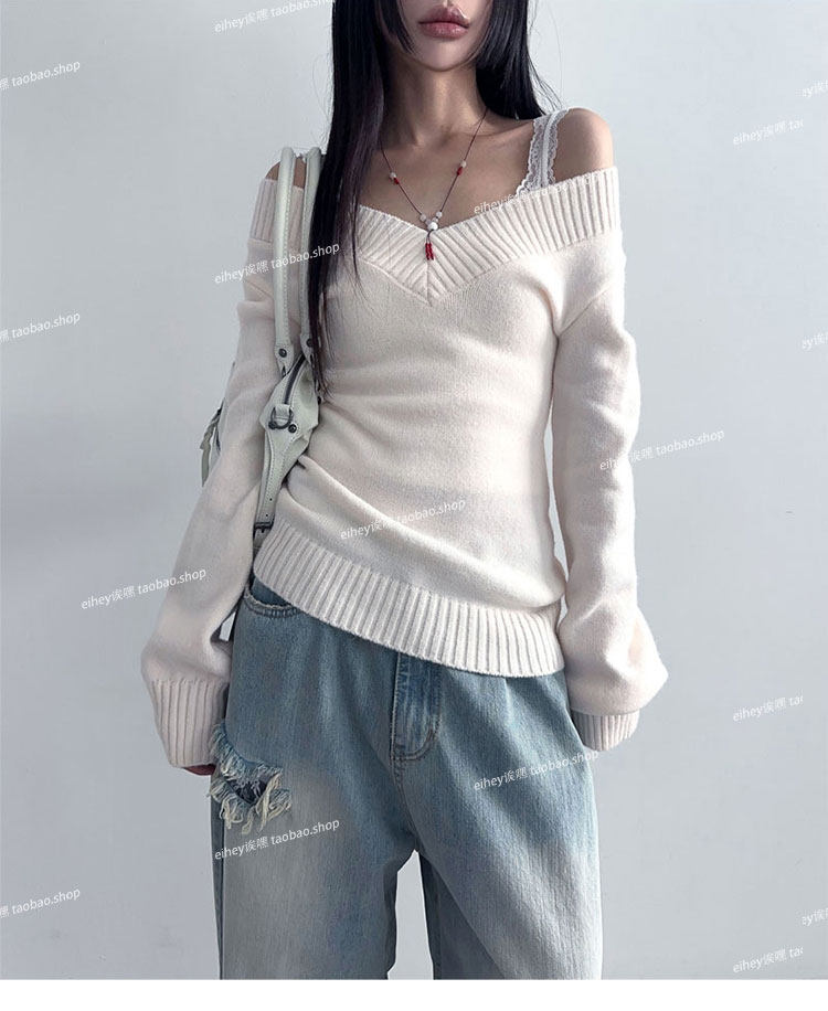 eihey Ретро эластичный трикотажный свитер, майка, V-образный вырез, облегающий крой