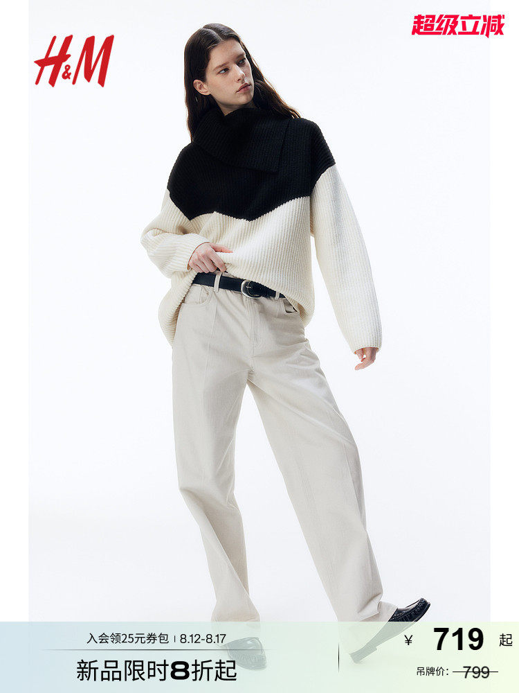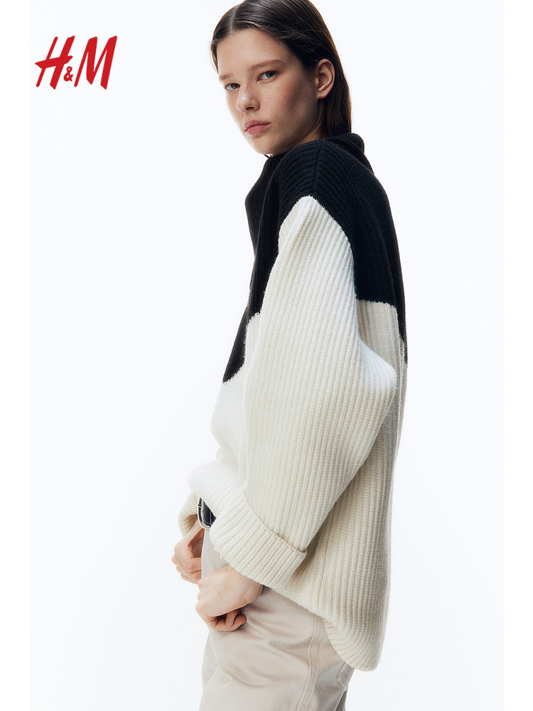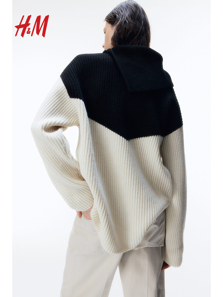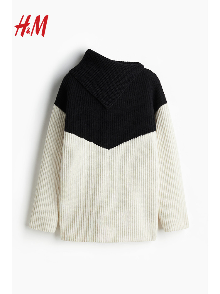 [Серия Zhizhen] Hm женский осенний свободный шерстяной свитер с асимметричным воротником и длинными рукавами 1278103