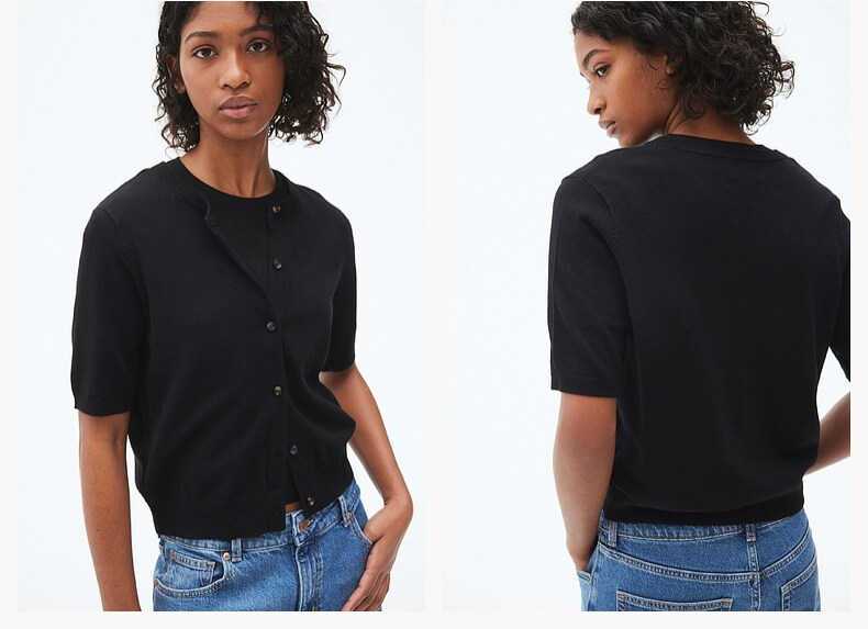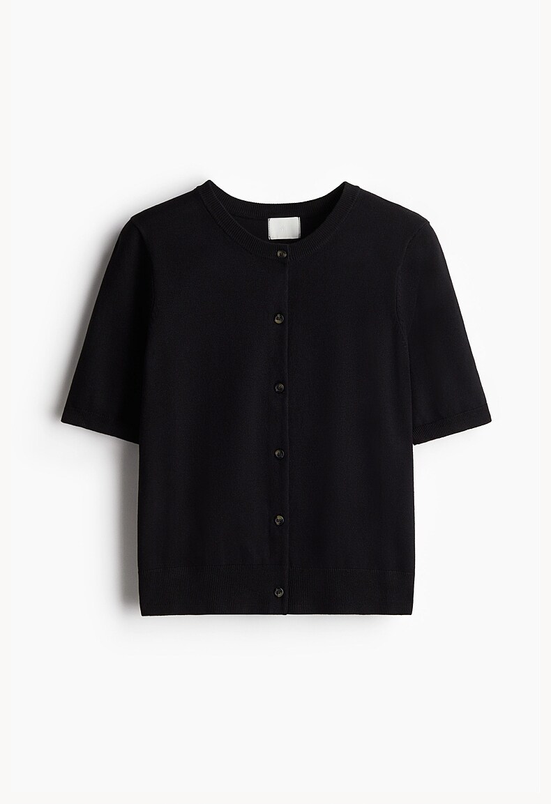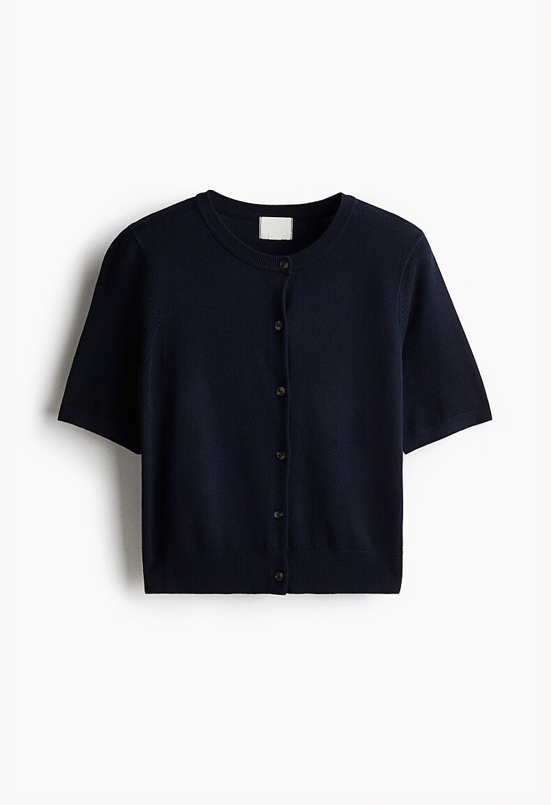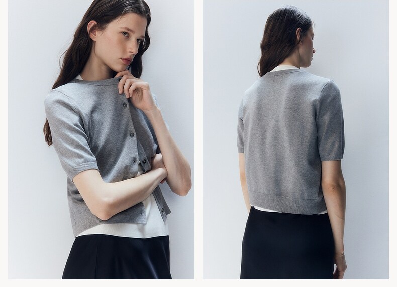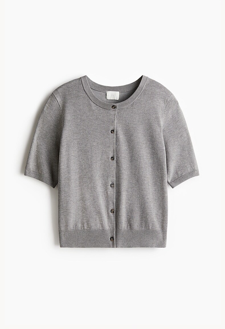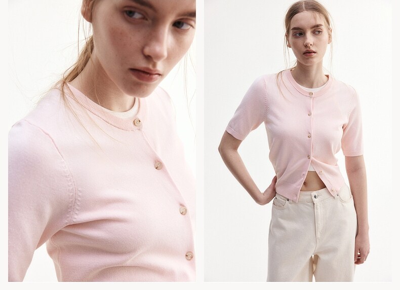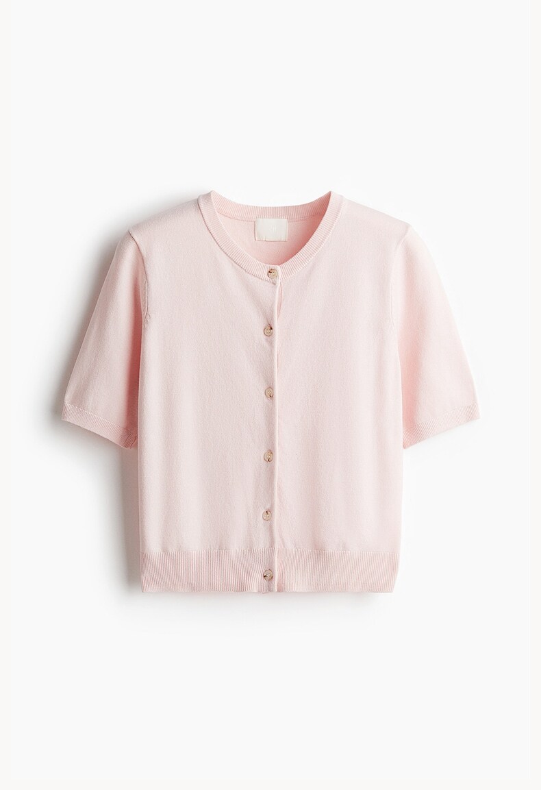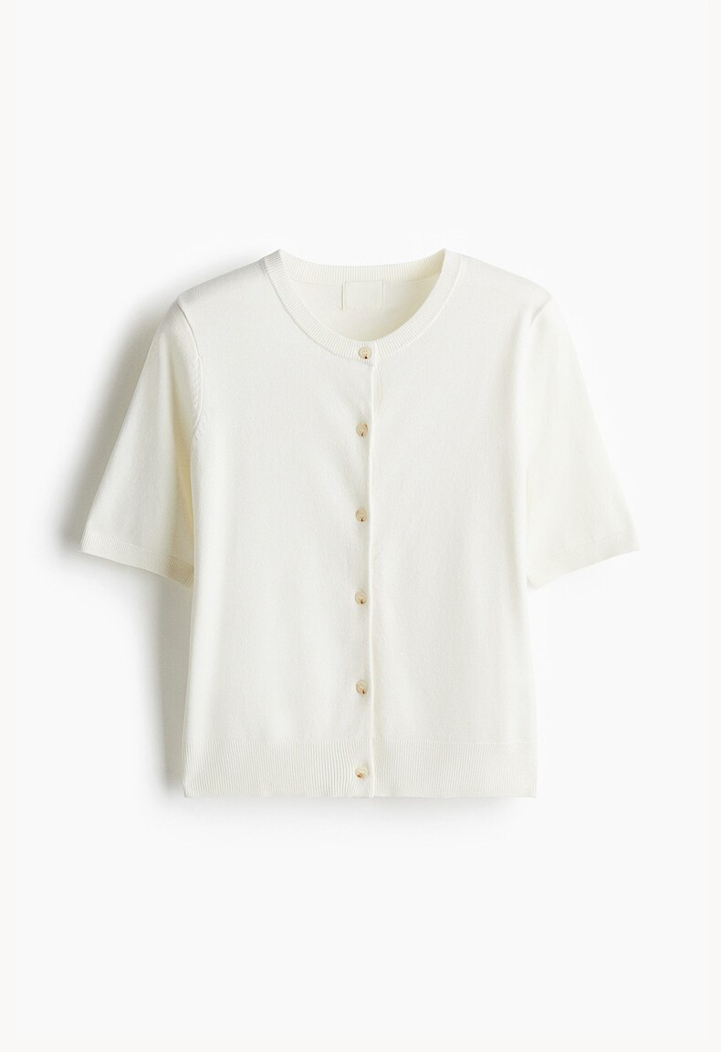 Трикотажный летний свитер, кардиган с круглым воротником, короткий рукав