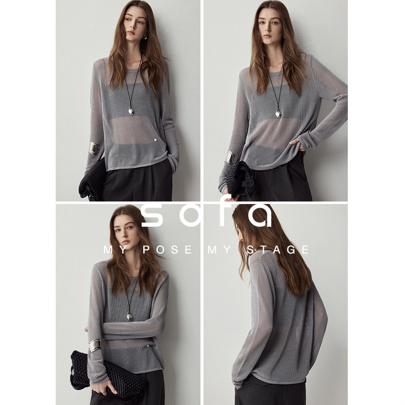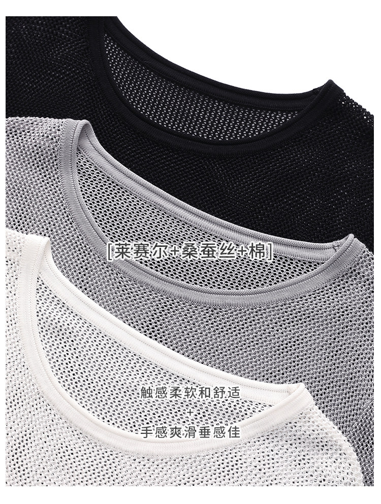 Полая футболка с атмосферой! Диван | шелк шелк шелк десять тысяч шелковых модных модных пустых бумажных мужчин вязаная рубашка