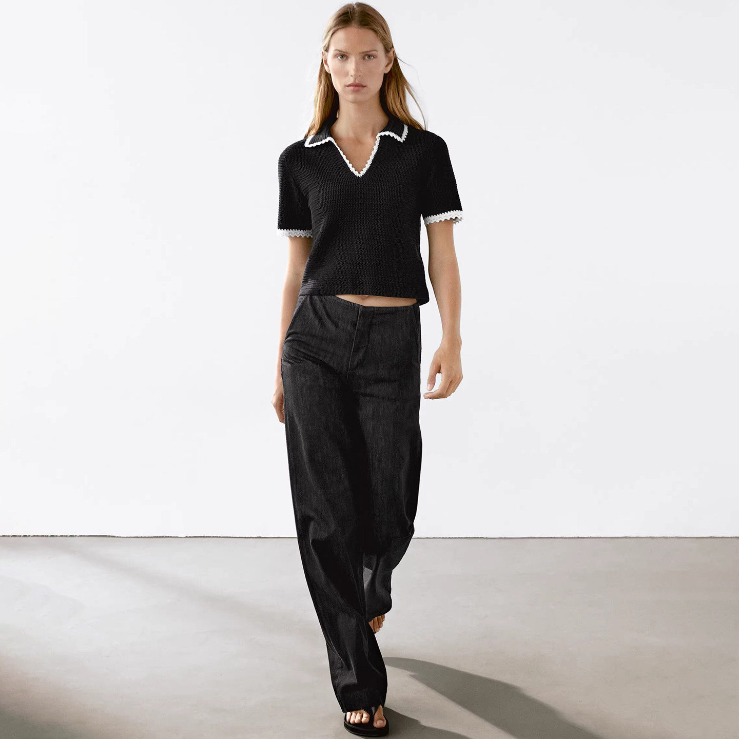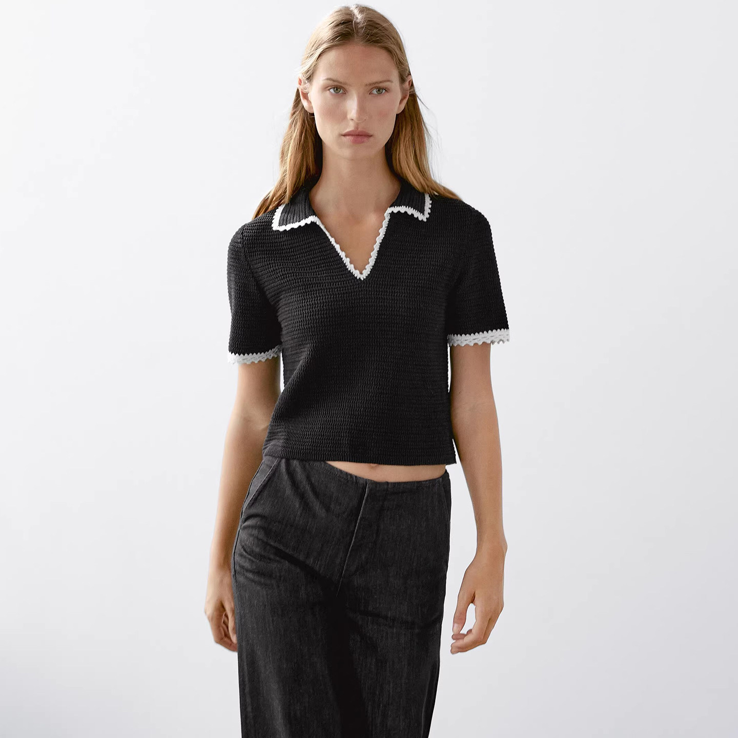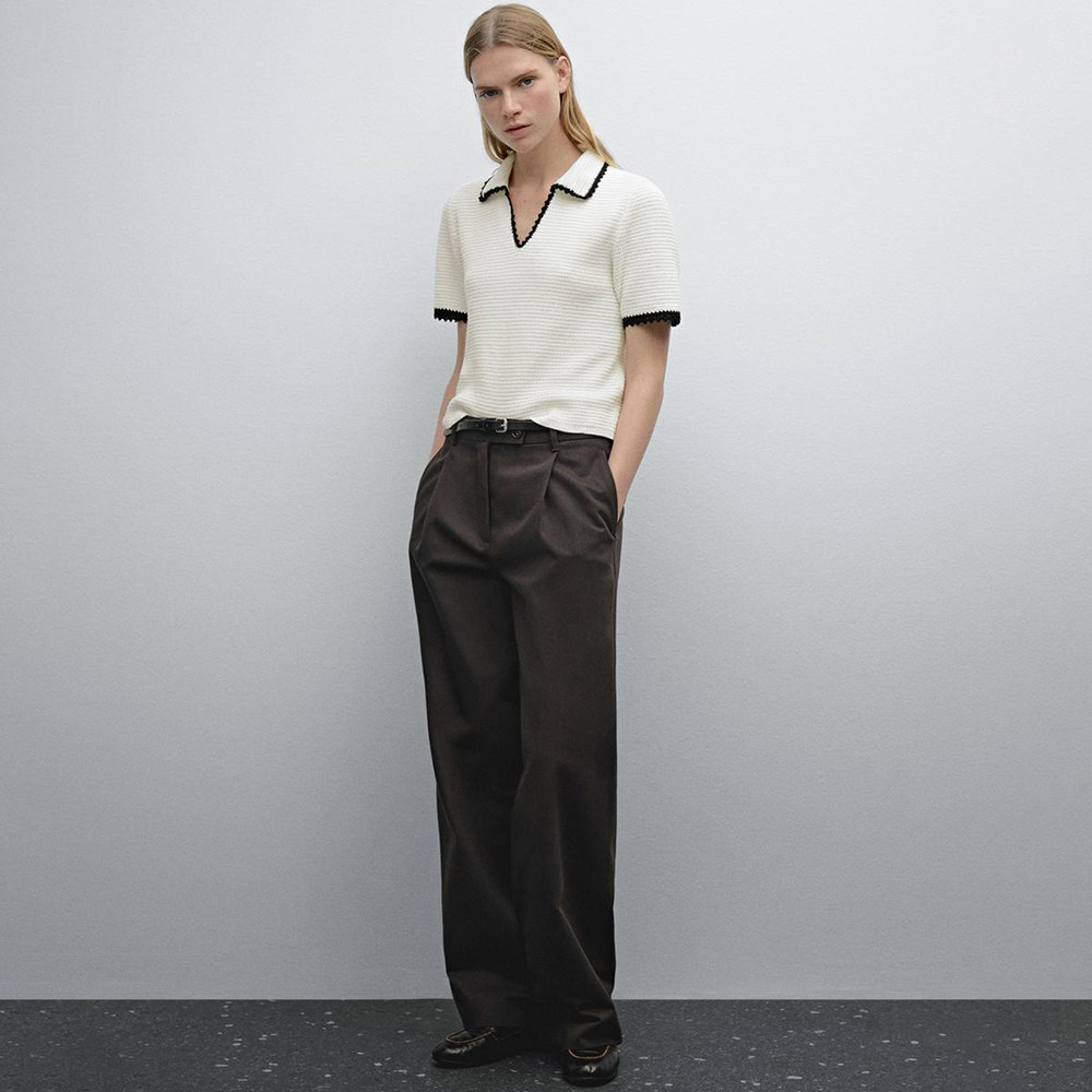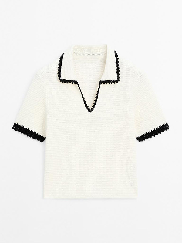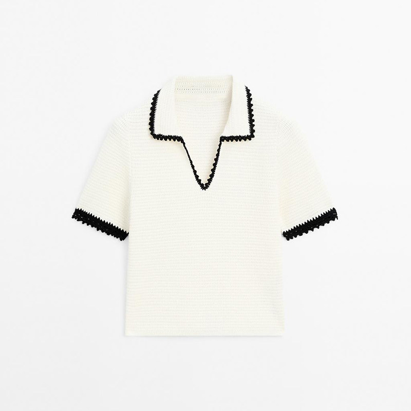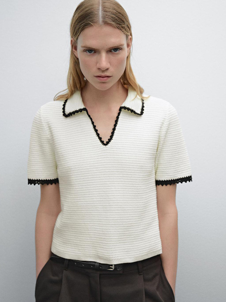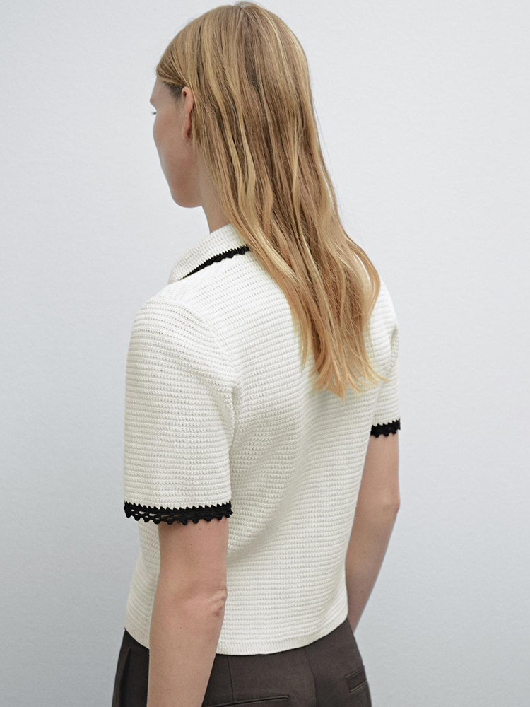 Md Ladies Маленький ароматный женственный бежево-белый женский свитер-поло с воротником-поло крючком и короткими рукавами 05731683712