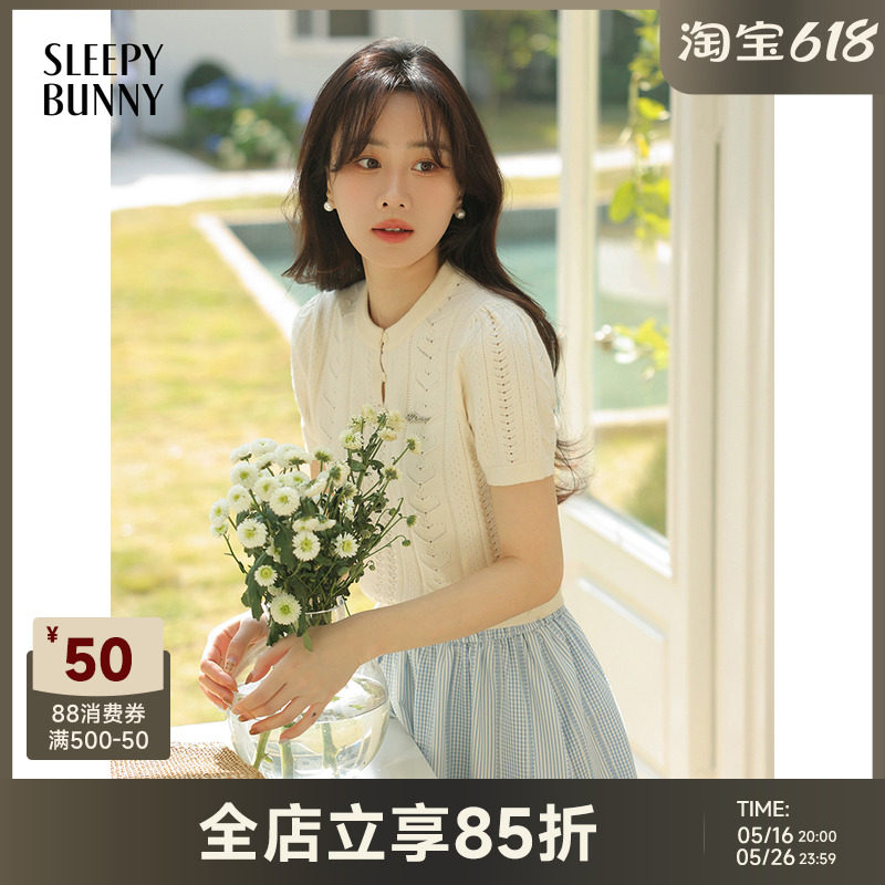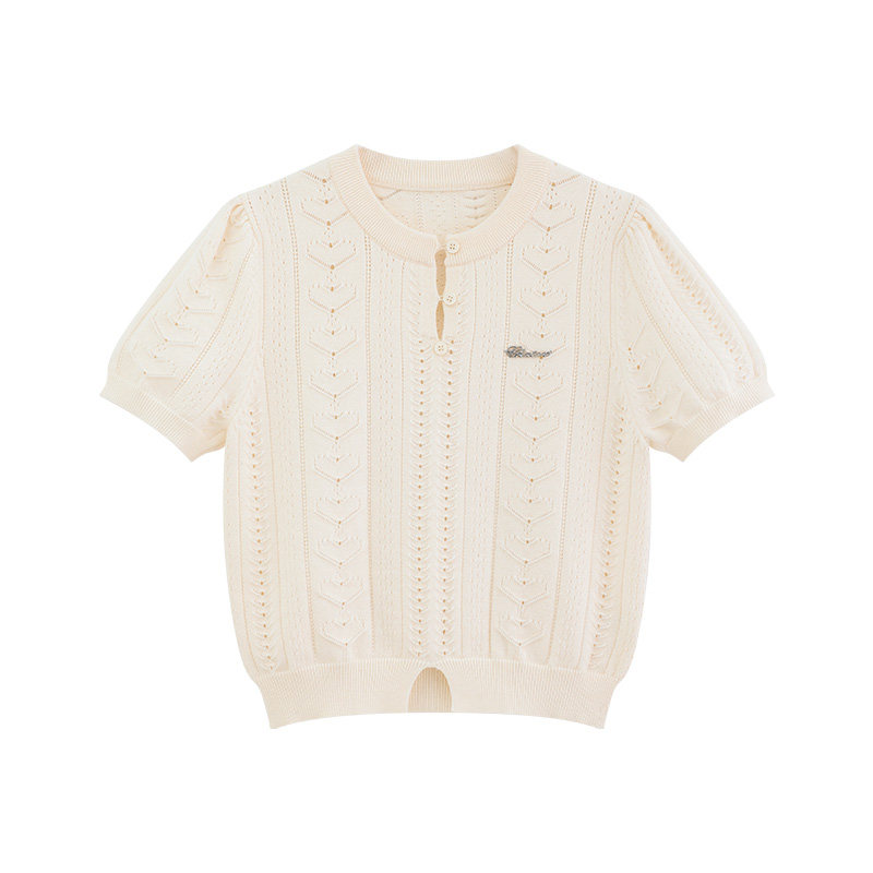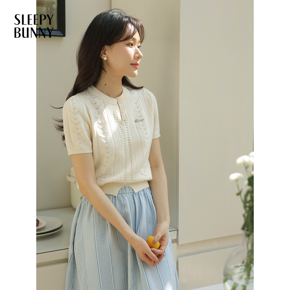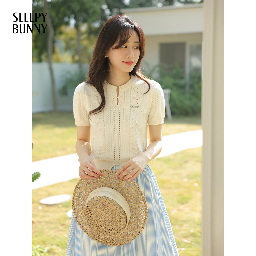 瞌睡兔 Дизайнерский трикотажный эластичный приталенный короткий свитер с круглым воротником, тренд сезона, короткий рукав