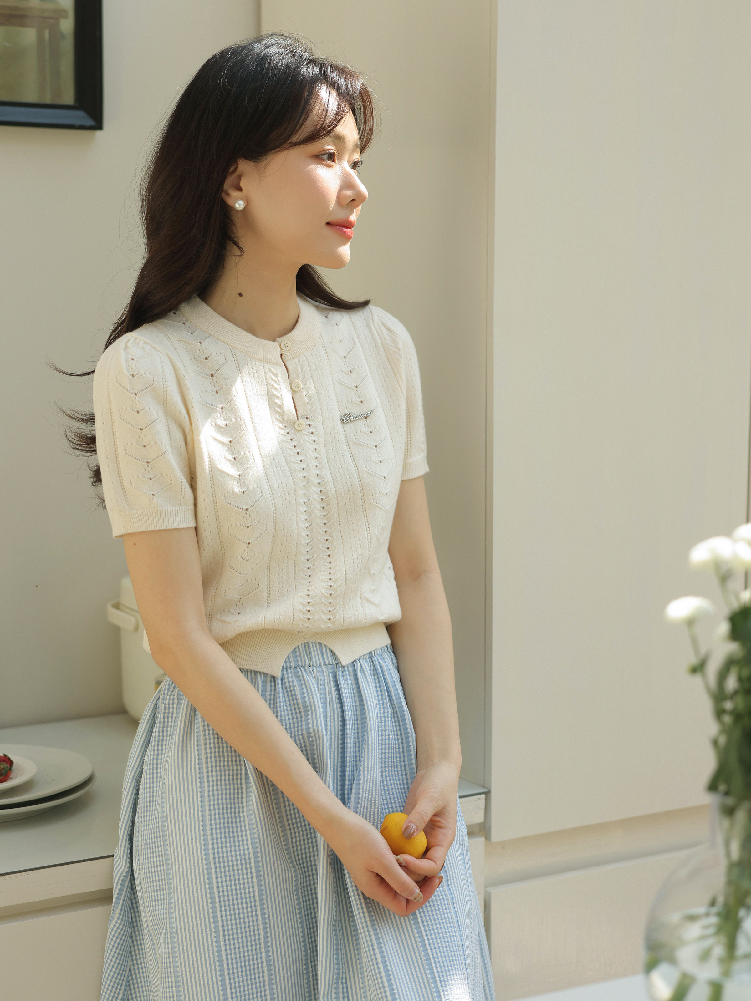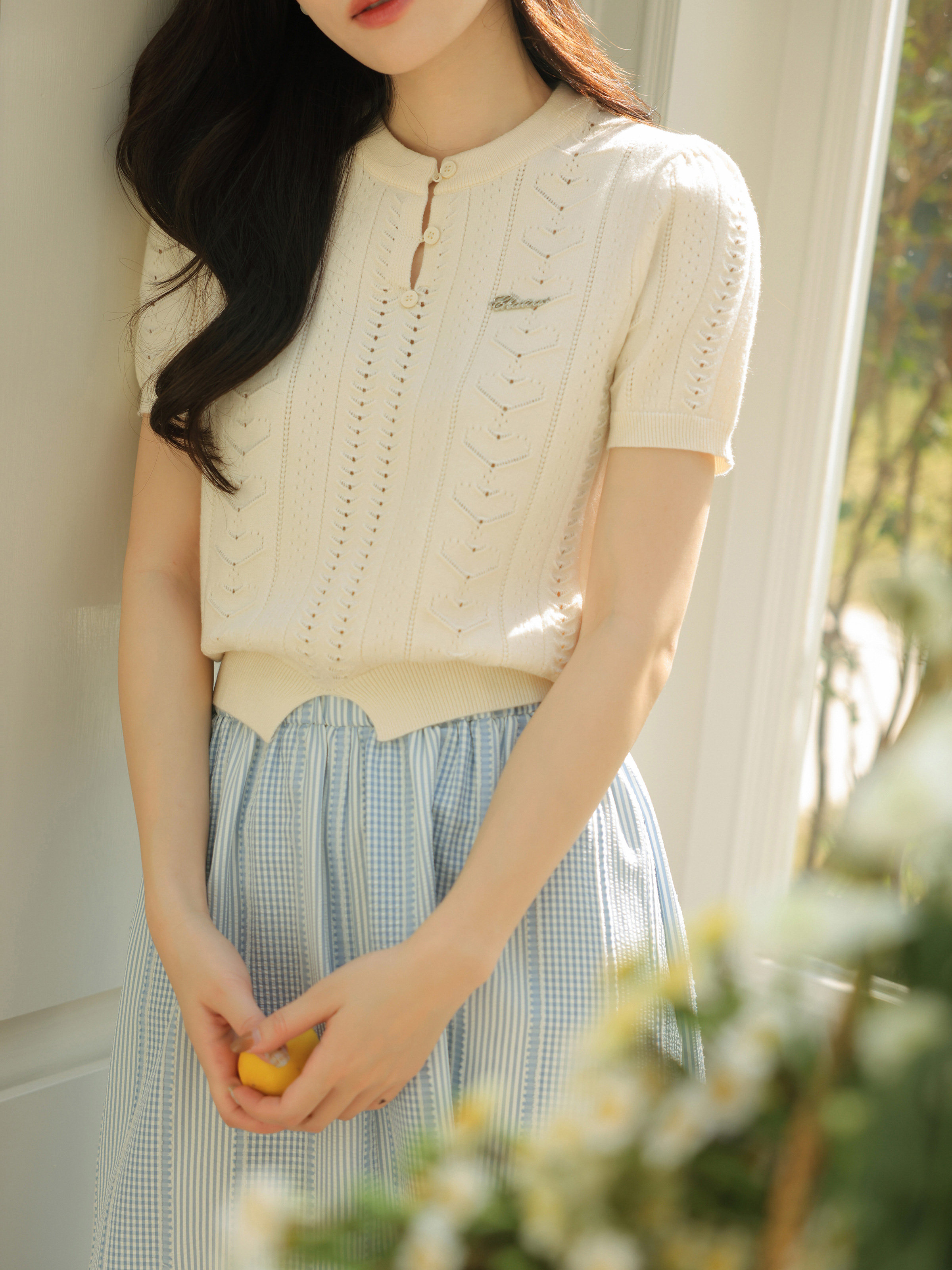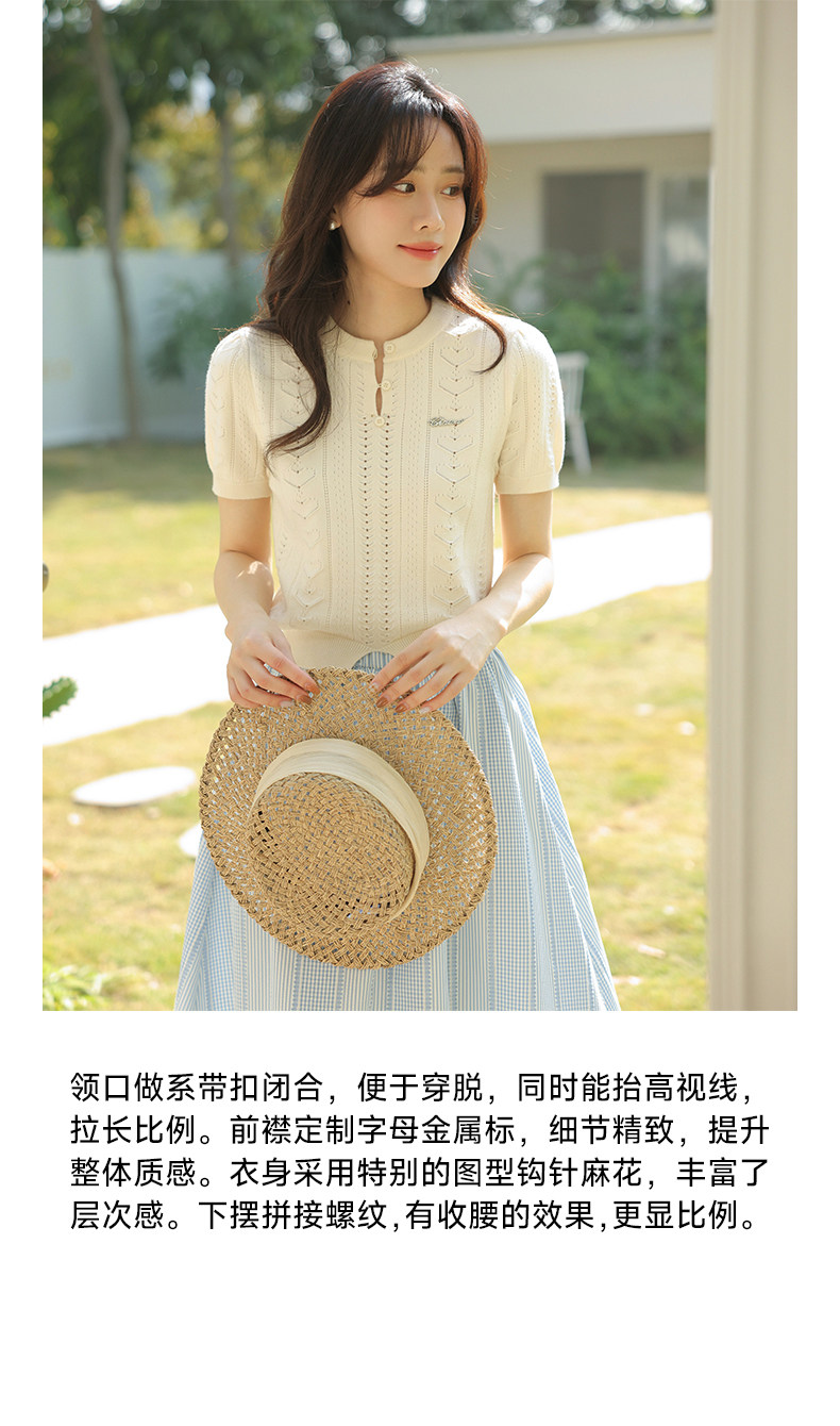 瞌睡兔 Дизайнерский трикотажный эластичный приталенный короткий свитер с круглым воротником, тренд сезона, короткий рукав