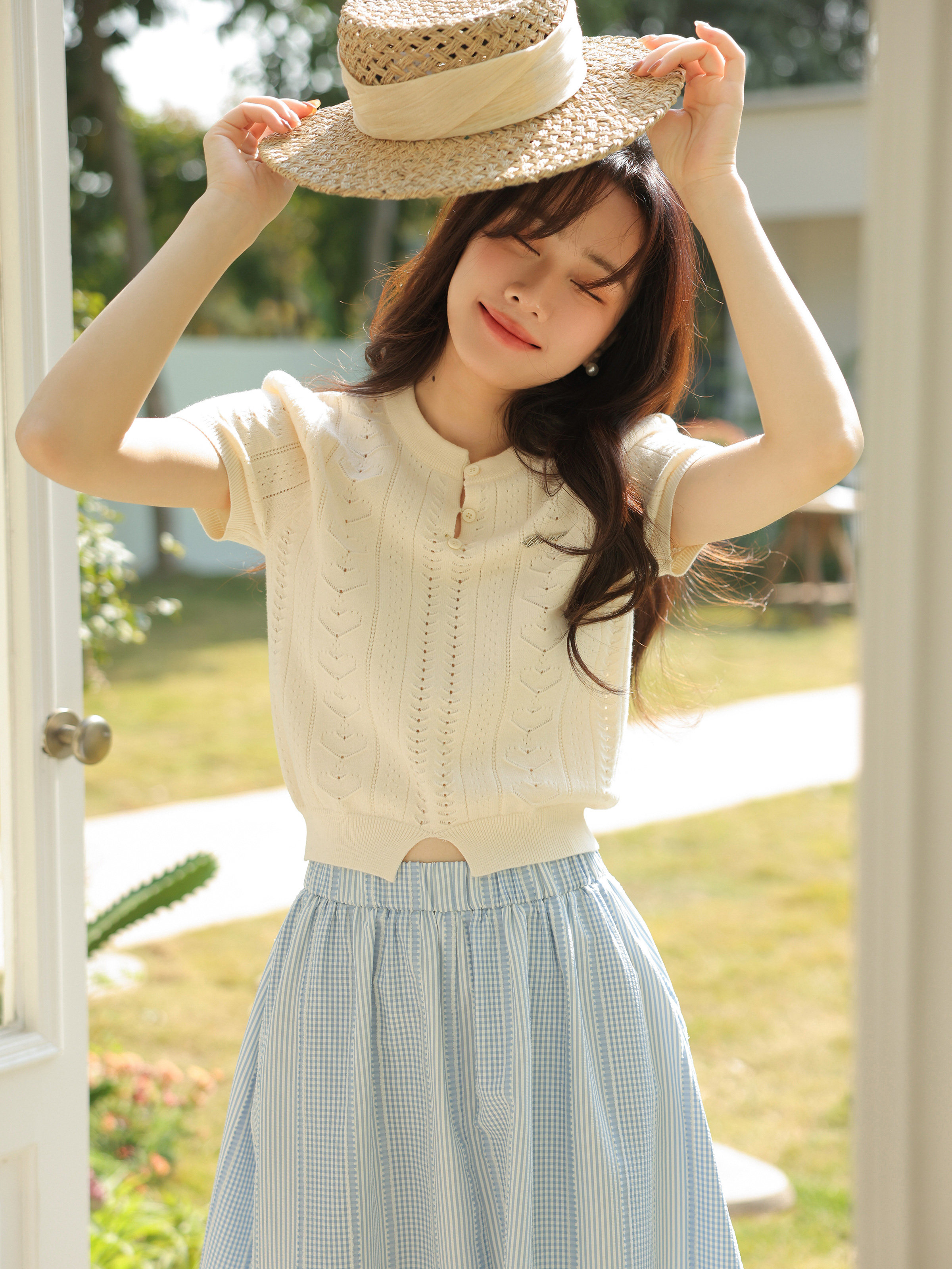 | Цвет: | Кремовый абрикосовый топ, Светло -голубая юбка для пледа, Юбка, подходит для подростков |
