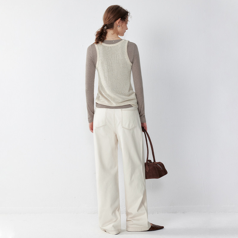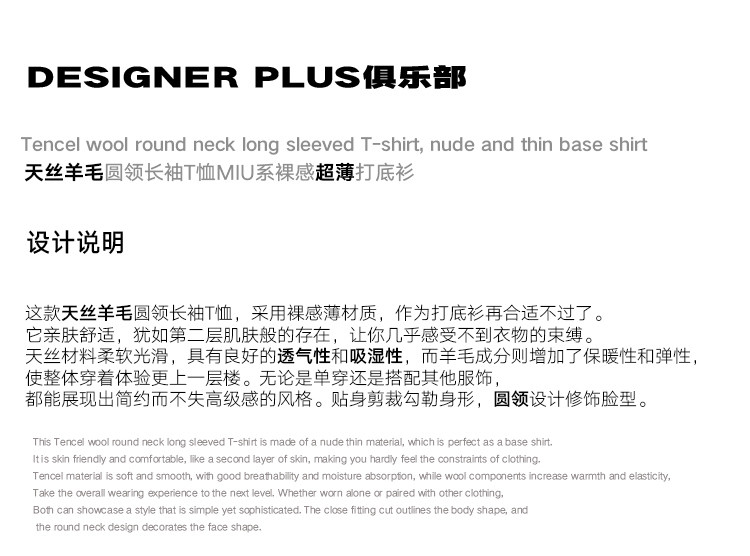 Дизайнер плюс теннисная шерстяная футболка с длинным рукавом 2025 весна и летняя головая ультра-тонкая базовая рубашка
