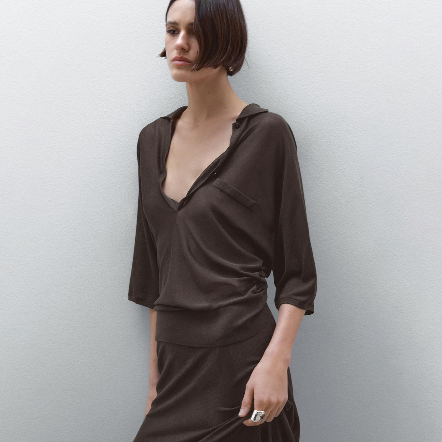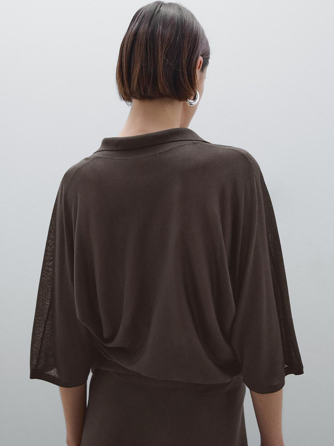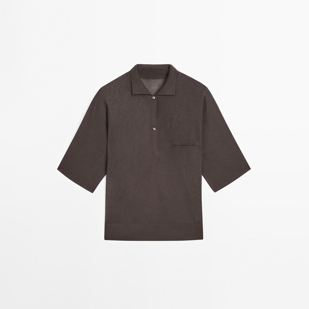 MD темпераментный стиль для поездок на работу, старинная коричневая элегантная тонкая трикотажная рубашка-поло из чистого хлопка с короткими рукавами для женщин 05761712717