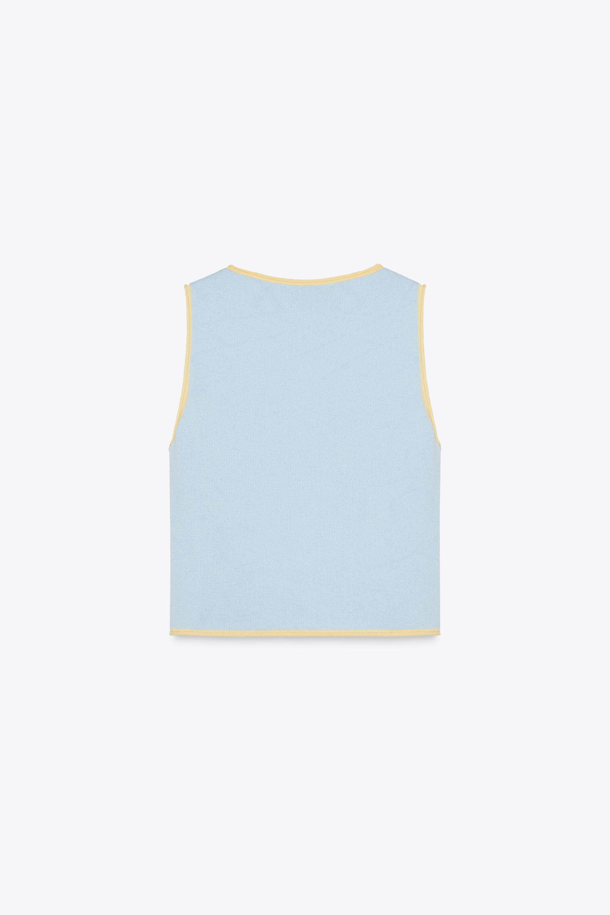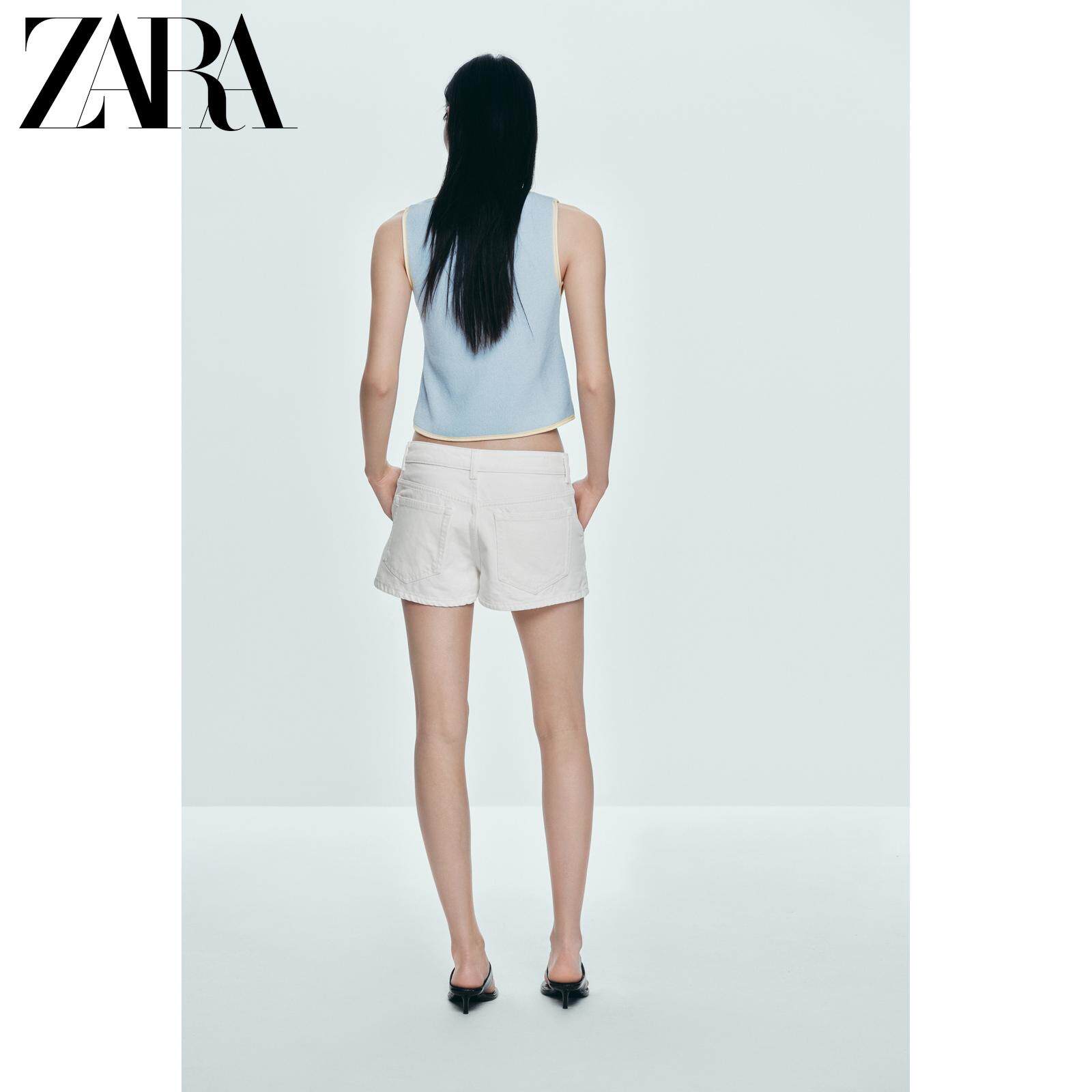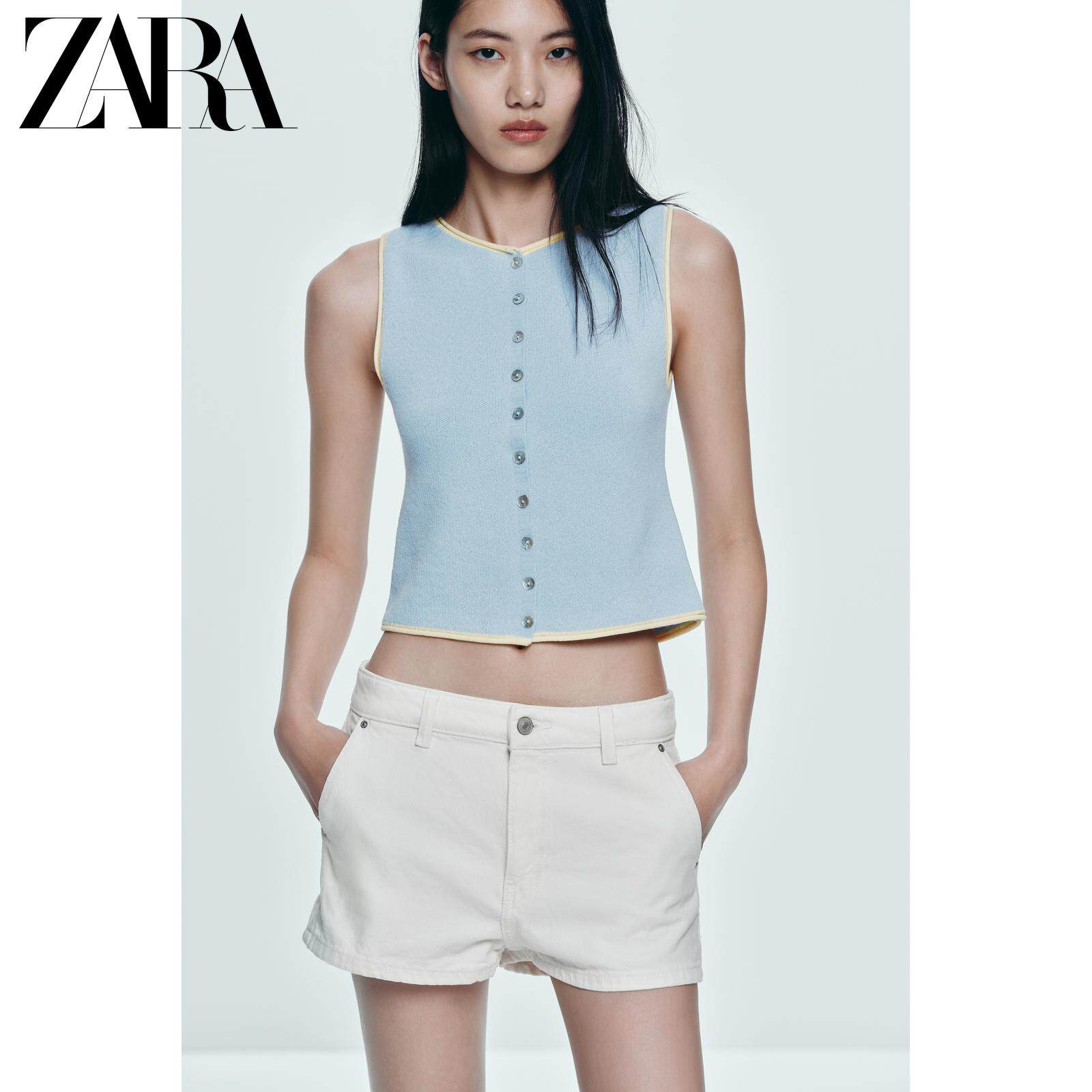 ZARA Сезонная женская одежда со сращенной отделкой и круглым вырезом без рукавов, вязаный топ 5802030 400