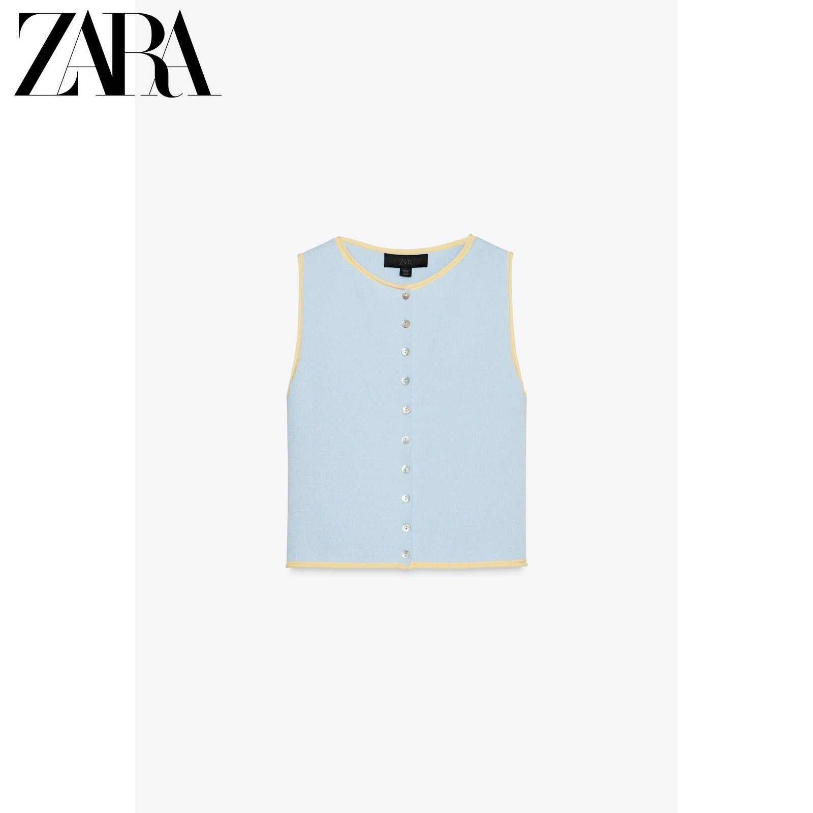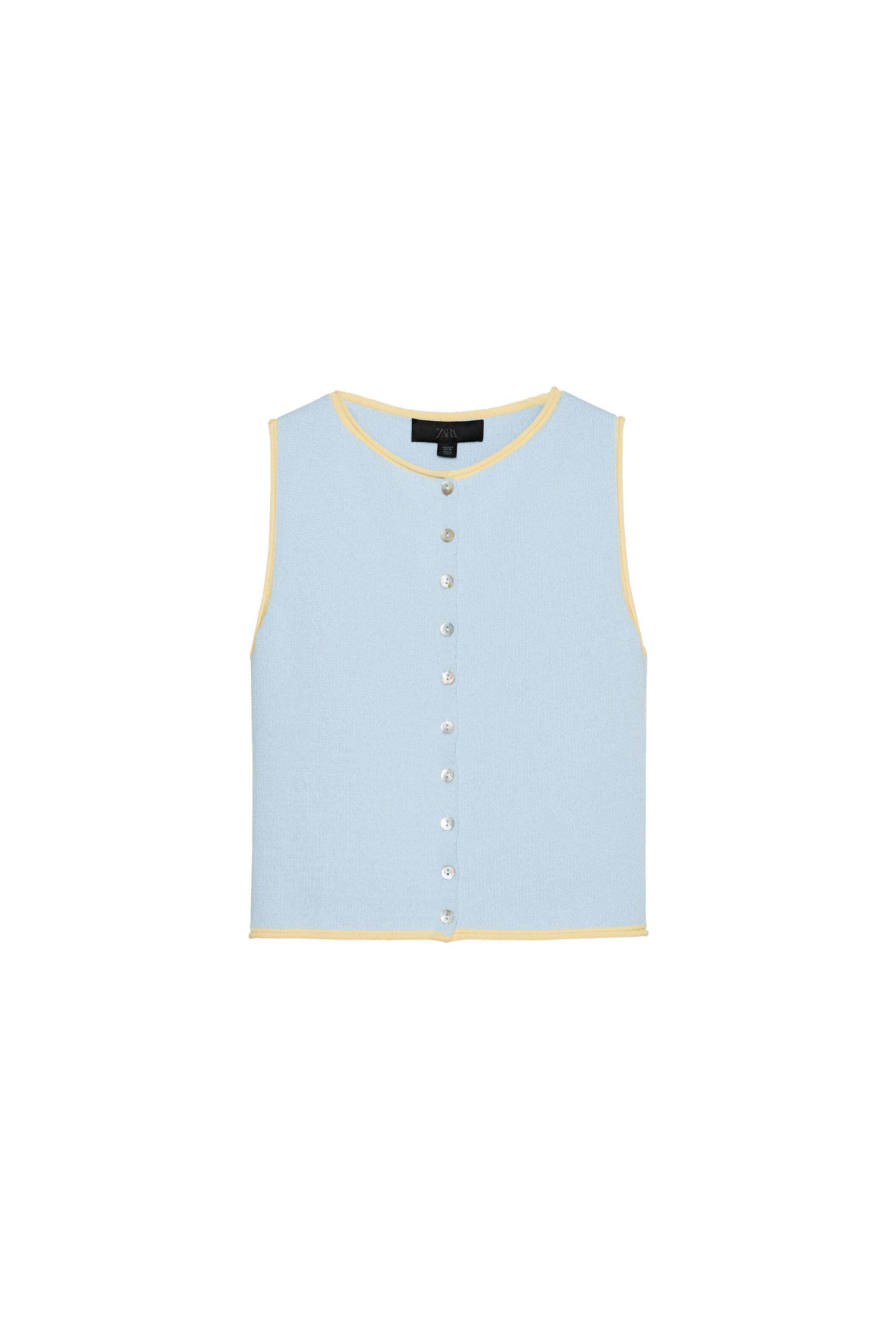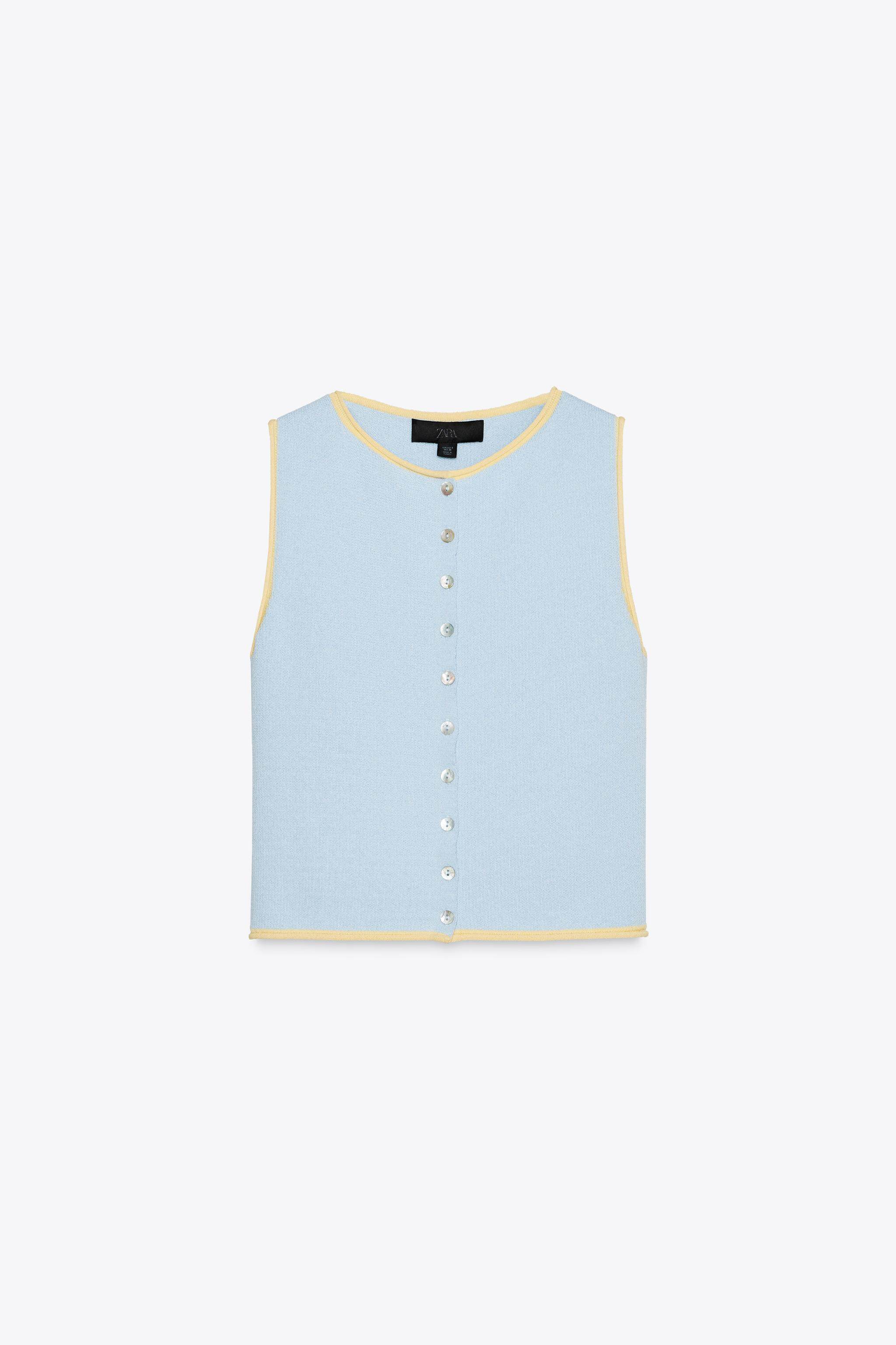 ZARA Сезонная женская одежда со сращенной отделкой и круглым вырезом без рукавов, вязаный топ 5802030 400