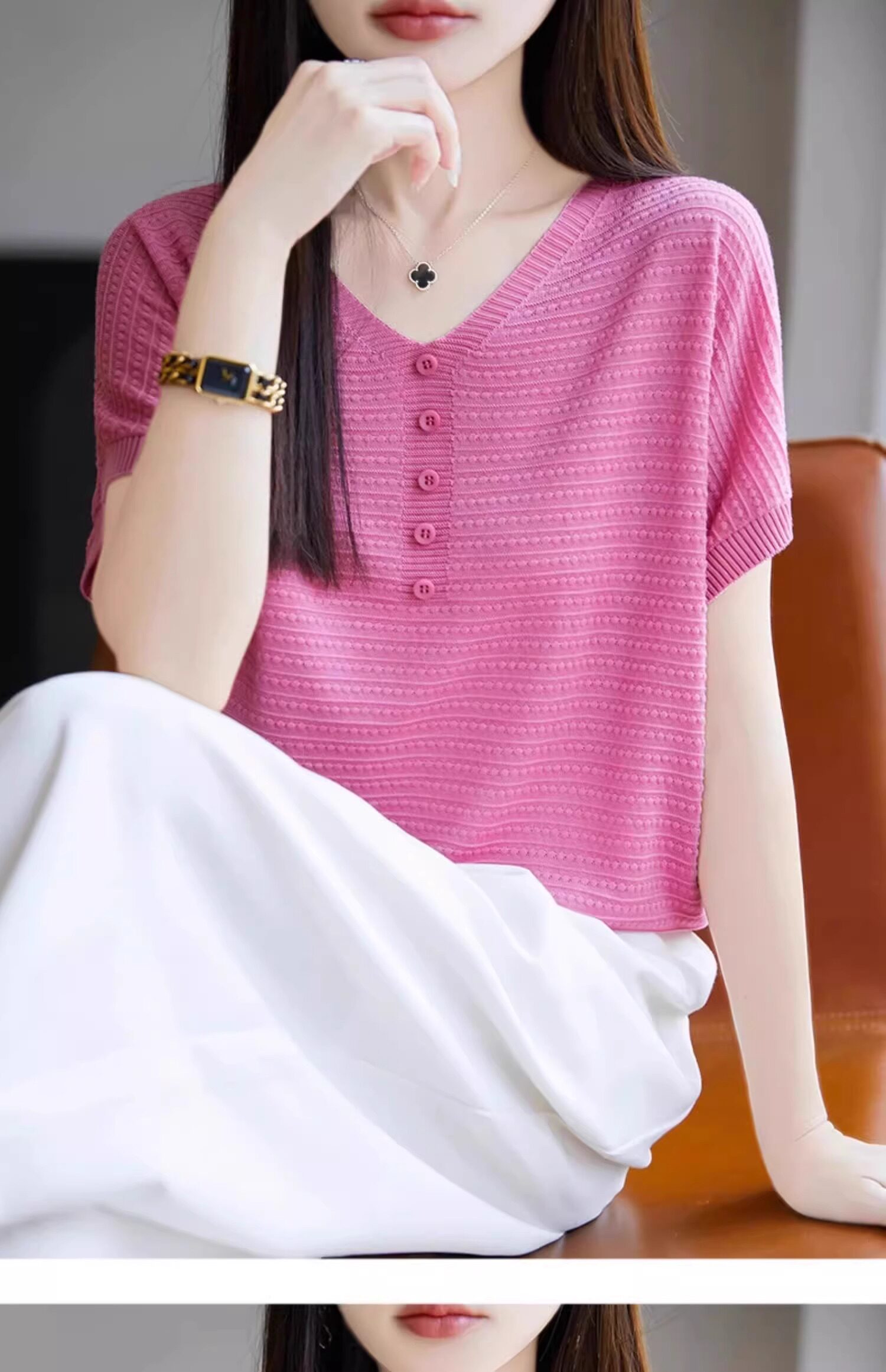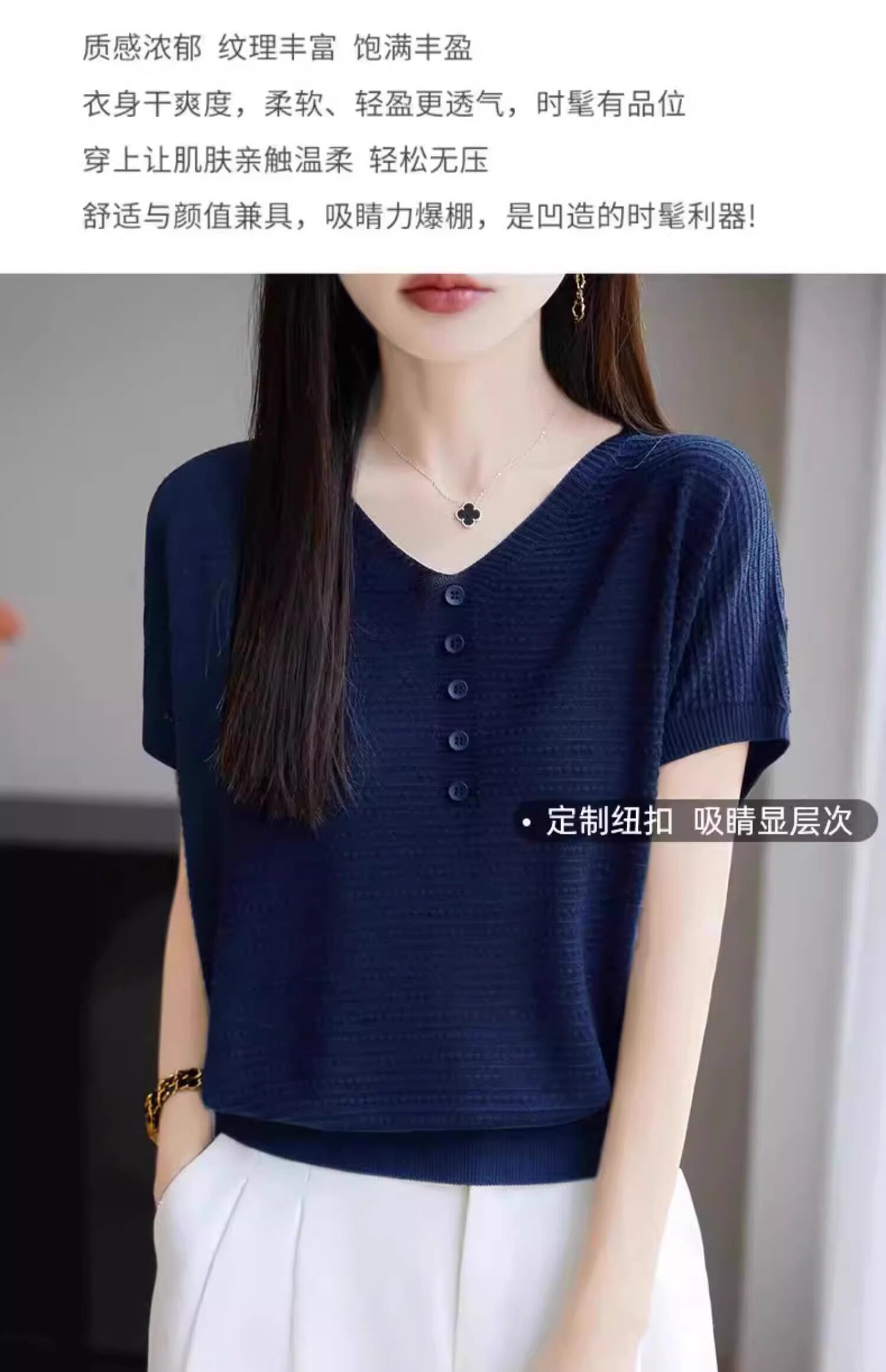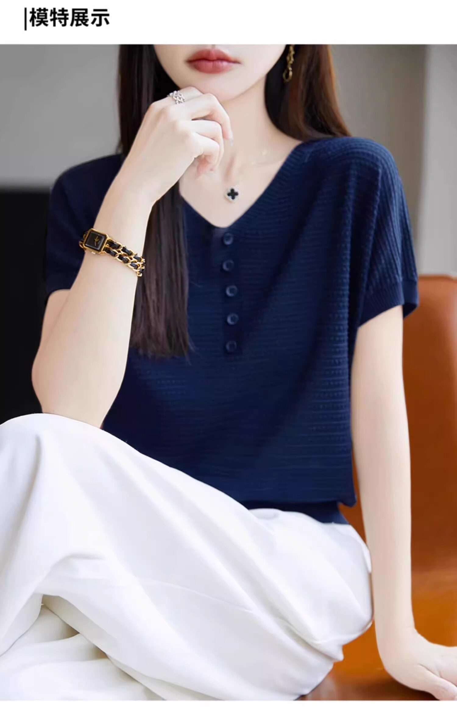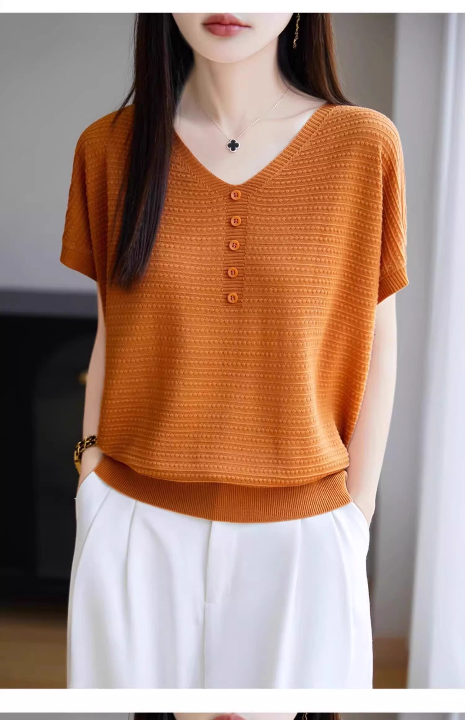 Трикотажная летняя футболка с коротким рукавом, французский стиль, V-образный вырез, свободный крой