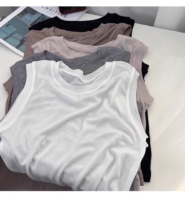 Легкая и тонкая мягкая майка топ, кремовое белье для повседневной носки, футболка с круглым воротником