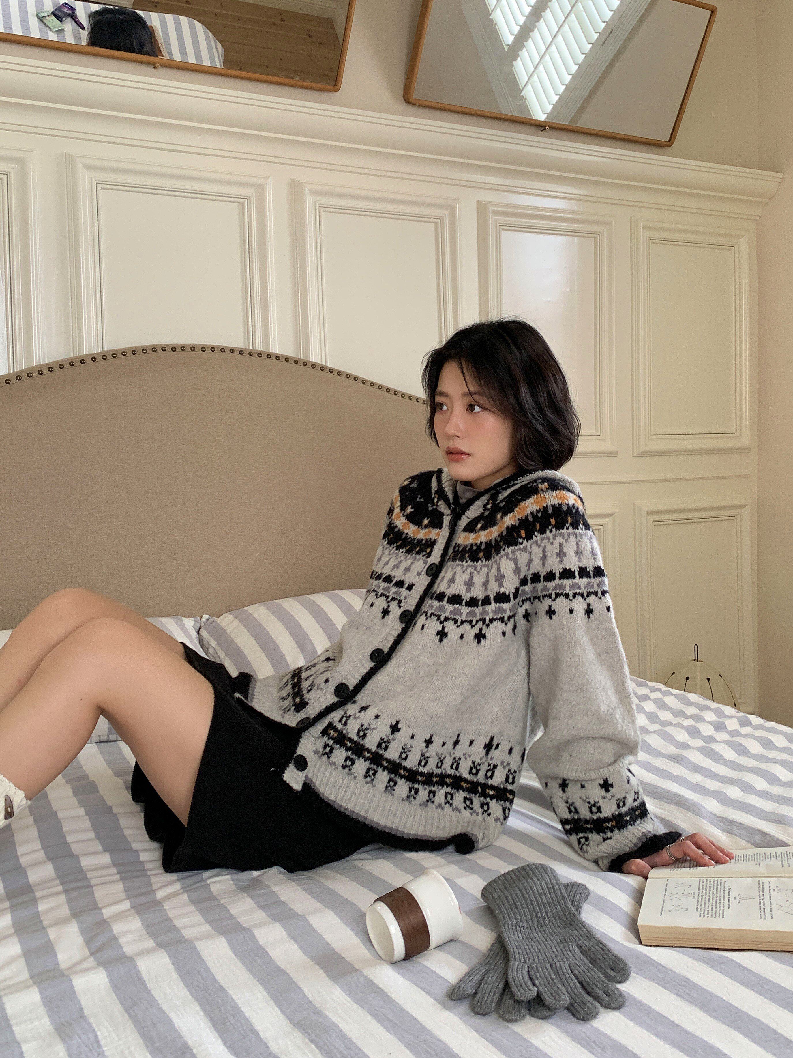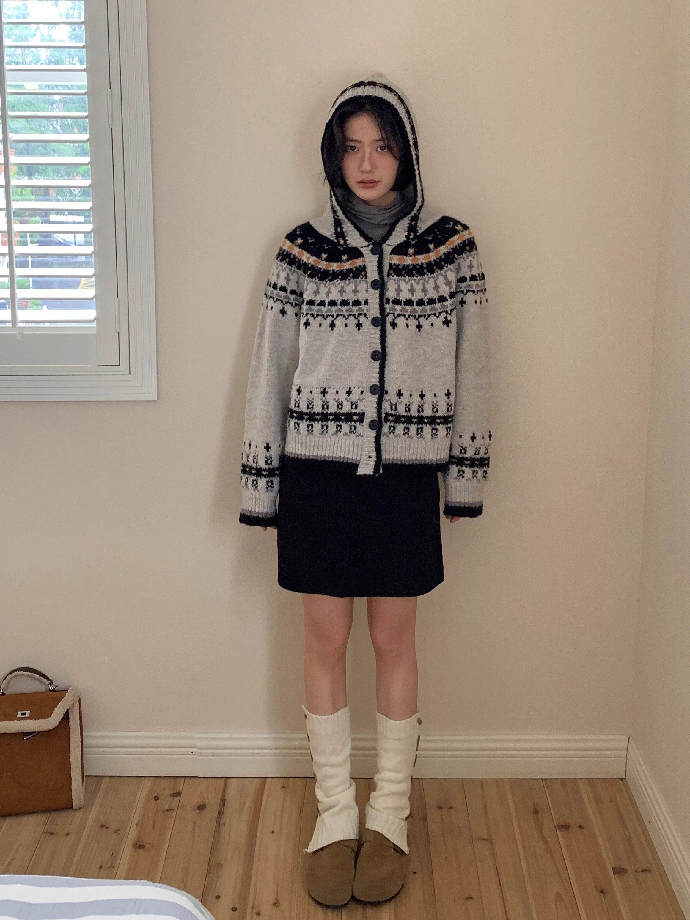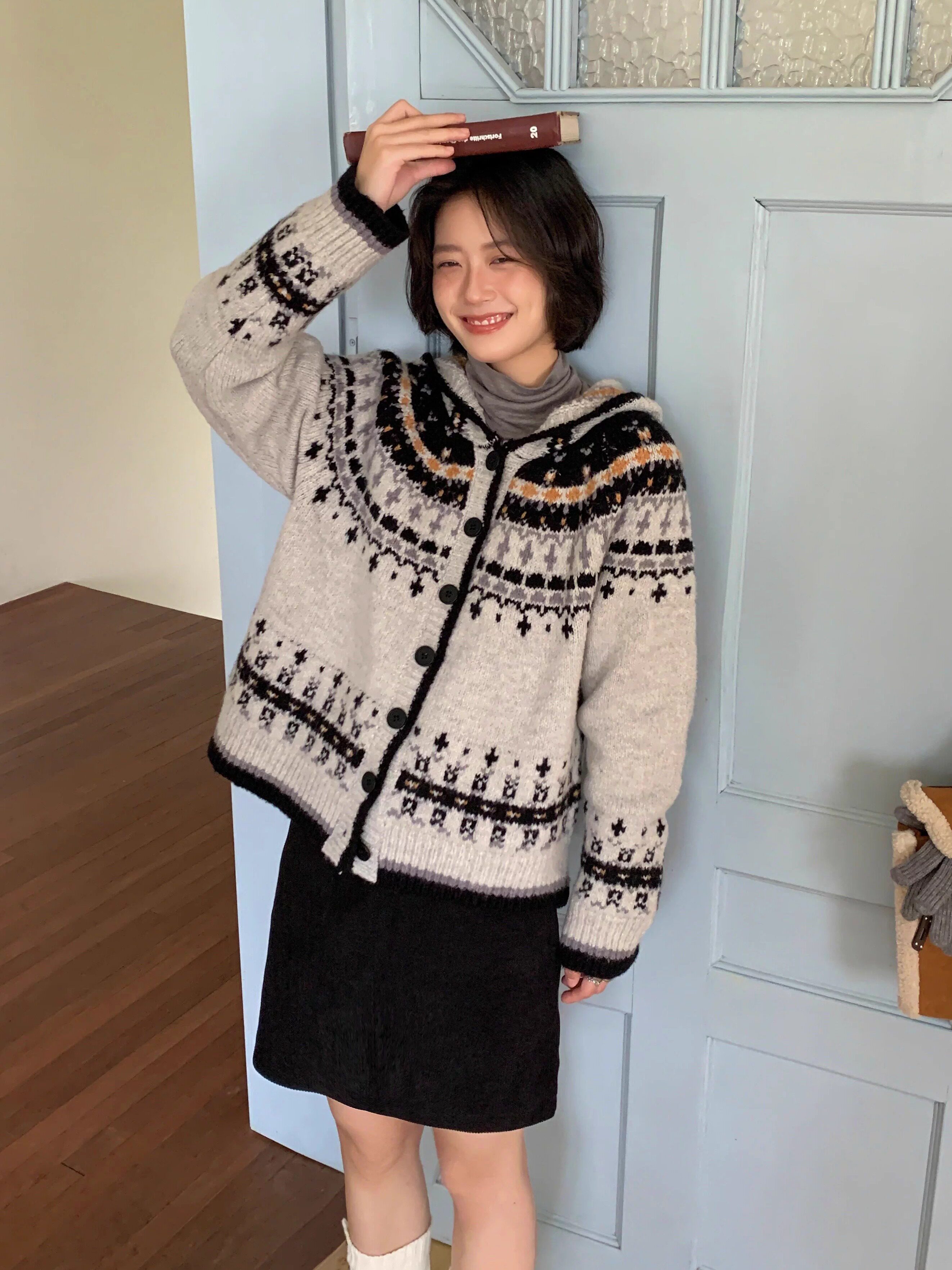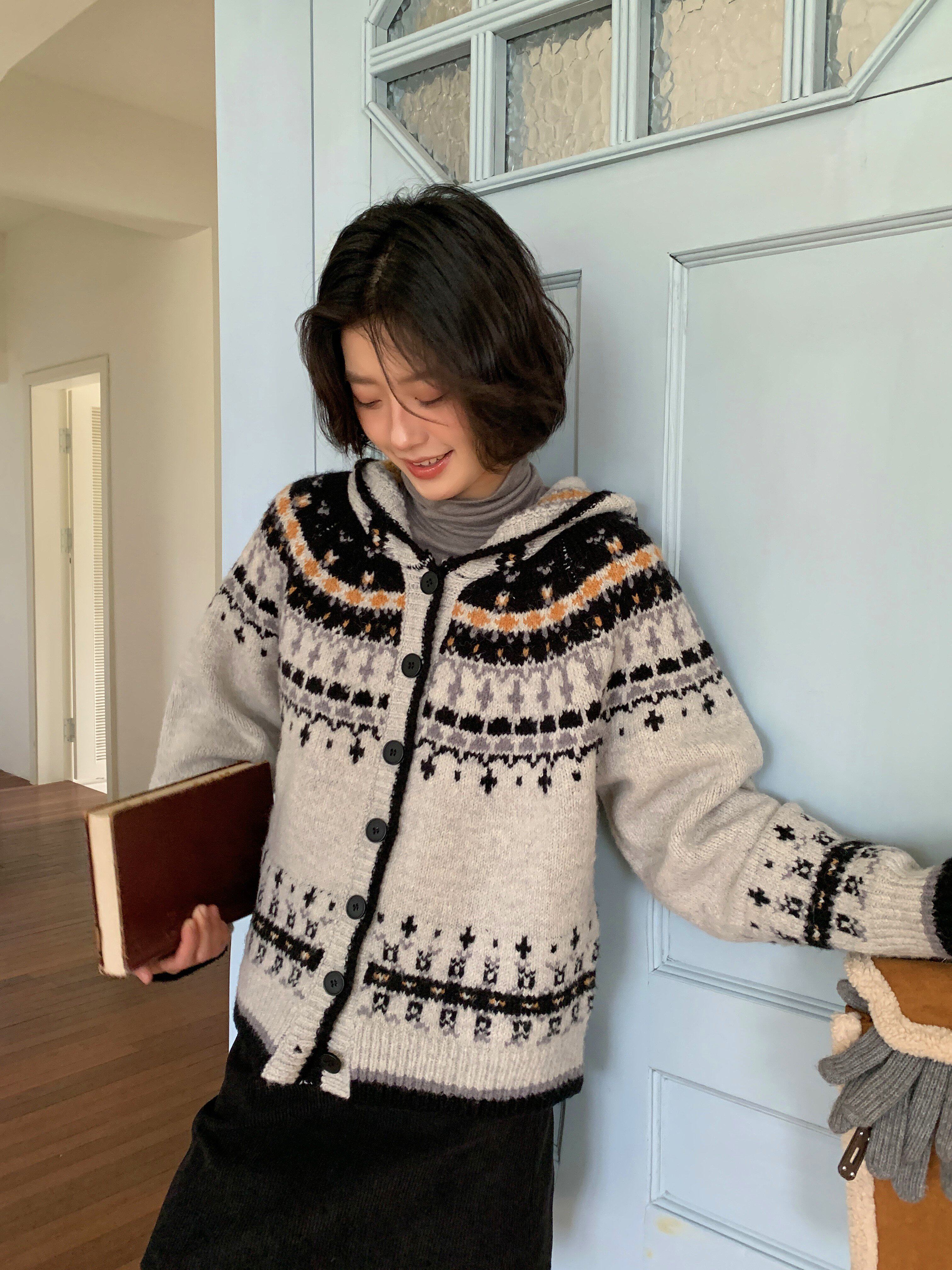 Дизайнерский цветной демисезонный свитер с капюшоном, милый кардиган, тренд сезона