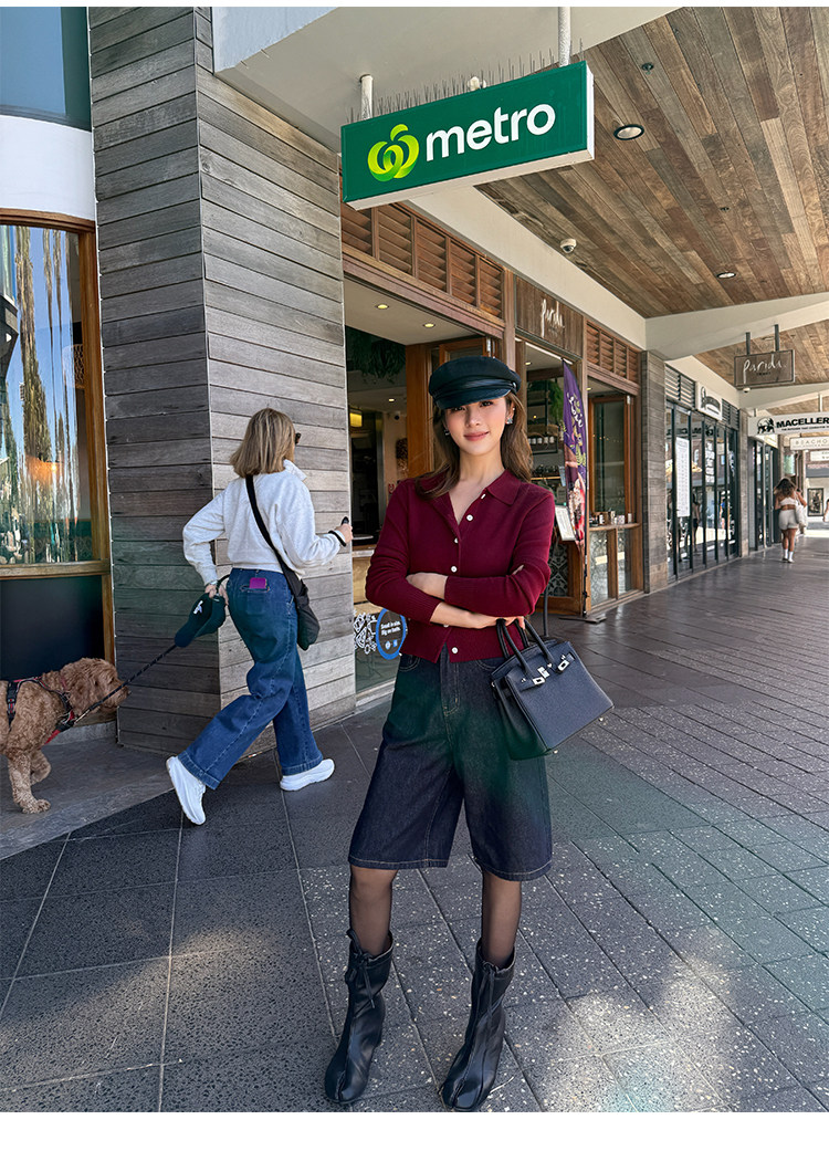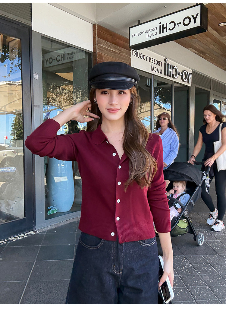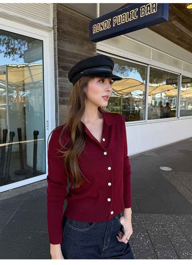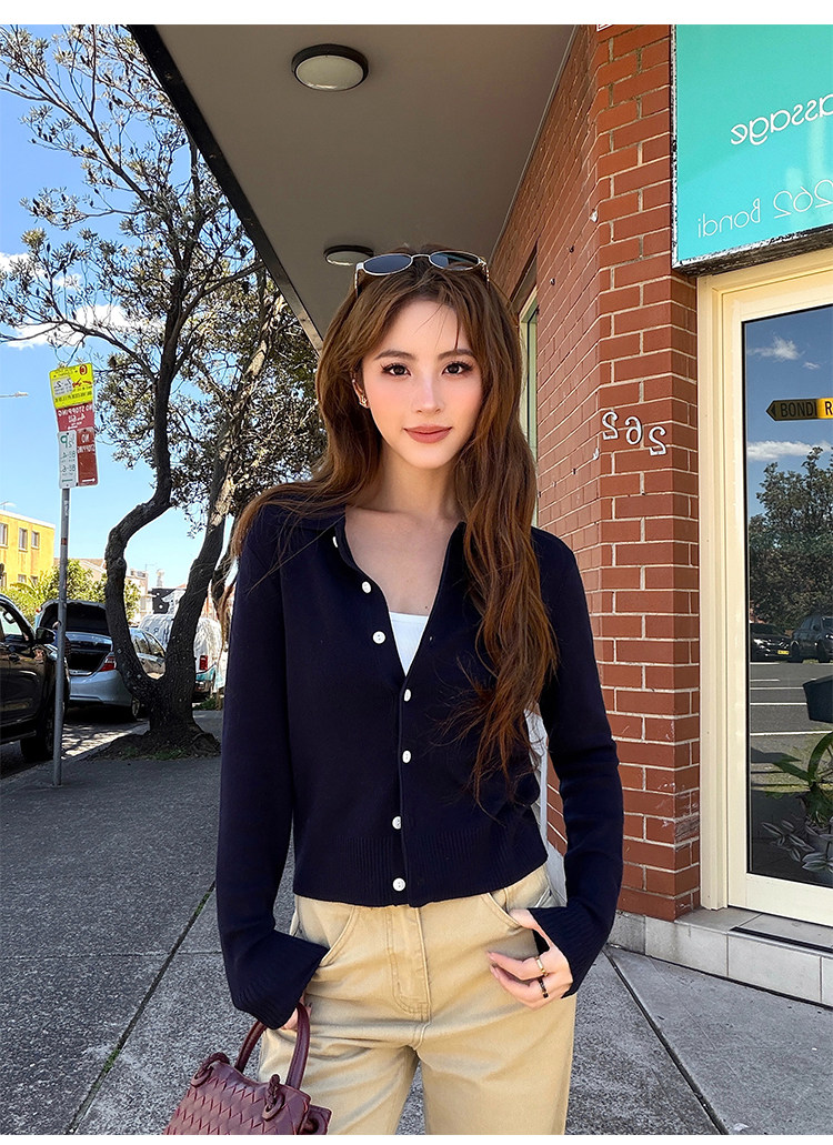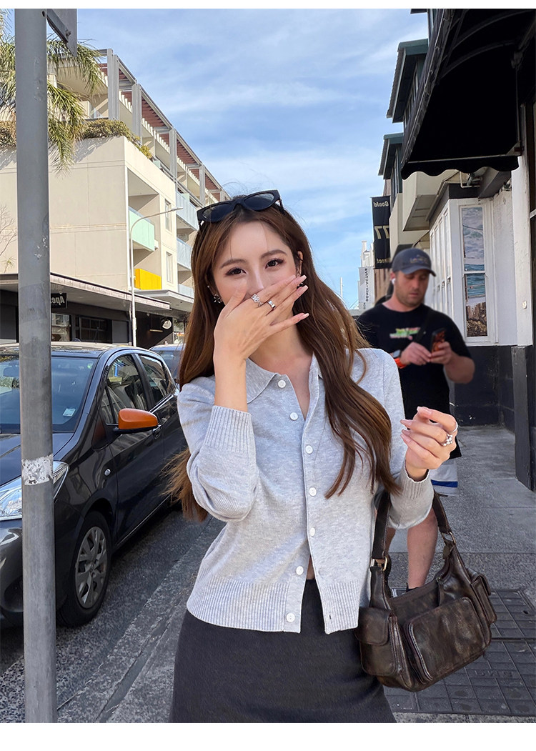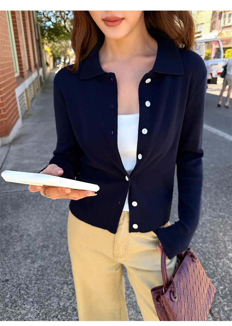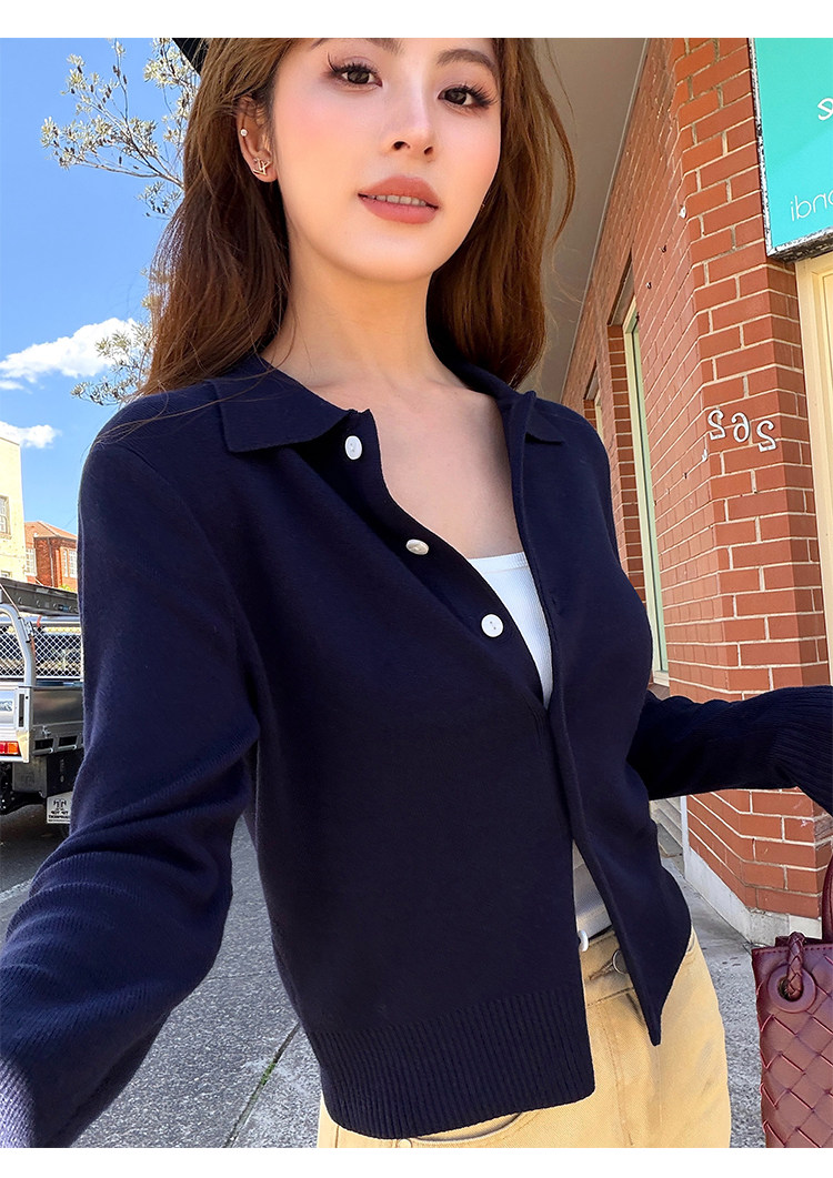 Трикотажный классический кардиган, лонгслив, свободный крой, воротник поло