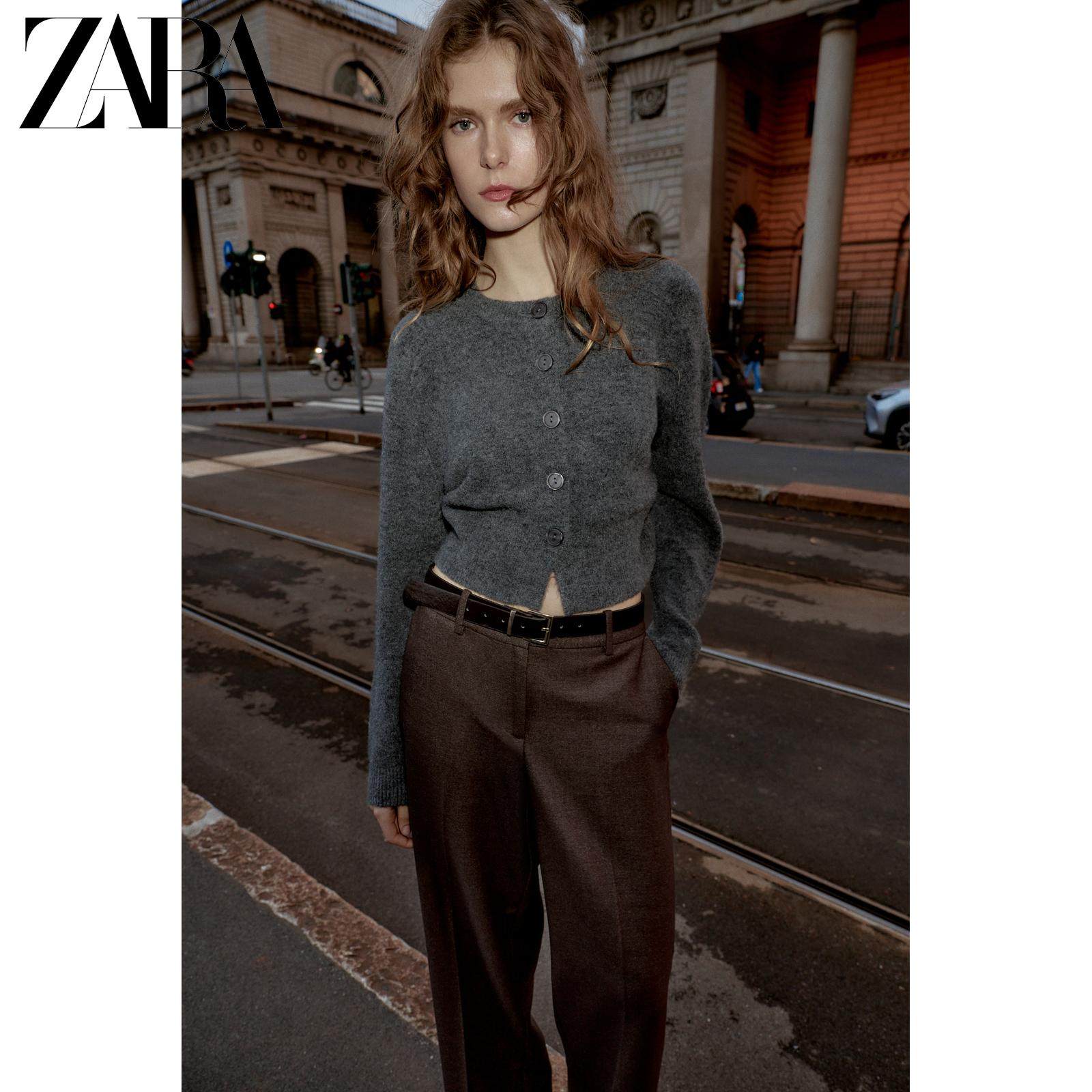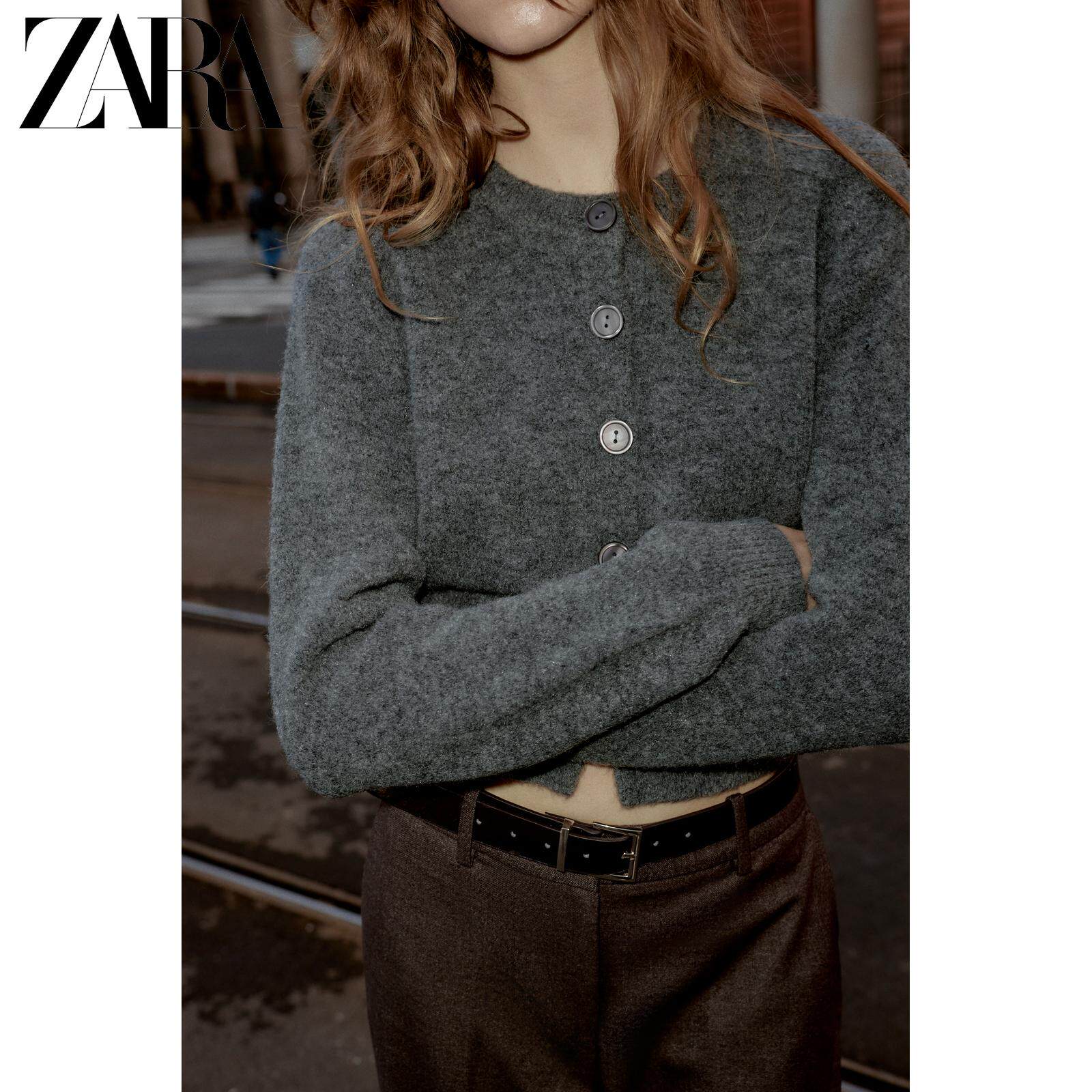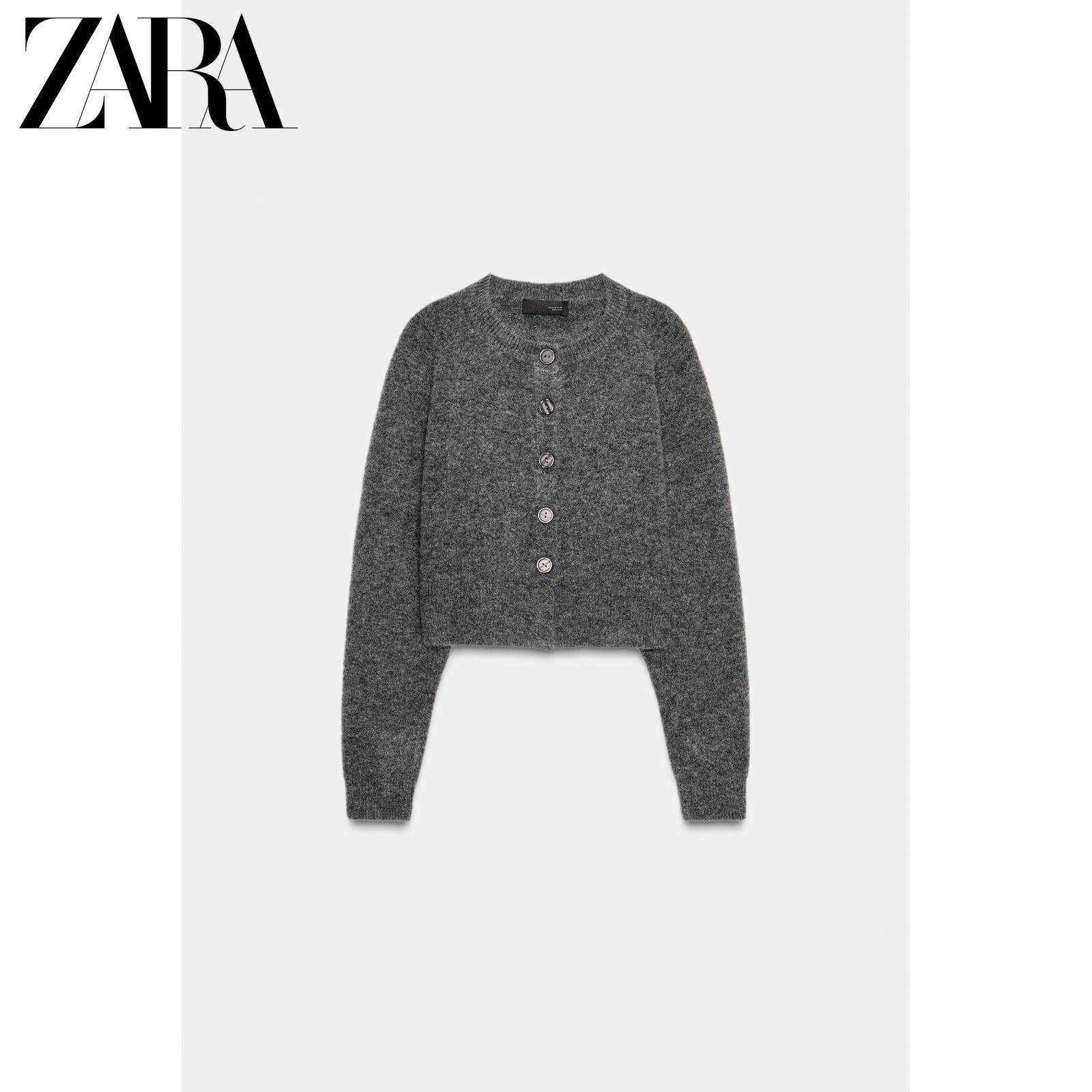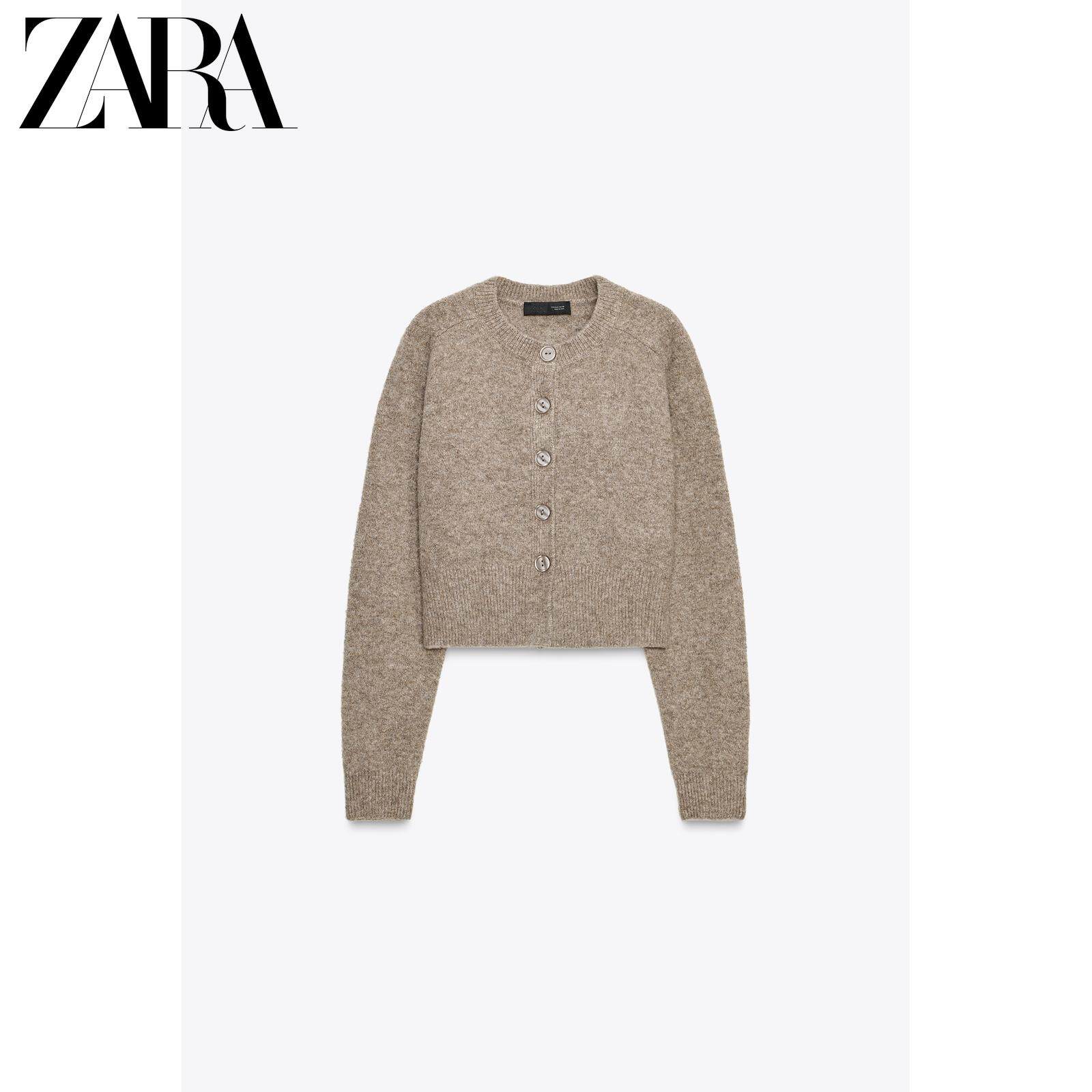 ZARA Зимняя новинка 2025, женская мягкая вязаная куртка с круглым вырезом и длинными рукавами 5536149 809