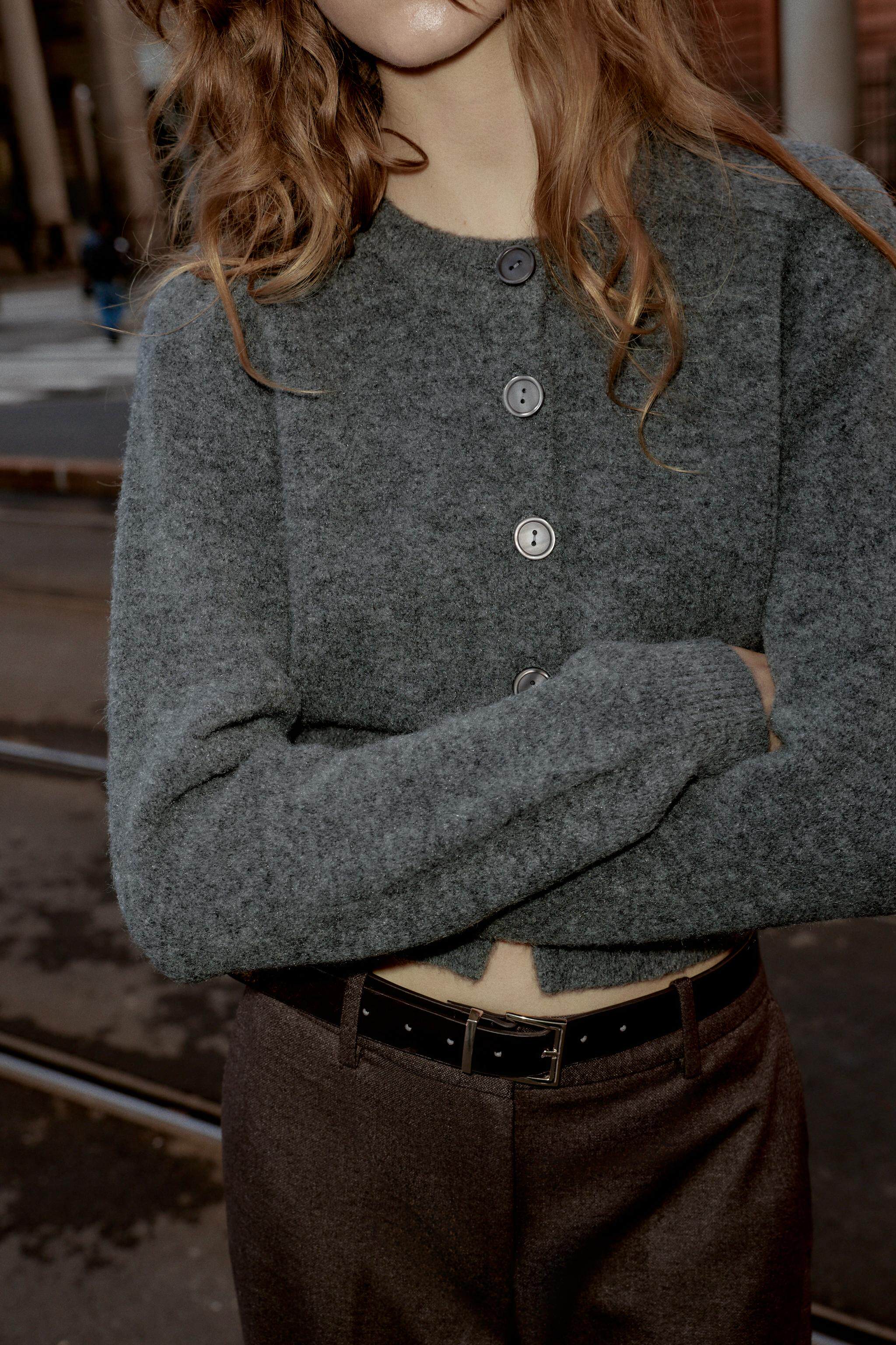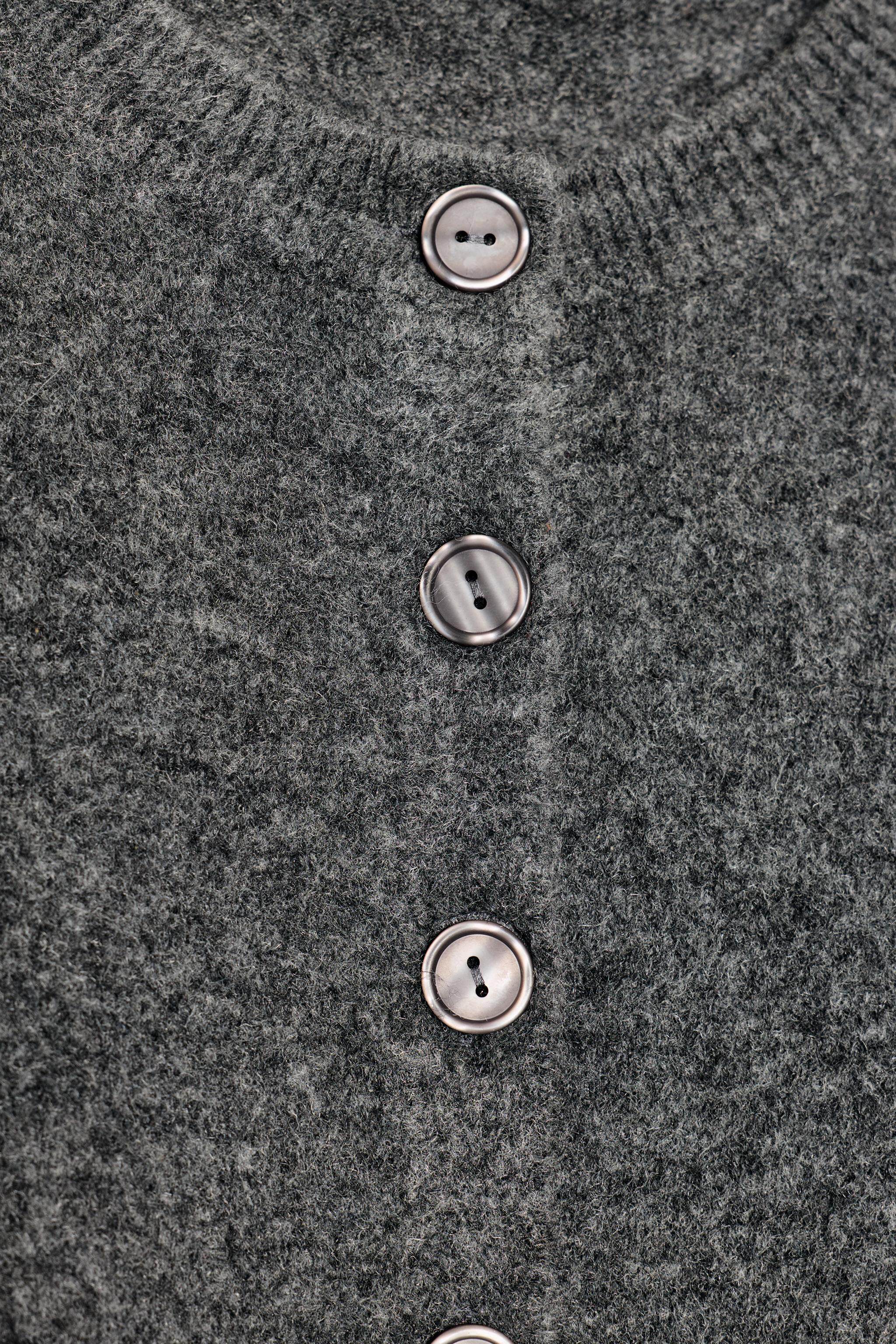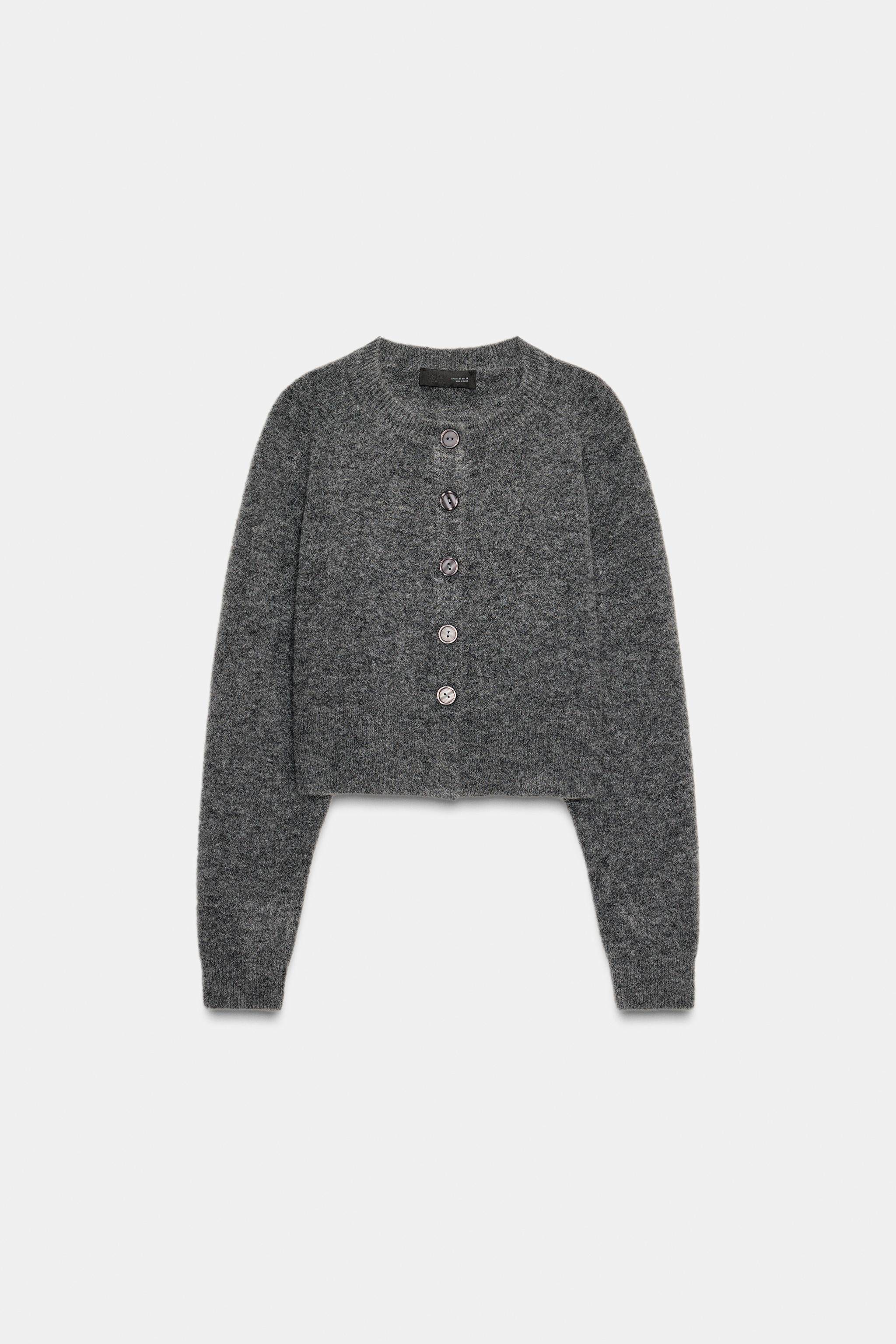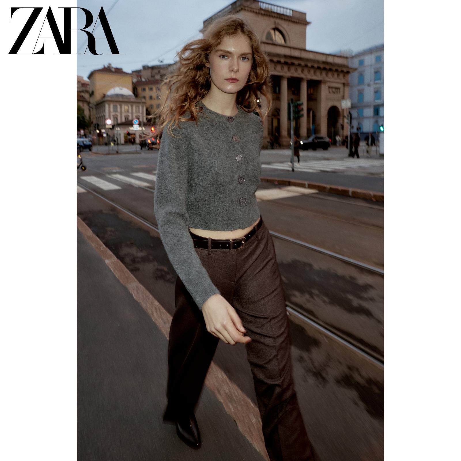 ZARA Зимняя новинка 2025, женская мягкая вязаная куртка с круглым вырезом и длинными рукавами 5536149 809