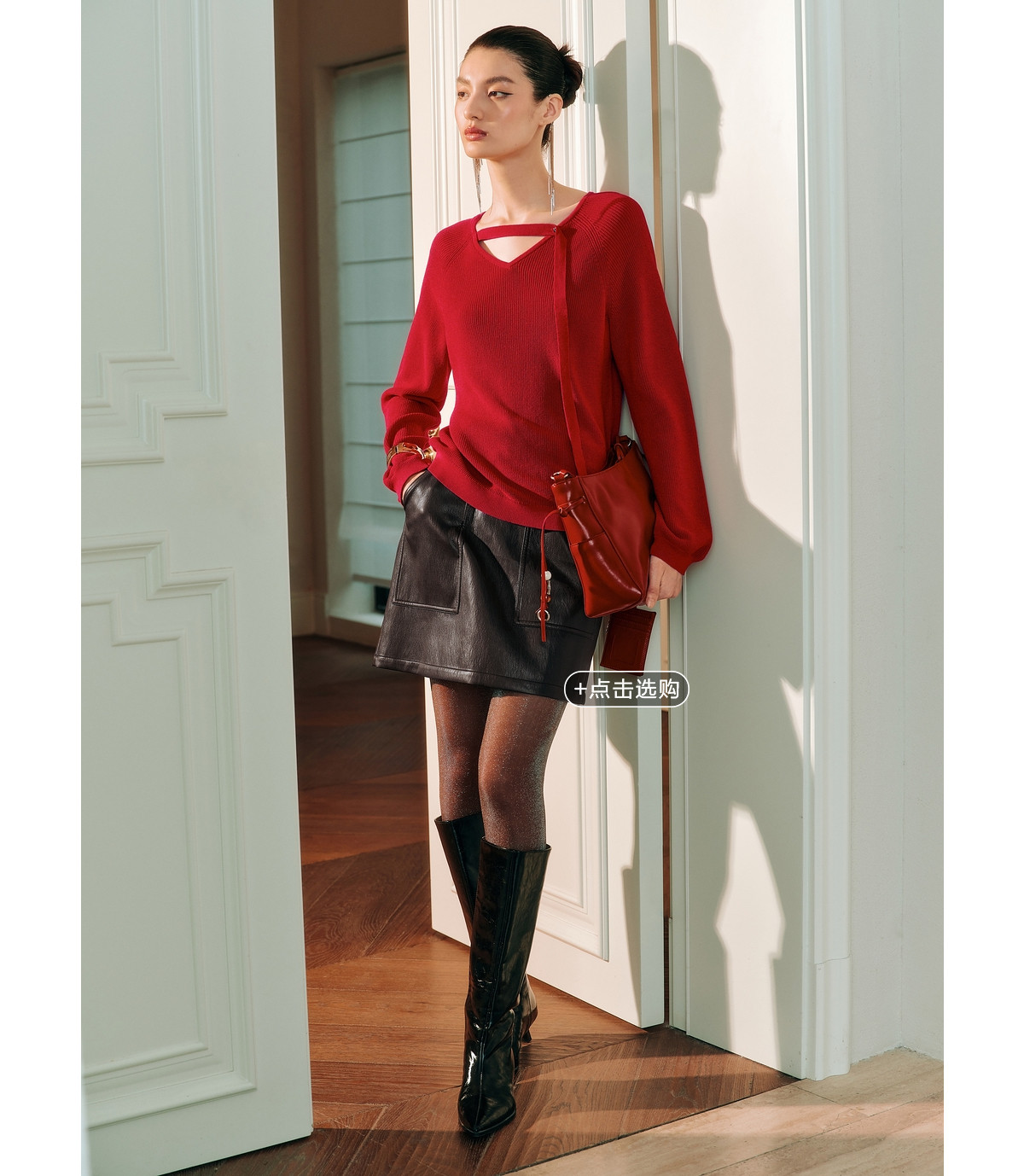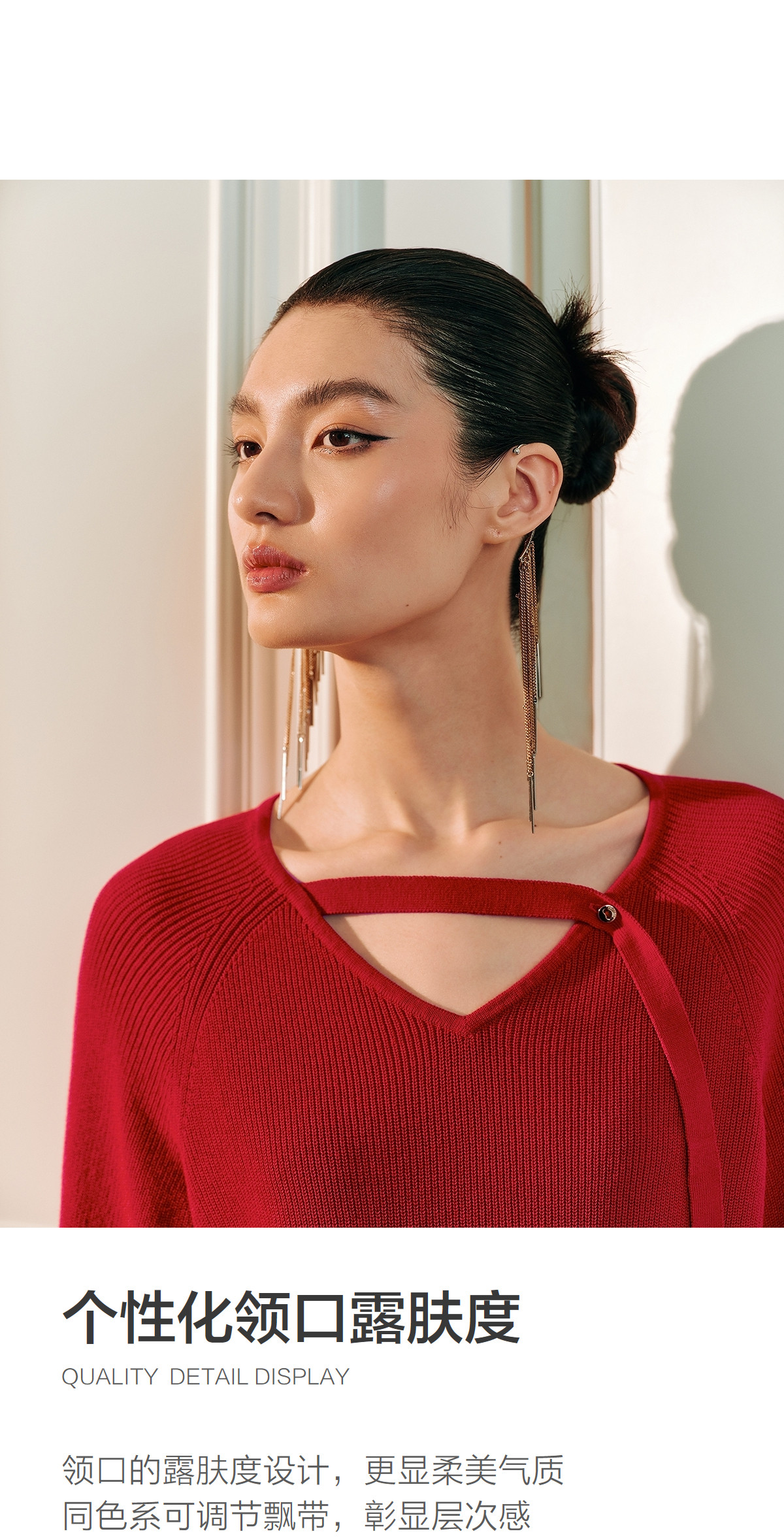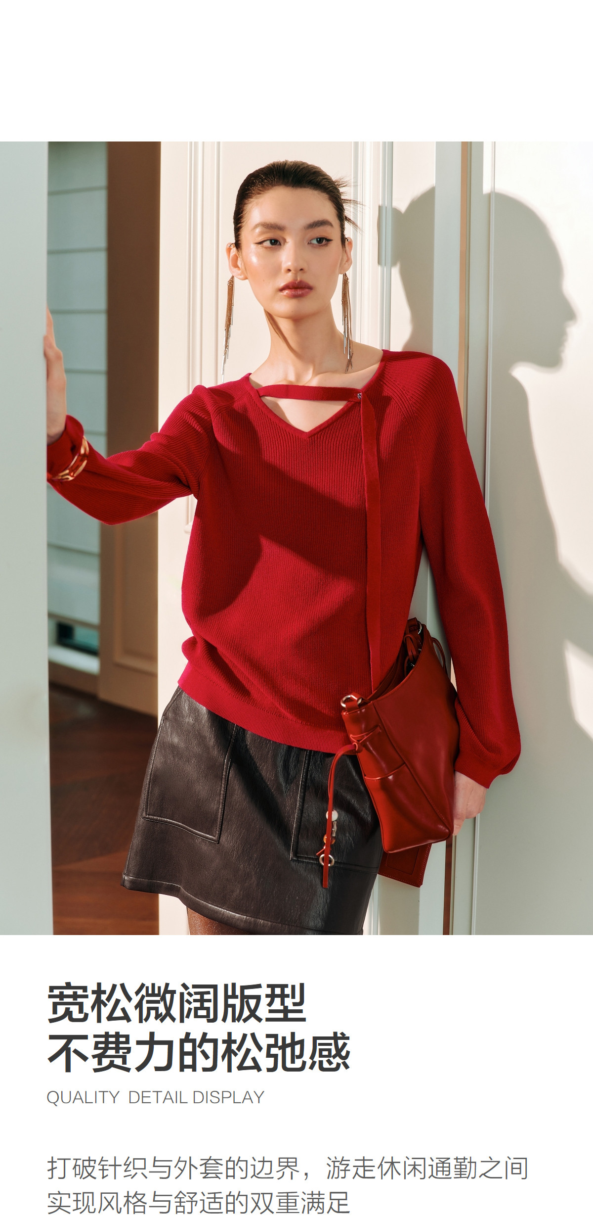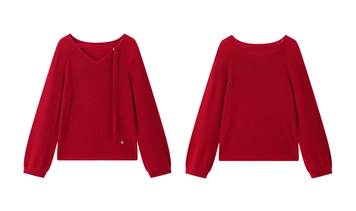 Красный трикотажный весенний модный свитер, V-образный вырез, тренд сезона, оверсайз