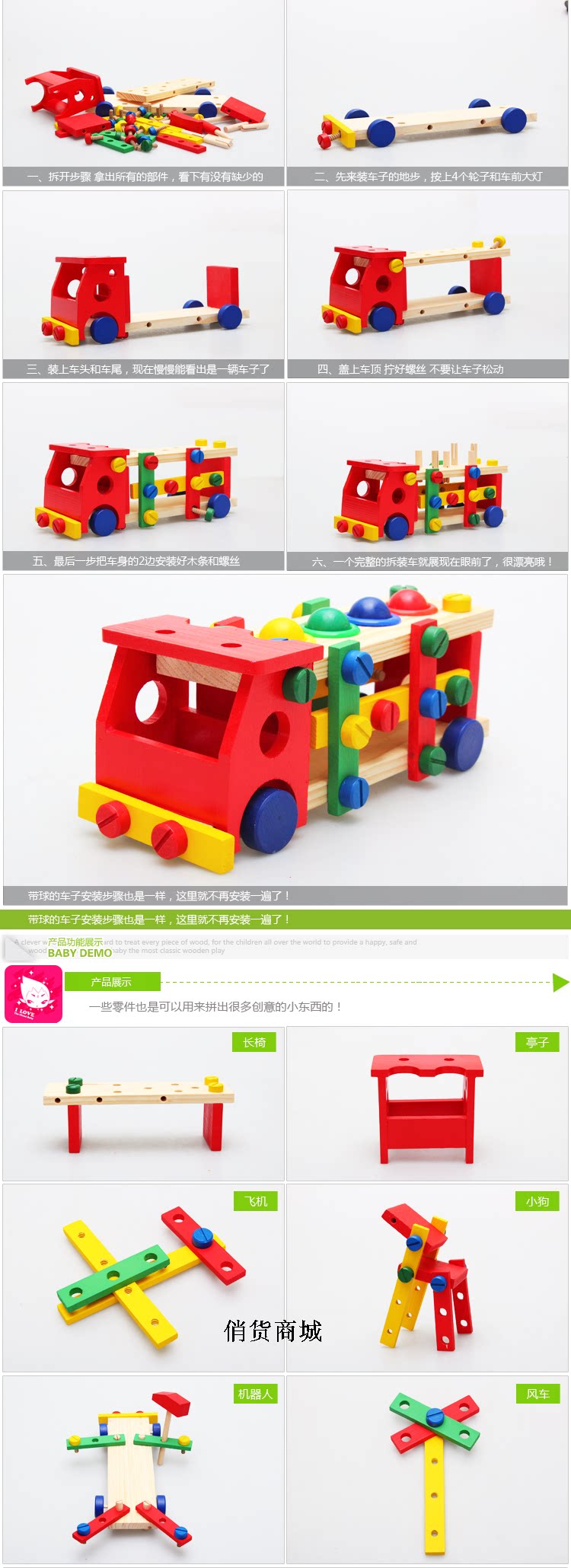Небольшой молоток может свалить, винтовой нож можно привинтить, а весь автомобиль можно удалить!Развивайте координацию руки ребенка и позвольте ребенку издавать свои эмоции так, как взрослые могут принять.Вдохновляя ребенка, чтобы переоценить его обратно в оригинальную форму!Вы также можете воспользоваться трехмерными способностями и воображением мышления. -О на способности работы, развитие силовой сущности воображения