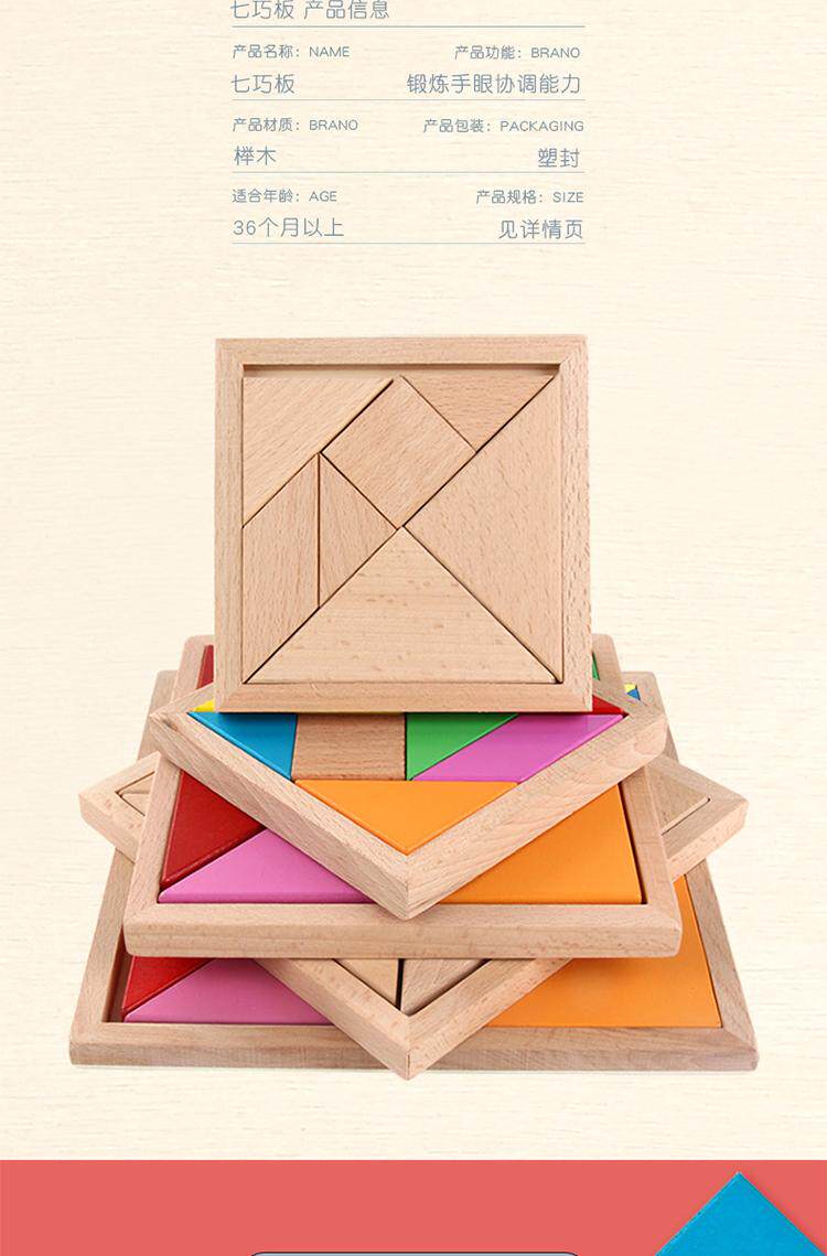 Деревянная интеллектуальная интеллектуальная игрушка, головоломка для детского сада, увеличенная толщина, оригинальный цвет