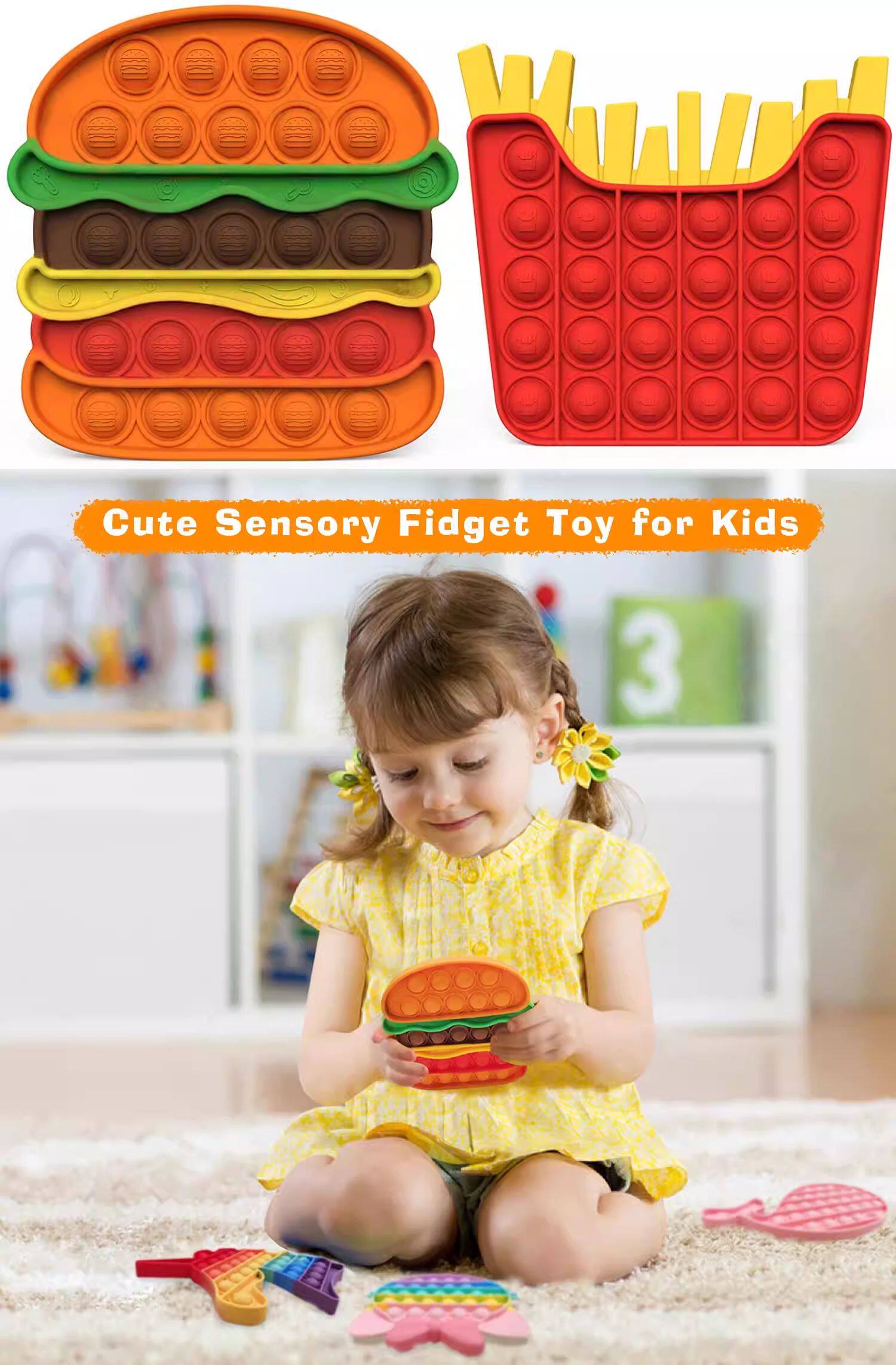 2PC Burger Fresh Fries Set Set Hamburger Fries Pop It Fidget Toy Toys