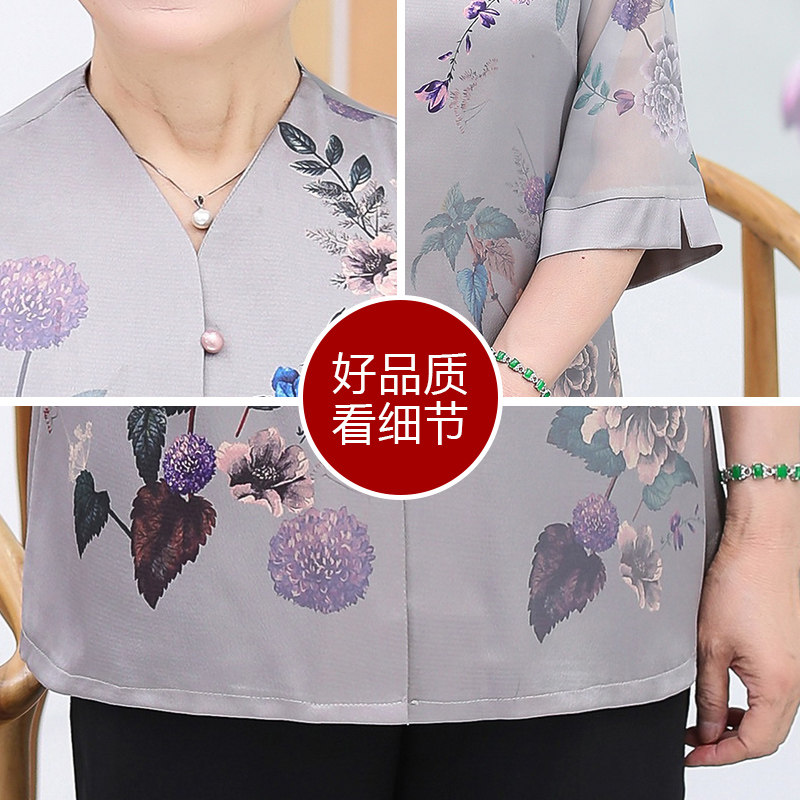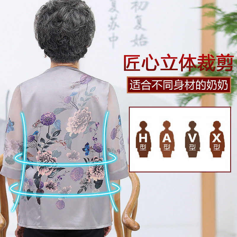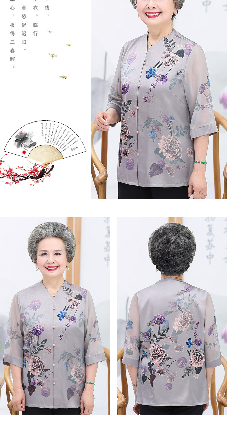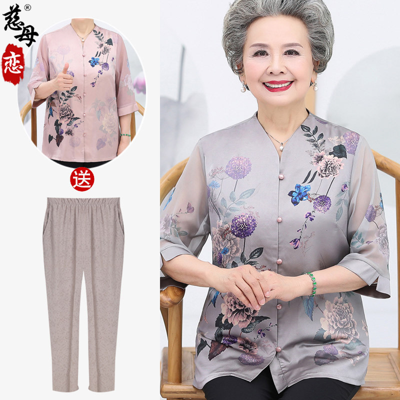 Летняя одежда для пожилых людей, весенняя рубашка, нарукавники, комплект, для среднего возраста, 60-70 лет, короткий рукав