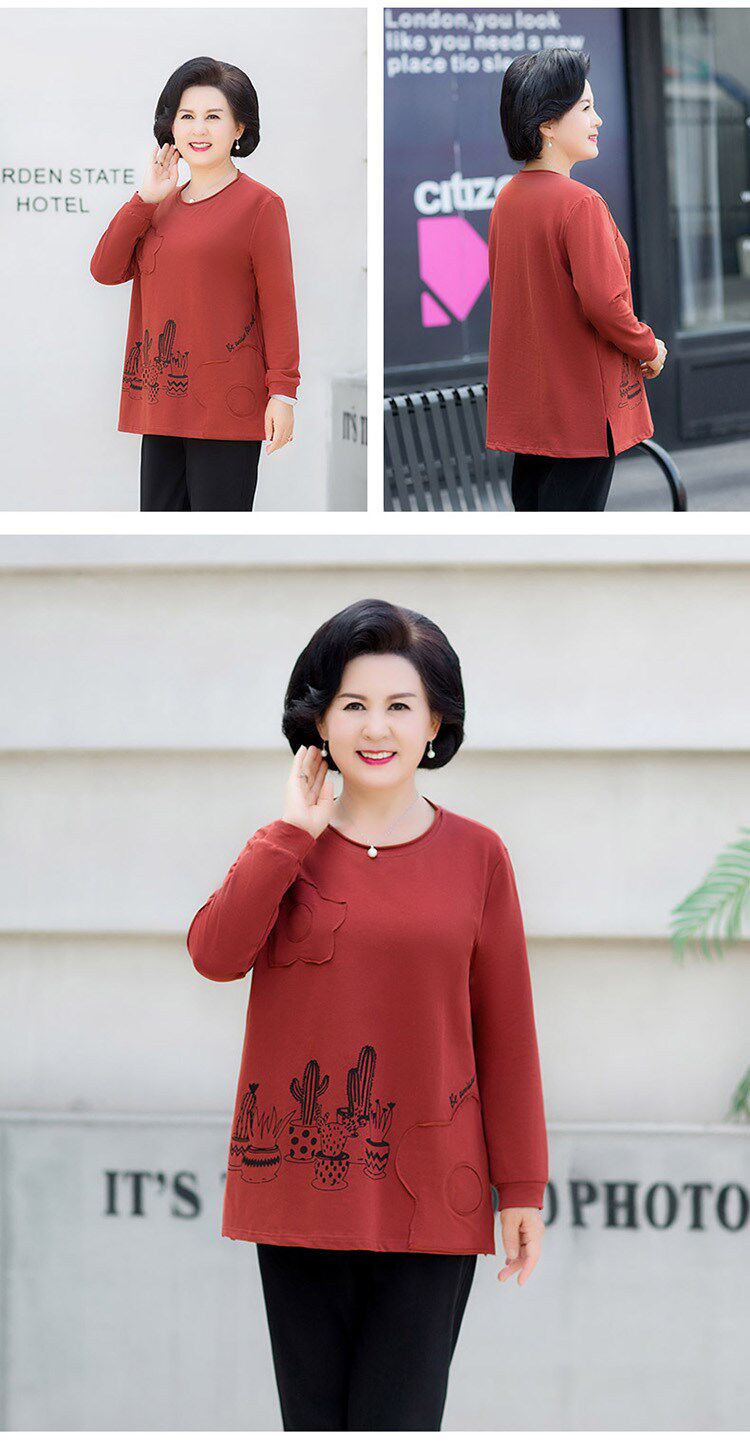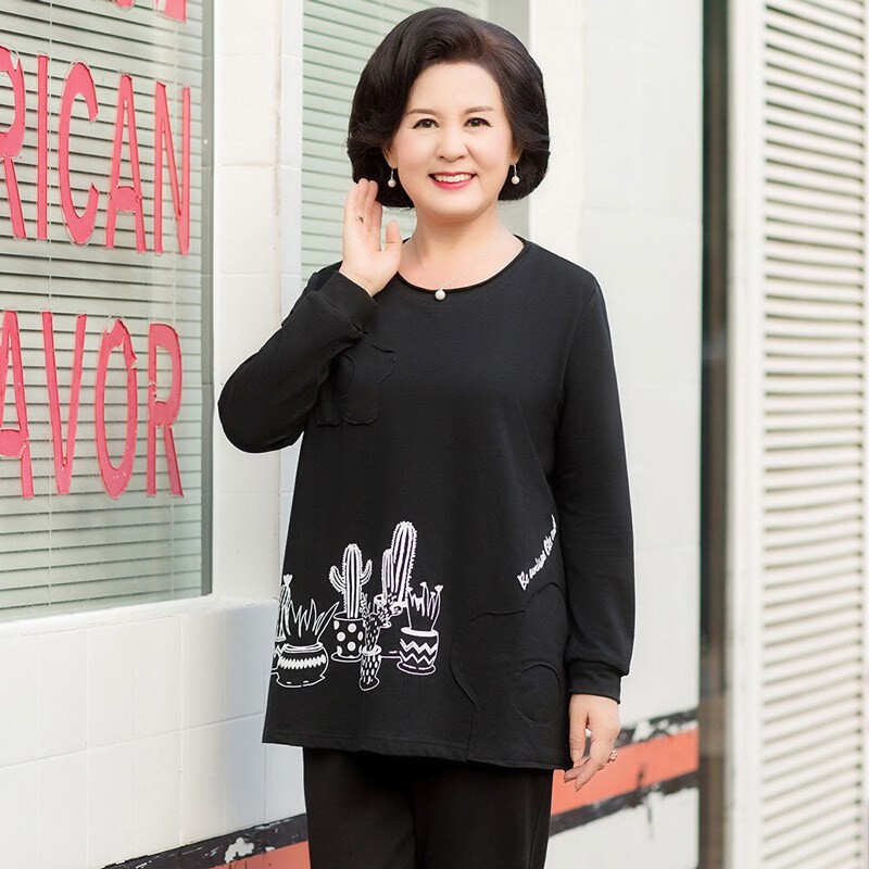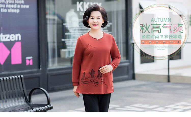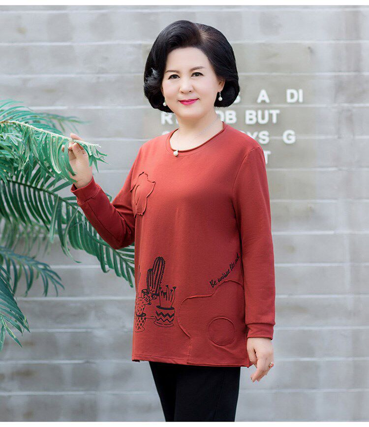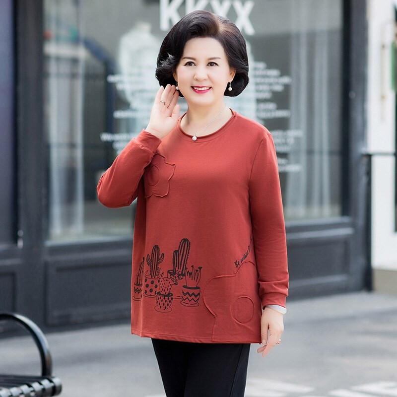 Осенний лонгслив, толстовка, осенняя футболка, для среднего возраста, большой размер, оверсайз