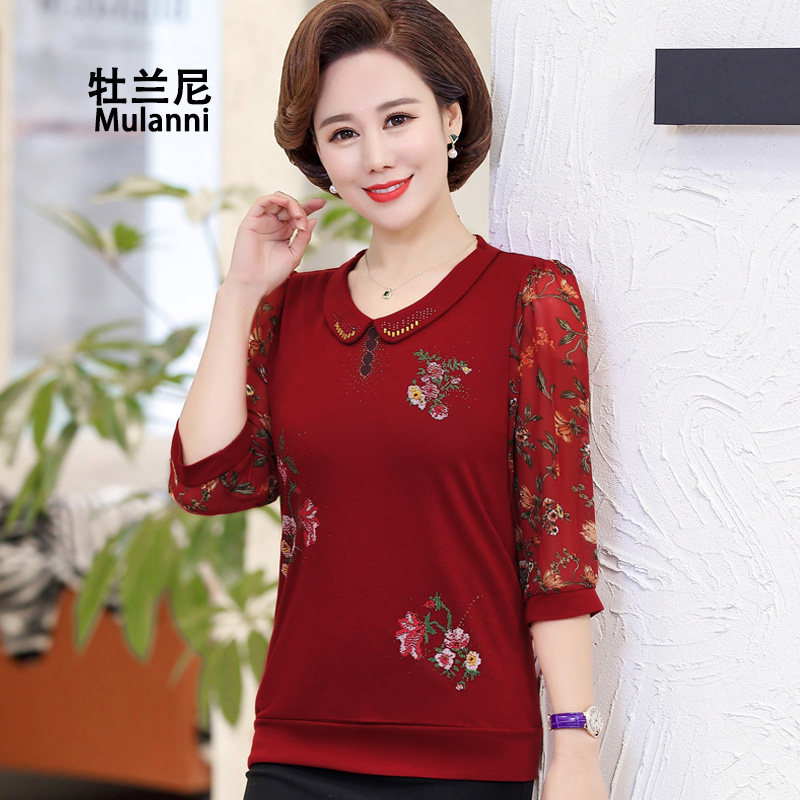 Летняя одежда для матери, весенняя шифоновая базовая приятная телу футболка с коротким рукавом, оверсайз, для среднего возраста