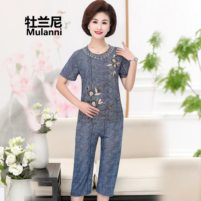 Шелковая летняя одежда для матери, летний комплект для пожилых людей для кормящих грудью, 40-50 лет, для среднего возраста, в западном стиле