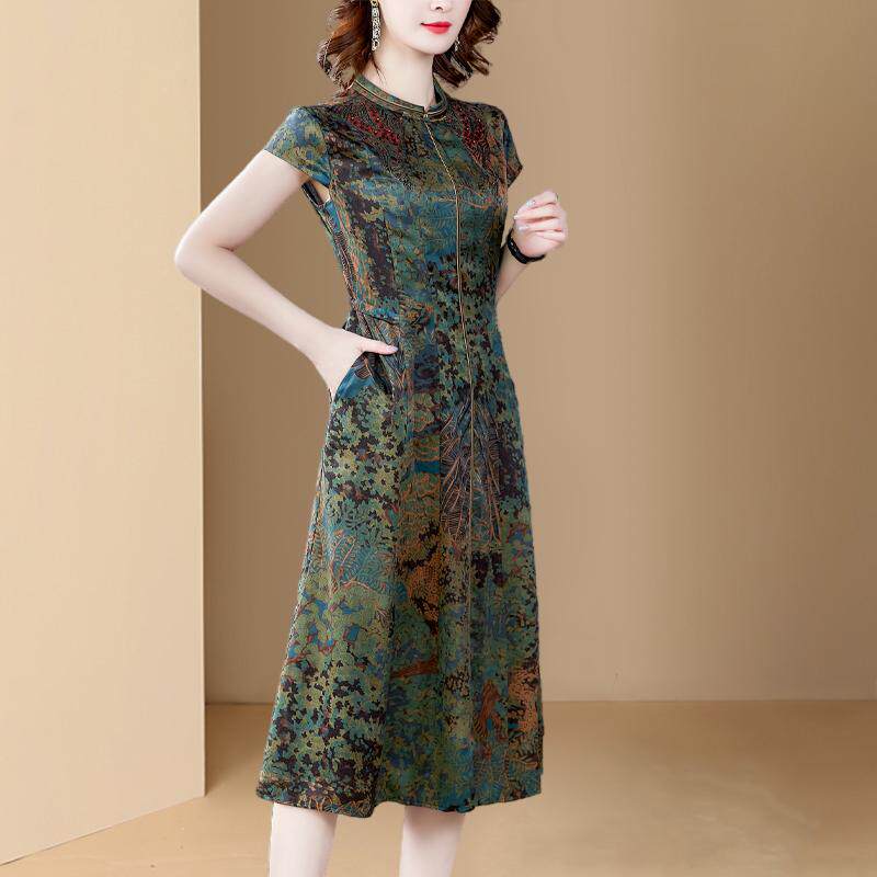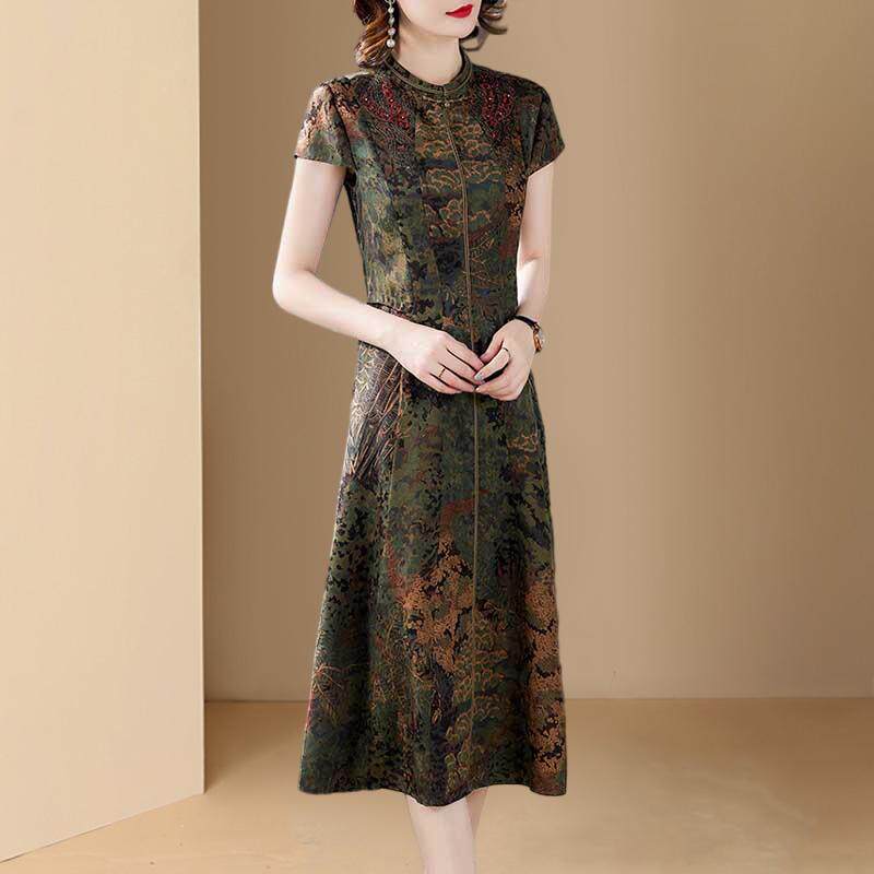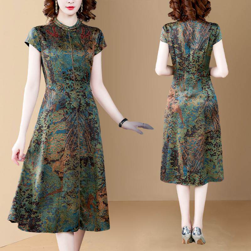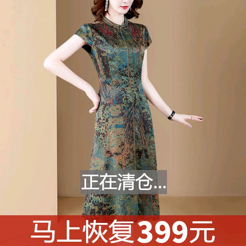 Шелковое платье для матери, брендовое ципао, для среднего возраста