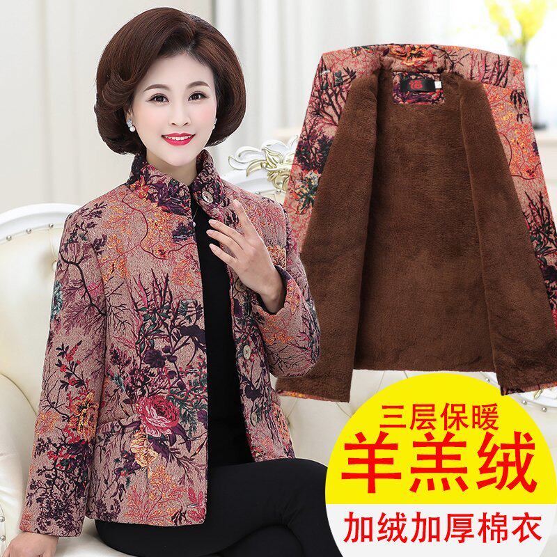 Средняя и пожилая женская женская женская осенняя печать хлопковая куртка бабушка бабушка youpi yongyu уголь 疃