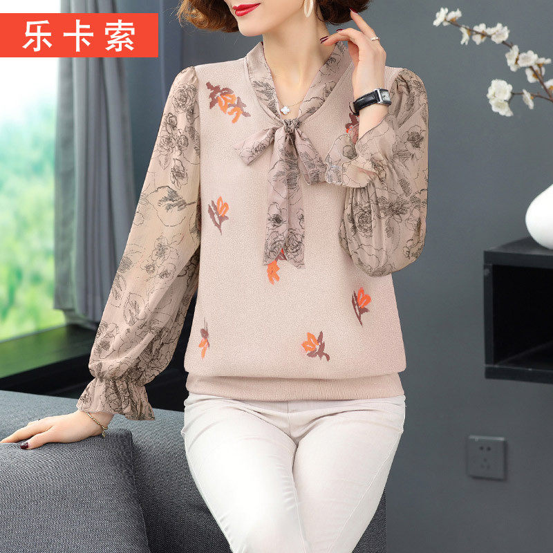 Мать среднего возраста Мать Осень Топ модный 50-летний базовый рубашка 2021 Новая средняя и пожилая женская весна и осенняя рубашка