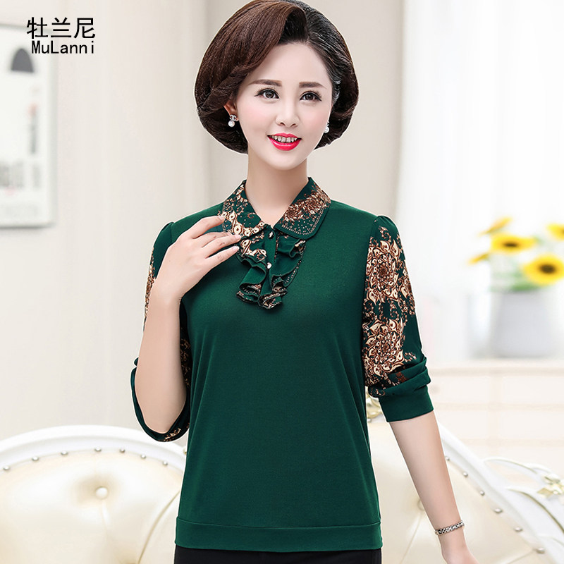 Весенний демисезонный базовый приятный телу шифоновый лонгслив для матери, футболка, в западном стиле, 50 лет, для среднего возраста