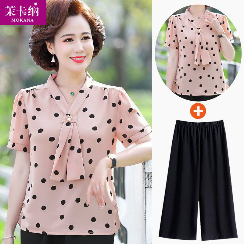 Летняя одежда, комплект для пожилых людей, футболка с коротким рукавом, для среднего возраста
