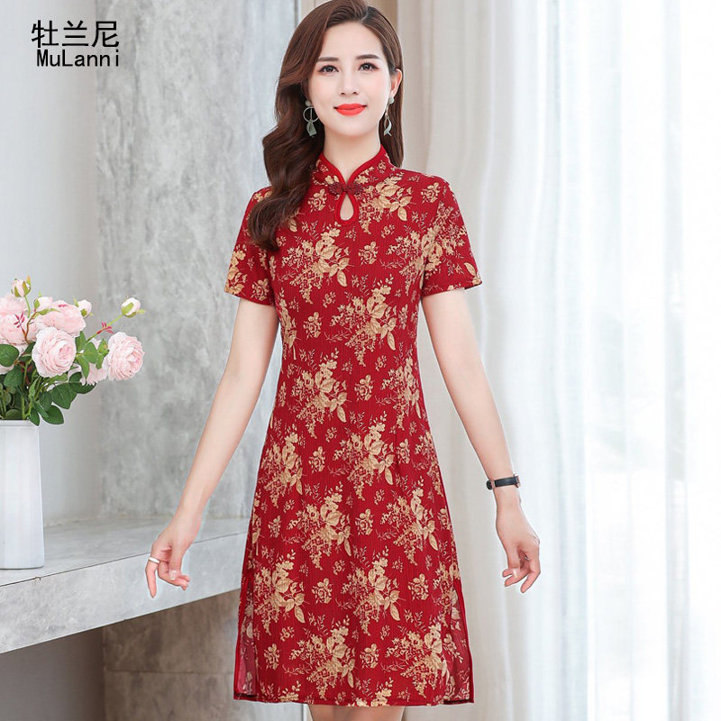 Летняя одежда для матери, ципао, юбка для отдыха, платье, в западном стиле, 40 лет, для среднего возраста