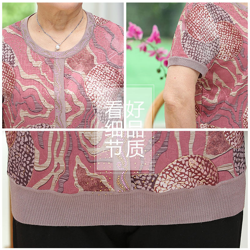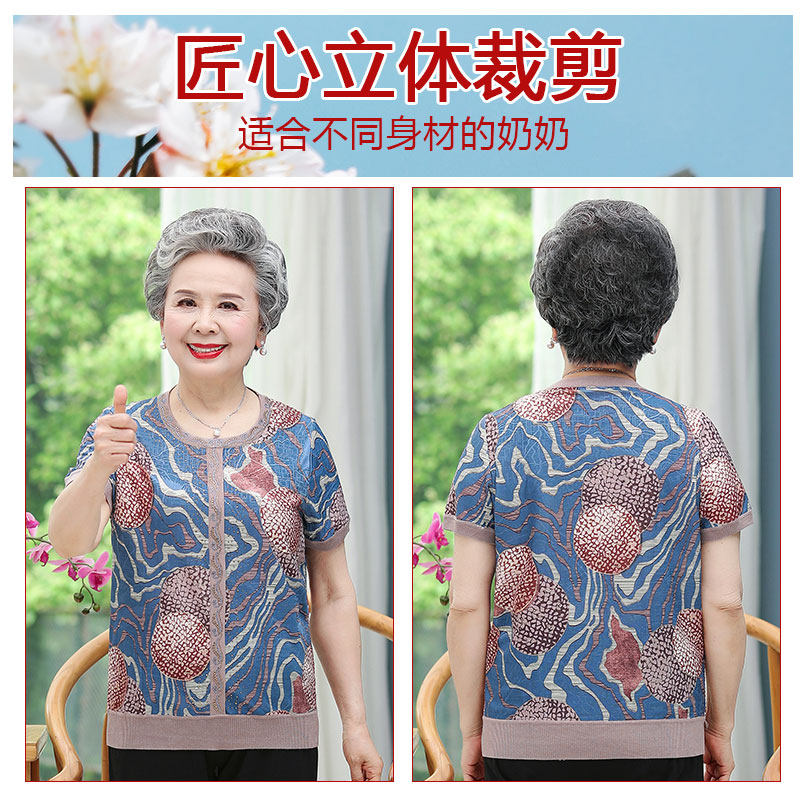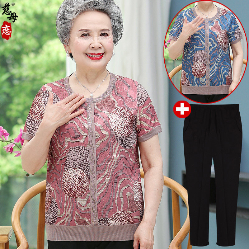Летняя одежда для пожилых людей, футболка с коротким рукавом, шелковый комплект, 60 лет, большой размер