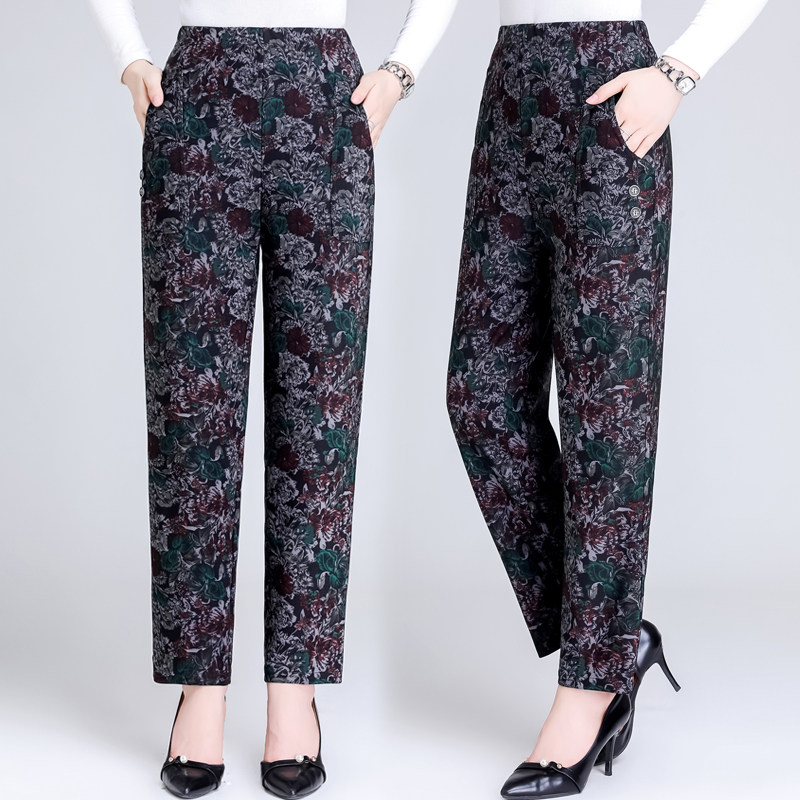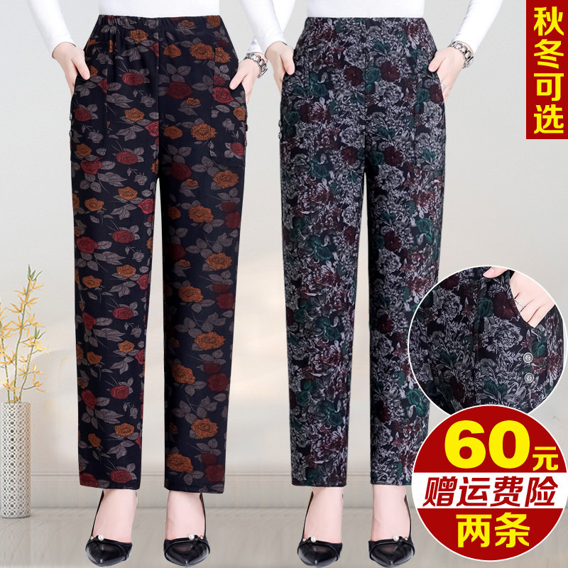 Осенние флисовые штаны, для среднего возраста, высокая талия, свободный прямой крой