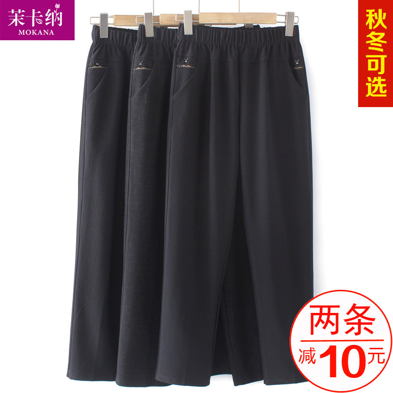 Осенние утепленные штаны для матери, для среднего возраста, свободный прямой крой, высокая талия